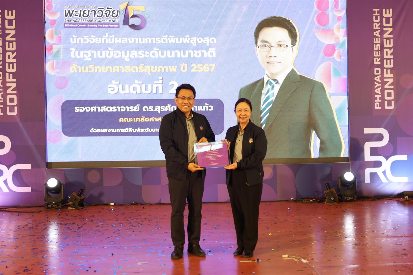 1. รางวัลนักวิจัยที่มีผลงานการตีพิมพ์สูงสุดในฐานข้อมูลระดับนานาชาติ ด้านวิทยาศาสตร์สุขภาพ ปี 2567 อันดับที่ 2
