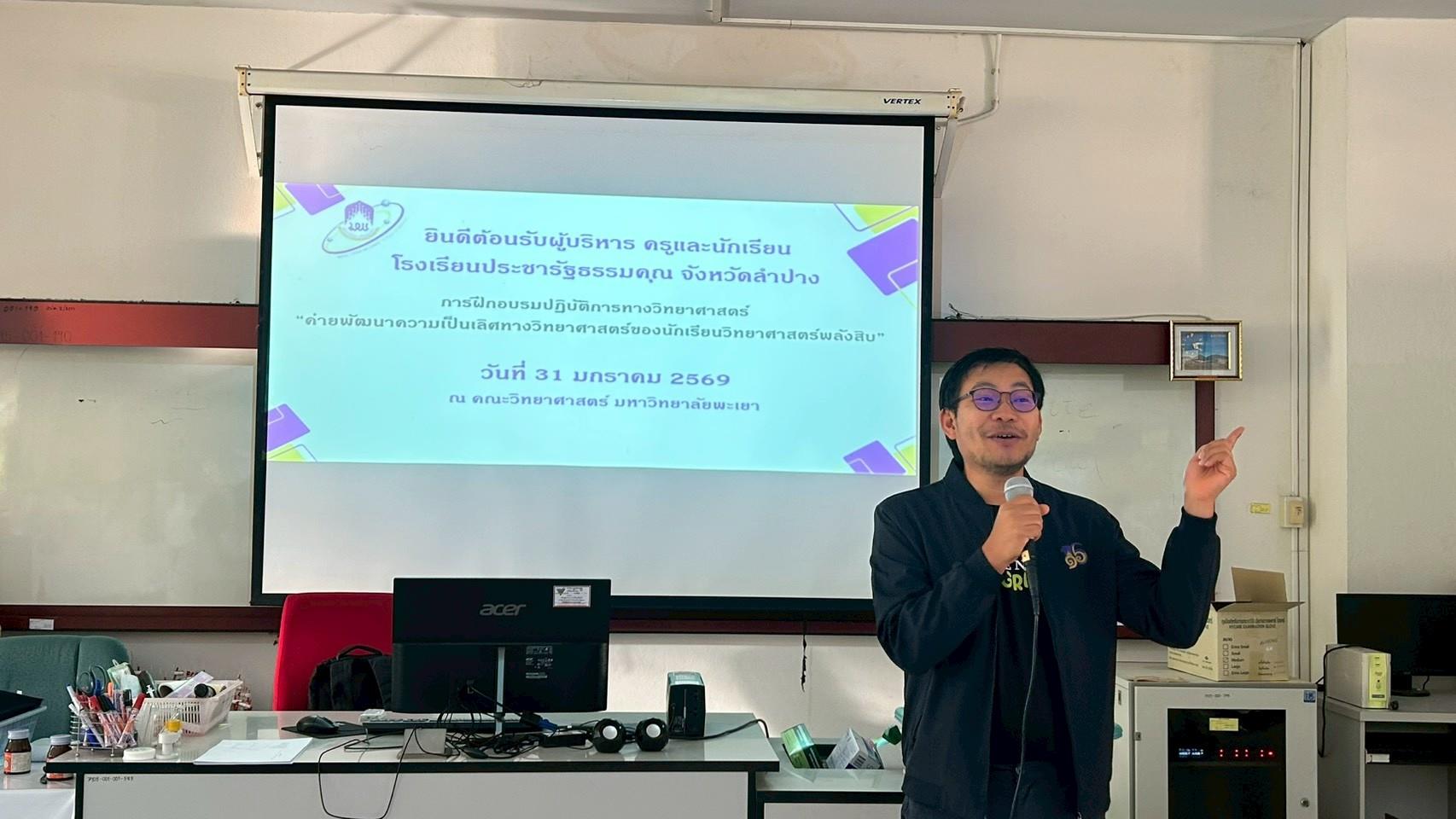 วันเสาร์ที่ 31 มกราคม 2569 คณะวิทยาศาสตร์ดำเนินโครงการบริการวิชาการโรงเรียนประชารัฐธรรมคุณ จังหวัดลำปาง กิจกรรมการฝึกอบรมปฏิบัติการทางวิทยาศาสตร์ “ค่ายพัฒนาความเป็นเลิศทางวิทยาศาสตร์ของนักเรียนวิทยาศาสตร์พลังสิบ” ระดับชั้นมัธยมศึกษาปีที่ 4 จำนวน 29 คน ประกอบด้วยกิจกรรมปฏิบัติการทางเคมี เรื่อง “การกลั่นน้ำมันหอมระเหยจากสมุนไพร” และ “การวิเคราะห์ปริมาณเหล็กในสารละลายด้วยเทคนิคคัลเลอร์ริเมตรี”