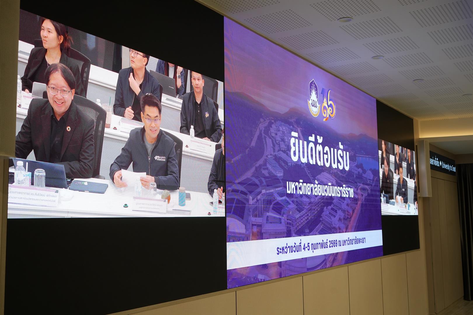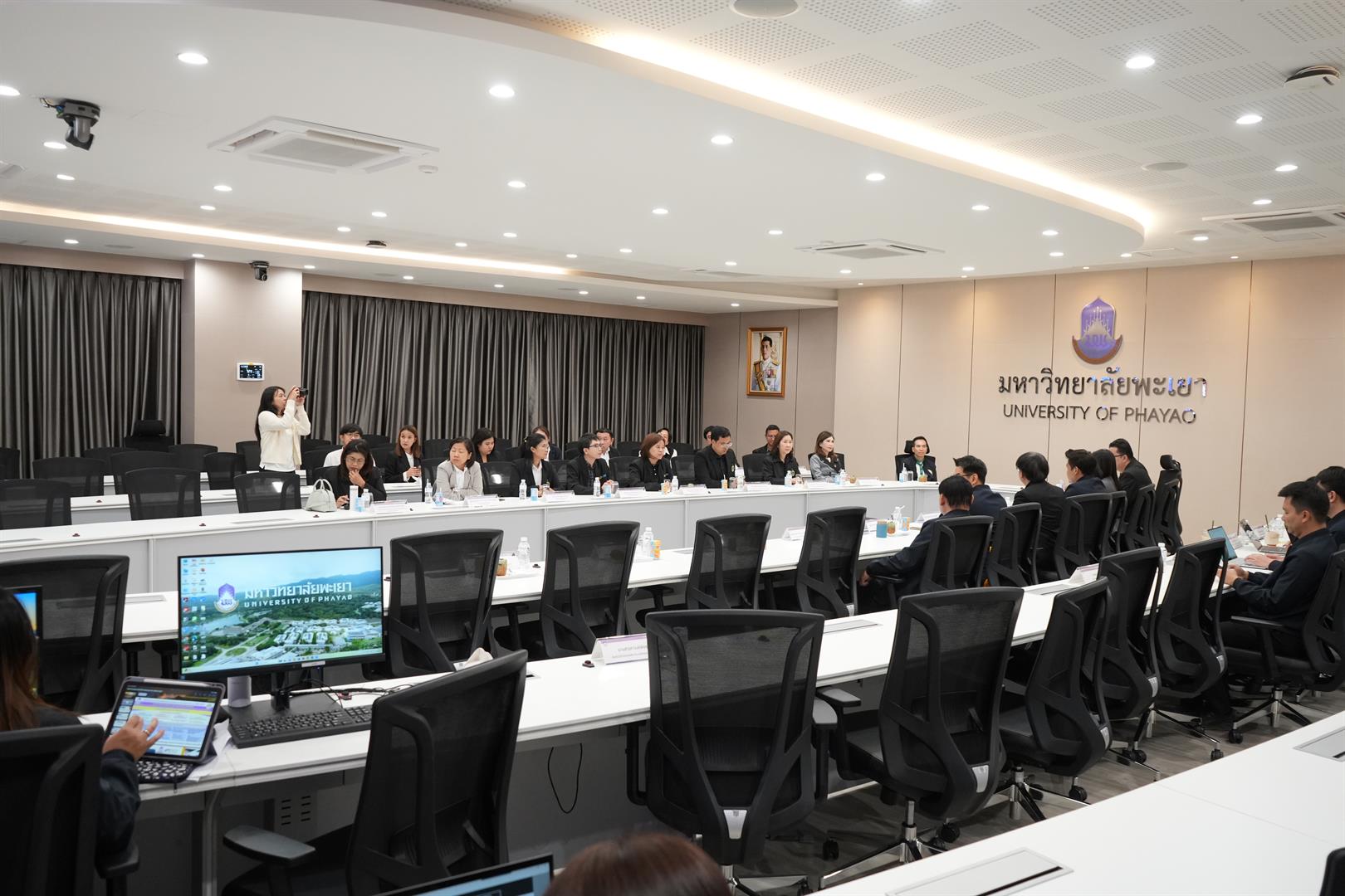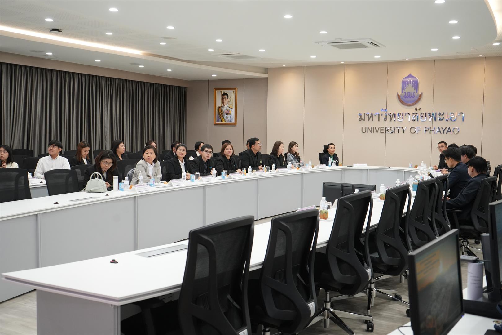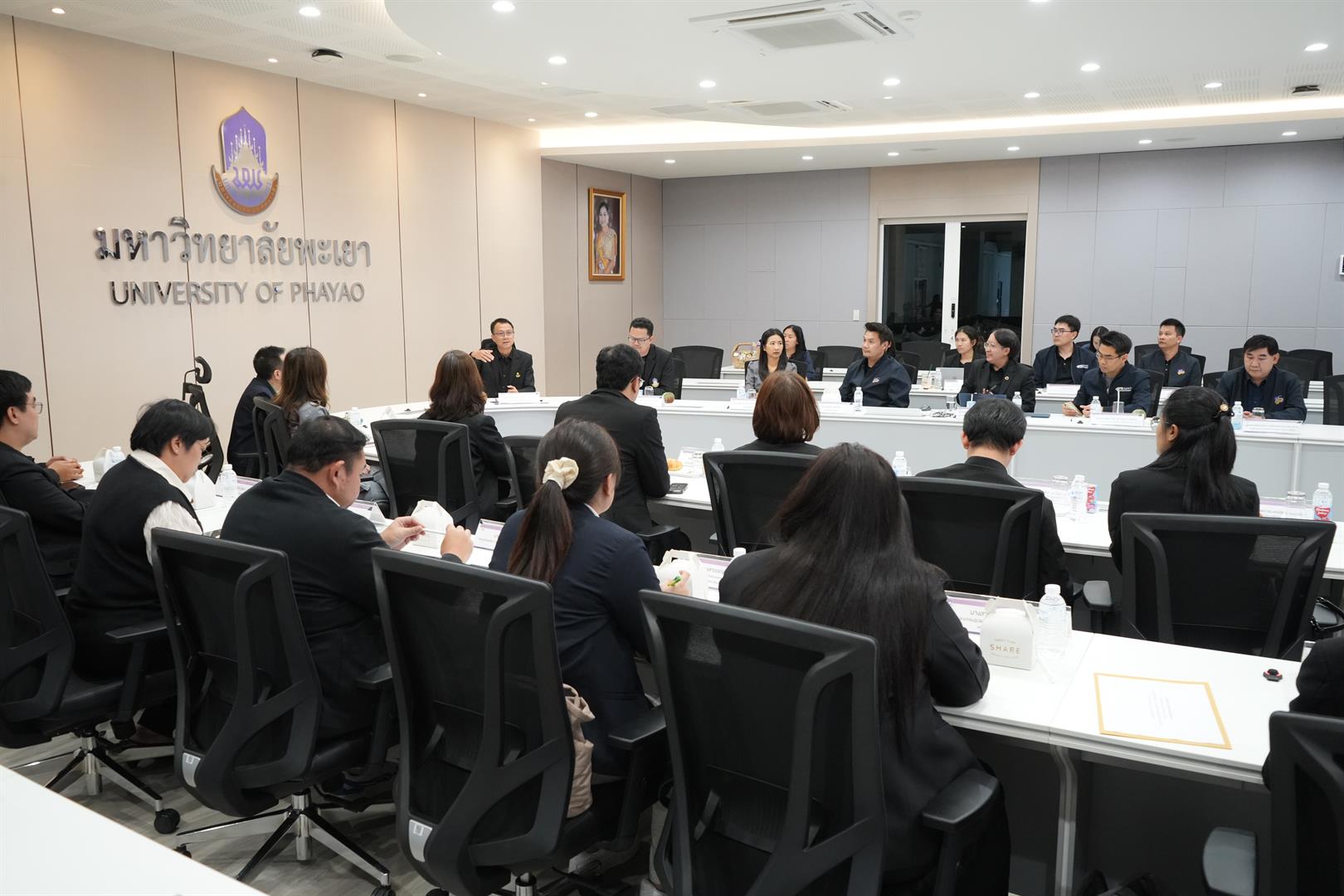 วันพุธที่ 4 กุมภาพันธ์ พ.ศ. 2569 รองศาสตราจารย์ ดร.สุภกร พงศบางโพธิ์ อธิการบดีมหาวิทยาลัยพะเยา มอบหมายให้ รองศาสตราจารย์ ดร.ดิเรก ธีระภูธร รองอธิการบดีฝ่ายสื่อสารองค์กร และ ผู้ช่วยศาสตราจารย์สุวิทย์ ปัญญาวงศ์ รองอธิการบดีฝ่ายสิ่งแวดล้อมและภูมิทัศน์ มหาวิทยาลัยพะเยา กล่าวต้อนรับคณะศึกษาดูงานจาก มหาวิทยาลัยนวมินทราธิราช ในโอกาสเข้าร่วมกิจกรรมแลกเปลี่ยนองค์ความรู้ ทรัพยากร และประสบการณ์ในการดำเนินงานวิจัย รวมถึงการสร้างเครือข่ายและความร่วมมือด้านการวิจัยทั้งภายในและระหว่างสถาบันอุดมศึกษา ตลอดจนหน่วยงานภายนอก ระหว่างวันที่ 4 – 5 กุมภาพันธ์ พ.ศ. 2569 ณ ห้องประชุมบวร รัตนประสิทธิ์ มหาวิทยาลัยพะเยา