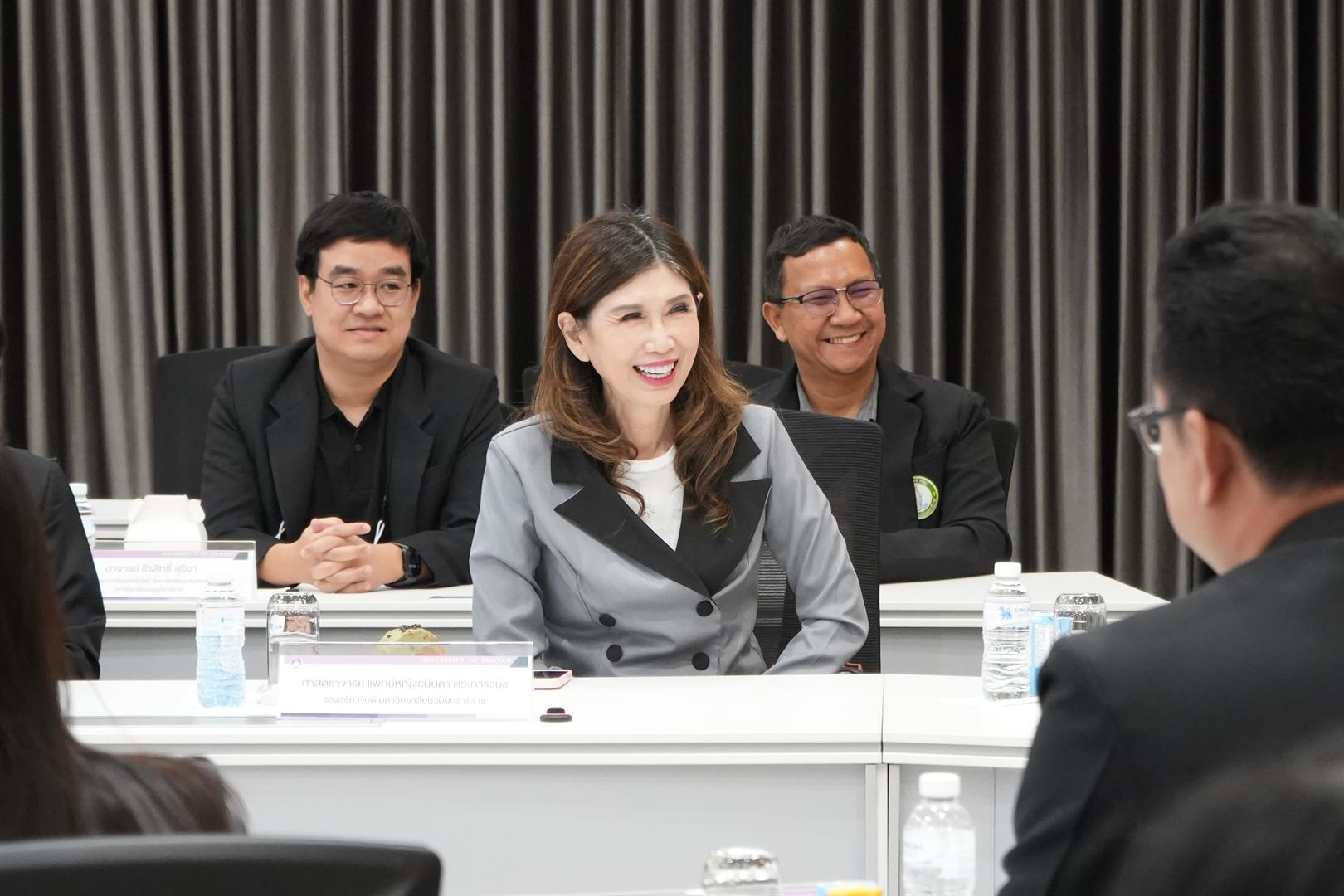 โอกาสนี้ รองศาสตราจารย์ นายแพทย์พงษ์ศักดิ์ น้อยพยัคฆ์ อธิการบดีมหาวิทยาลัยนวมินทราธิราช ได้นำเสนอวัตถุประสงค์ของการศึกษาดูงาน โดยมุ่งเน้นการแลกเปลี่ยนแนวทางการบริหารจัดการงานวิจัย การพัฒนาศักยภาพนักวิจัย และการยกระดับคุณภาพผลงานวิจัยให้สอดคล้องกับเกณฑ์การประเมินคุณภาพการศึกษาระดับสถาบัน ควบคู่กับการขับเคลื่อนพันธกิจหลักด้านการแพทย์และสาธารณสุขของมหาวิทยาลัยนวมินทราธิราช ซึ่งให้ความสำคัญกับการผลิตบุคลากรทางการแพทย์และวิทยาศาสตร์สุขภาพเพื่อชุมชนเมืองอย่างยั่งยืน