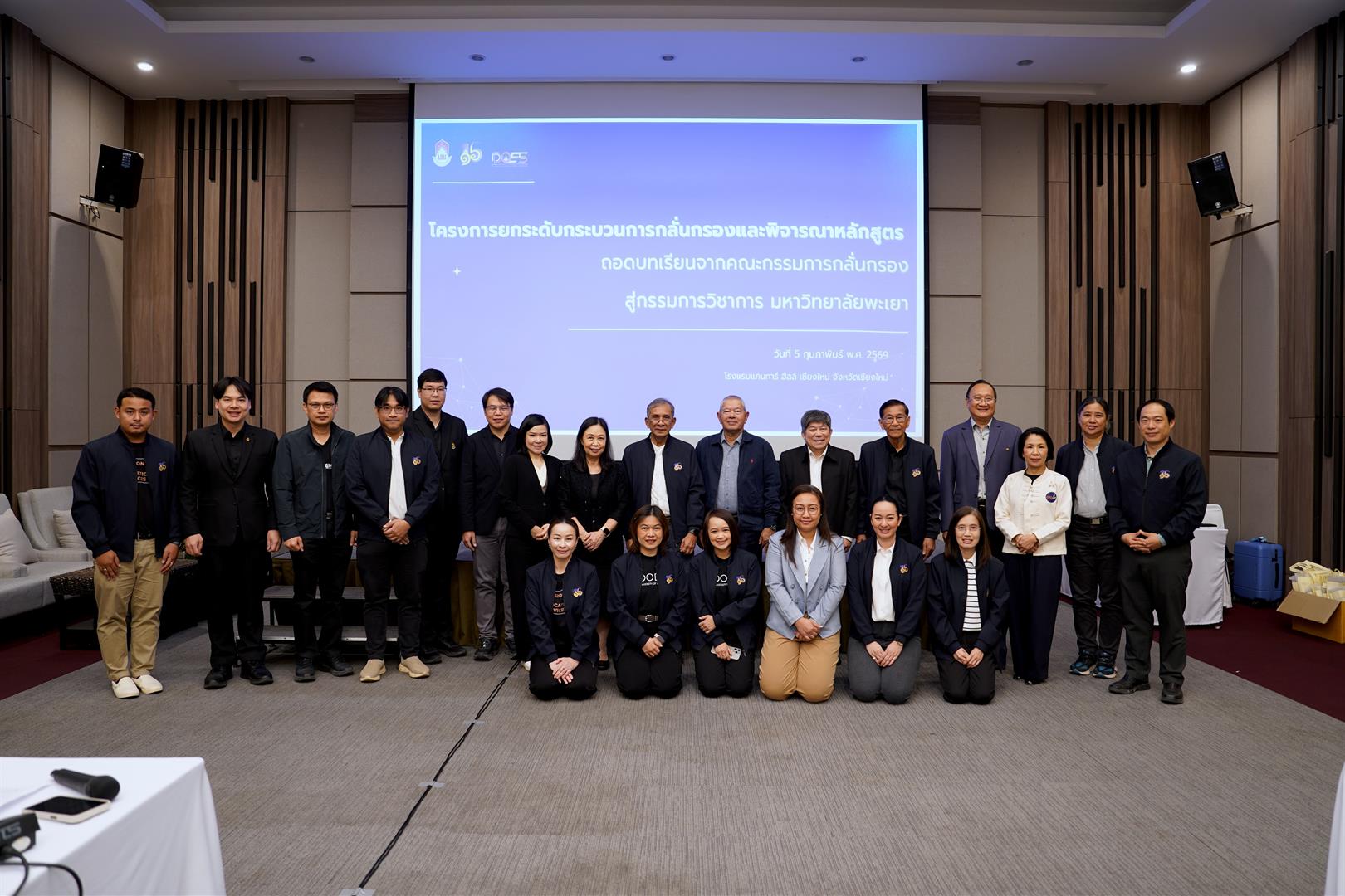 วันพฤหัสบดีที่ 5 กุมภาพันธ์ 2569 มหาวิทยาลัยพะเยา โดย กองบริการการศึกษา จัดโครงการยกระดับกระบวนการกลั่นกรองและพิจารณาหลักสูตร : ถอดบทเรียนจากคณะกรรมการกลั่นกรองสู่กรรมการวิชาการ มหาวิทยาลัยพะเยา โดยได้รับเกียรติจากศาสตราจารย์เกียรติคุณ ดร.เกตุ กรุดพันธ์ ประธานกรรมการคณะกรรมการพิจารณากลั่นกรองหลักสูตร มหาวิทยาลัยพะเยา เป็นประธานพิธีเปิดโครงการ และถ่ายทอดประสบการณ์การพัฒนาคนด้วยการดำเนินการหลักสูตร จากนั้นเป็นการรายงานการดำเนินการหลักสูตร มหาวิทยาลัยพะเยา โดย ผู้ช่วยศาสตราจารย์ ดร.ชลธิดา เทพหินลัพ กรรมการและเลขานุการคณะกรรมการพิจารณากลั่นกรองหลักสูตร มหาวิทยาลัยพะเยา และในช่วงบ่ายกรรมการคณะกรรมการพิจารณากลั่นกรองหลักสูตรของมหาวิทยาลัยพะเยา ได้ร่วมกันถ่ายทอดประสบการณ์การพัฒนาคนด้วยการดำเนินการหลักสูตรและเสนอแนะแนวทางการพัฒนาหลักสูตรของมหาวิทยาลัยพะเยา ซึ่งโครงการดังกล่าวมีวัตถุประสงค์เพื่อแลกเปลี่ยนเรียนรู้ ปัญหา และแนวปฏิบัติที่ดี ตลอดจนสร้างความเข้าใจร่วมกันในหลักการ แนวทาง และเกณฑ์การพิจารณาหลักสูตรให้เป็นไปในทิศทางเดียวกัน อันจะนำไปสู่การพัฒนาระบบการกลั่นกรองและพิจารณาหลักสูตรที่มีคุณภาพ โปร่งใส และมีประสิทธิภาพ สนับสนุนพันธกิจของมหาวิทยาลัยพะเยาในการพัฒนาการศึกษาและผลิตบัณฑิตที่มีสมรรถนะสูงและตอบโจทย์สังคมอย่างยั่งยืน ผู้เข้าร่วมโครงการประกอบด้วย อธิการบดี กรรมการคณะกรรมการพิจารณากลั่นกรองหลักสูตรของมหาวิทยาลัยพะเยา กรรมการวิชาการ จำนวนทั้งสิ้น 23 คน ณ ห้องประชุมดอยหลวง โรงแรมแคนทารี ฮีลส์ เชียงใหม่ จังหวัดเชียงใหม่