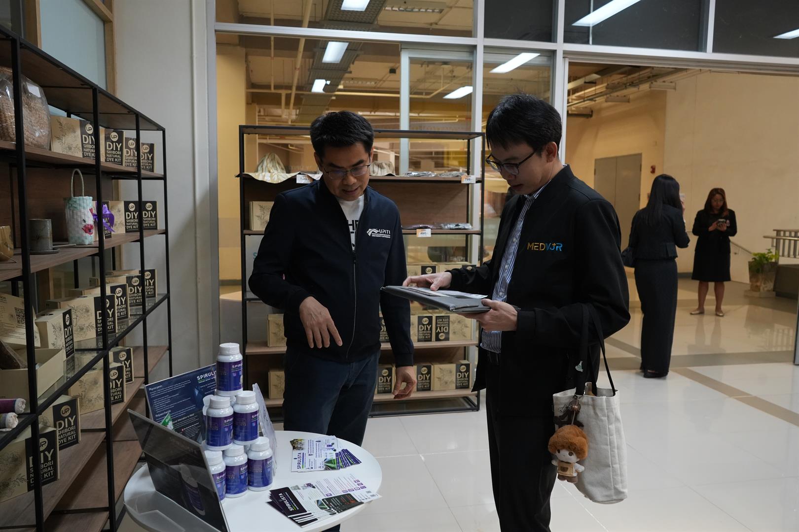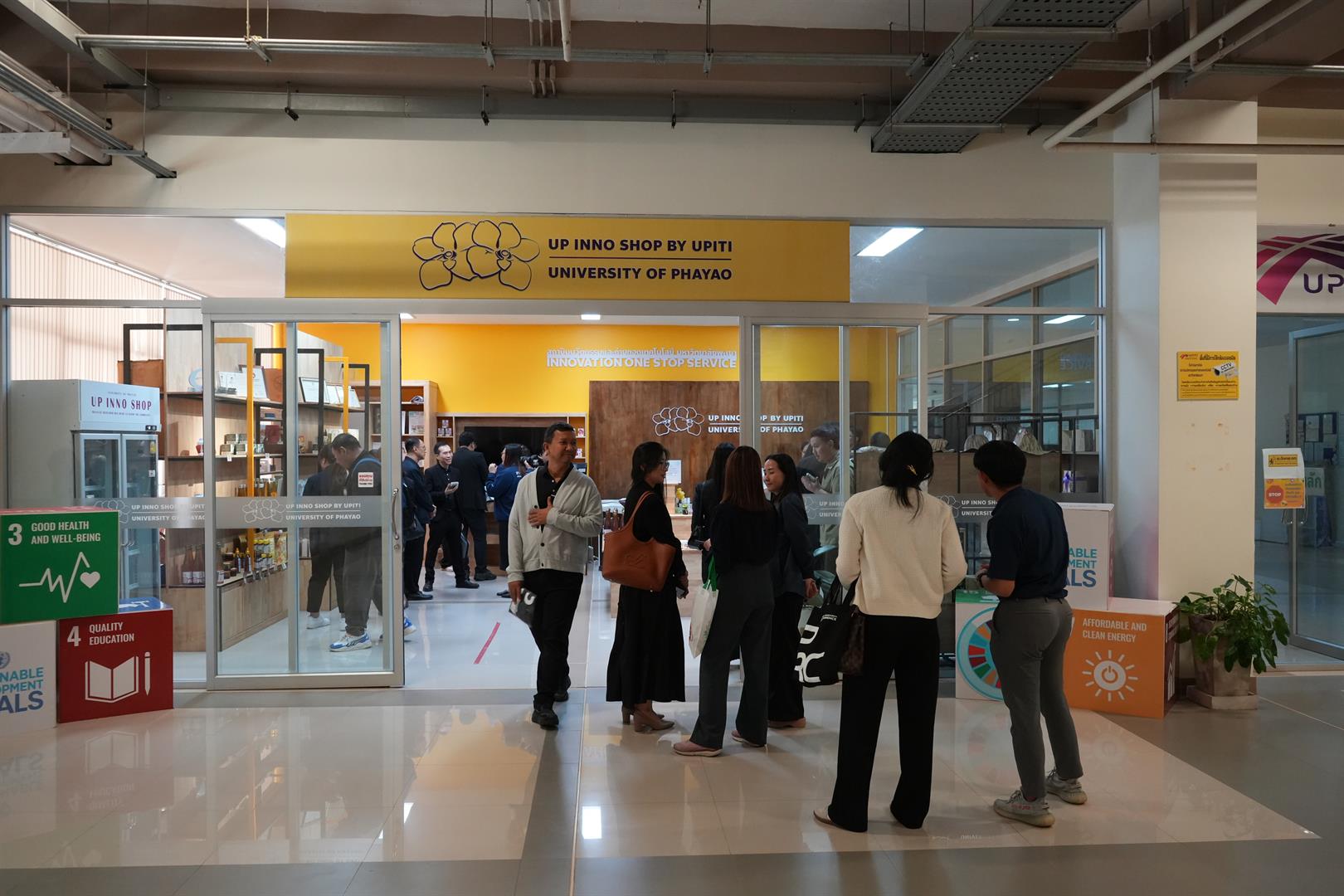 จากนั้น คณะศึกษาดูงานได้เข้าเยี่ยมชมร้านค้าสวัสดิการมหาวิทยาลัยพะเยา และ UP Inno Shop ซึ่งเป็นช่องทางจำหน่ายผลิตภัณฑ์จากงานวิจัยและนวัตกรรมของมหาวิทยาลัยพะเยา ที่พัฒนาจากงานบริการวิชาการสู่เชิงพาณิชย์ ภายใต้แบรนด์ “UP Products” รวมถึงผลิตภัณฑ์ที่ได้รับการรับรองมาตรฐานคุณภาพ เช่น GI และ Organic อันเป็นกลไกสำคัญในการขยายช่องทางการตลาด เพิ่มรายได้ให้แก่ชุมชน นักวิจัย และสร้างคุณค่าจากงานวิจัยสู่การใช้ประโยชน์อย่างแท้จริง