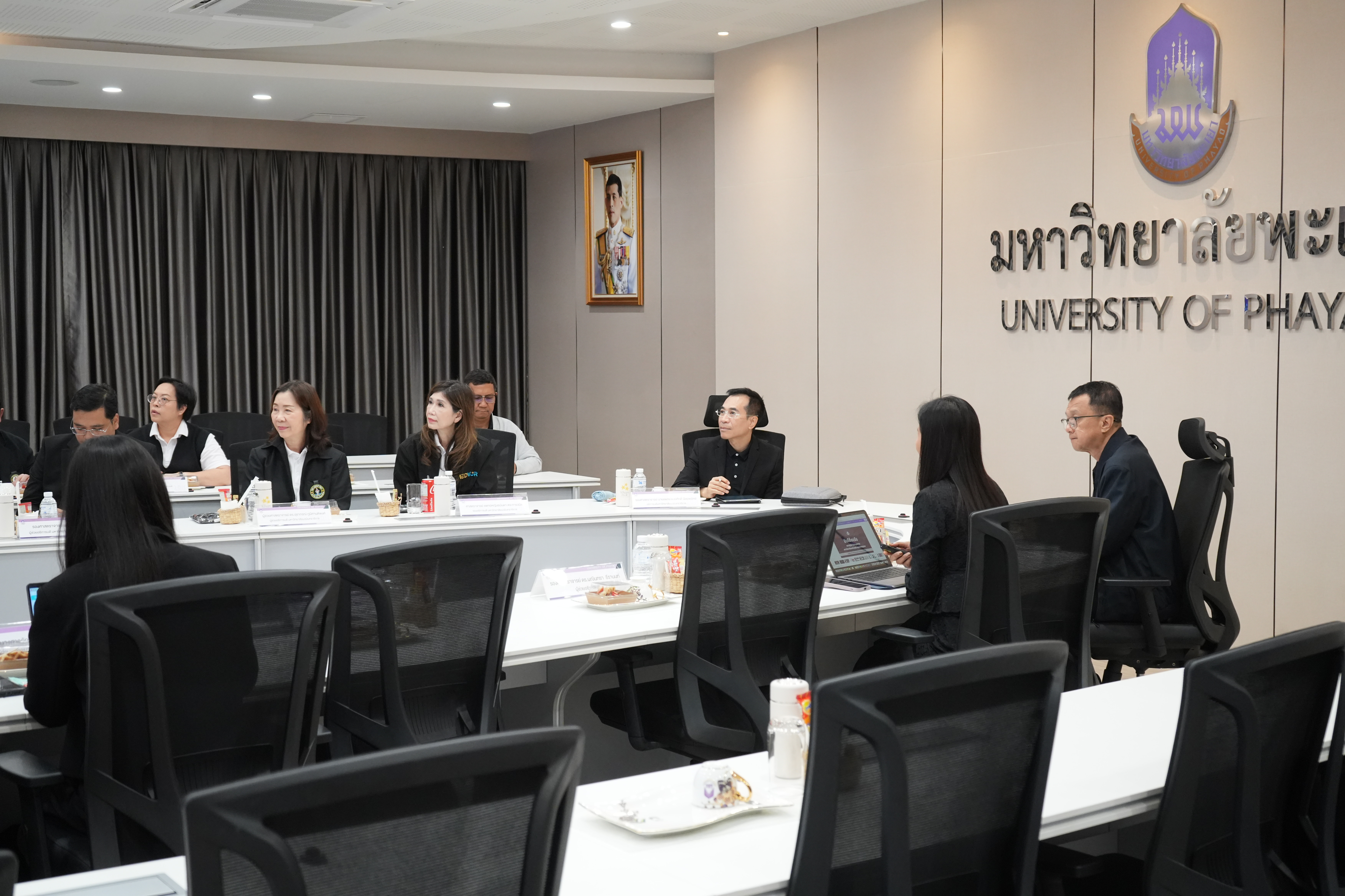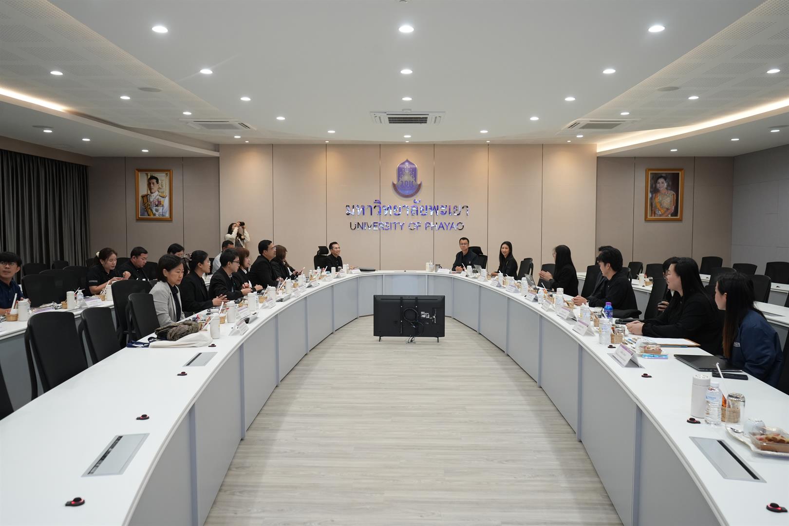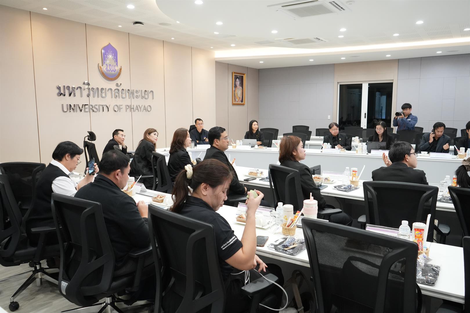 วันพฤหัสบดีที่ 5 กุมภาพันธ์ 2569 มหาวิทยาลัยพะเยา จัดกิจกรรมศึกษาดูงานต่อเนื่องจากวันที่ 4 กุมภาพันธ์ 2569 เพื่อต่อยอดการแลกเปลี่ยนเรียนรู้ด้านการบริหารจัดการงานวิจัย โดยรองศาสตราจารย์ ดร.สุภกร พงศบางโพธิ์ อธิการบดีมหาวิทยาลัยพะเยา มอบหมายให้รองศาสตราจารย์ ดร.ดิเรก ธีระภูธร รองอธิการบดีฝ่ายสื่อสารองค์กร พร้อมด้วยรองศาสตราจารย์ ดร.อัจฉราภรณ์ ดวงใจ ผู้ช่วยอธิการบดี ผู้ช่วยศาสตราจารย์ ดร.สันธิวัฒน์ พิทักษ์พล ผู้อำนวยการสถาบันนวัตกรรมและถ่ายทอดเทคโนโลยี นางสาวอัญชลี เทียมคีรี ผู้อำนวยการกองบริหารงานวิจัย นายสมทบ เหล็กสิงห์ ผู้อำนวยการกองการเจ้าหน้าที่ และบุคลากรกองบริหารงานวิจัย ร่วมให้การต้อนรับรองศาสตราจารย์ นายแพทย์พงษ์ศักดิ์ น้อยพยัคฆ์ อธิการบดีมหาวิทยาลัยนวมินทราธิราช พร้อมผู้บริหารจากมหาวิทยาลัยนวมินทราธิราช ณ ห้องประชุมบวร รัตนประสิทธิ์ณ มหาวิทยาลัยพะเยา