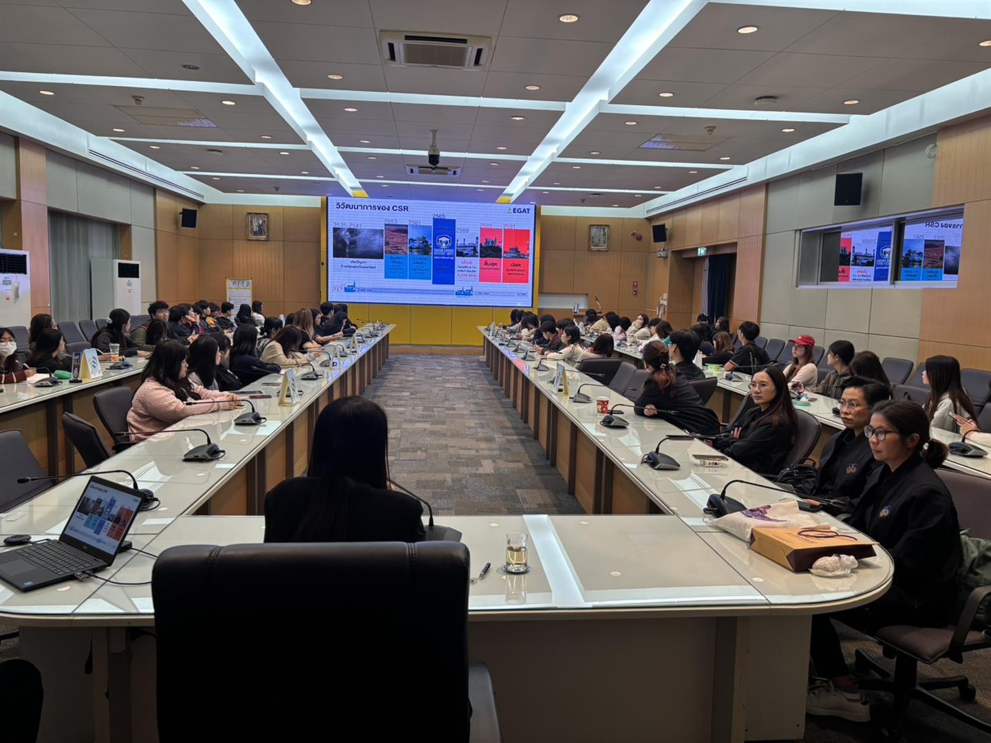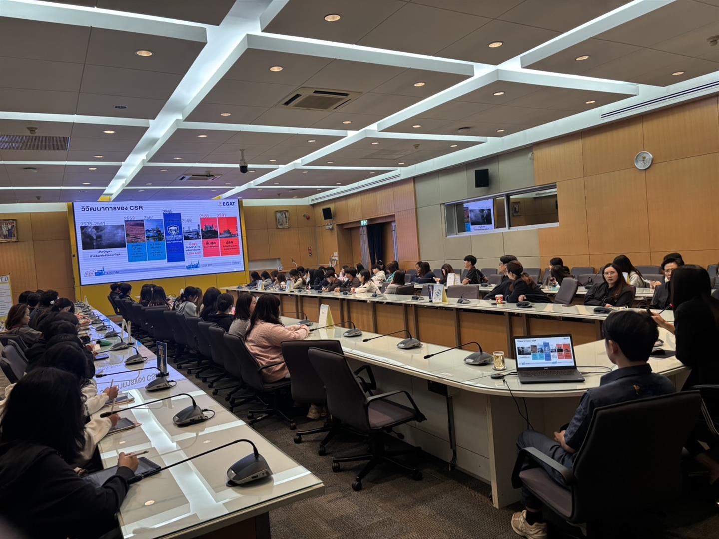การศึกษาดูงานในครั้งนี้ได้รับเกียรติจากทีมงานด้านความรับผิดชอบต่อสังคม (CSR) ของ กฟผ. แม่เมาะ ร่วมถ่ายทอดประสบการณ์ผ่านการบรรยายพิเศษในหัวข้อ นวัตกรรมการแก้ไขปัญหาสิ่งแวดล้อมกับชุมชนอย่างยั่งยืน และ กลยุทธ์ CSR ต่อการขับเคลื่อนมิติทางสังคม ซึ่งสะท้อนถึงการประยุกต์ใช้เทคโนโลยี เพื่อสร้างสมดุลระหว่างภาคอุตสาหกรรมและคุณภาพชีวิตของประชาชนในพื้นที่อย่างเป็นรูปธรรม