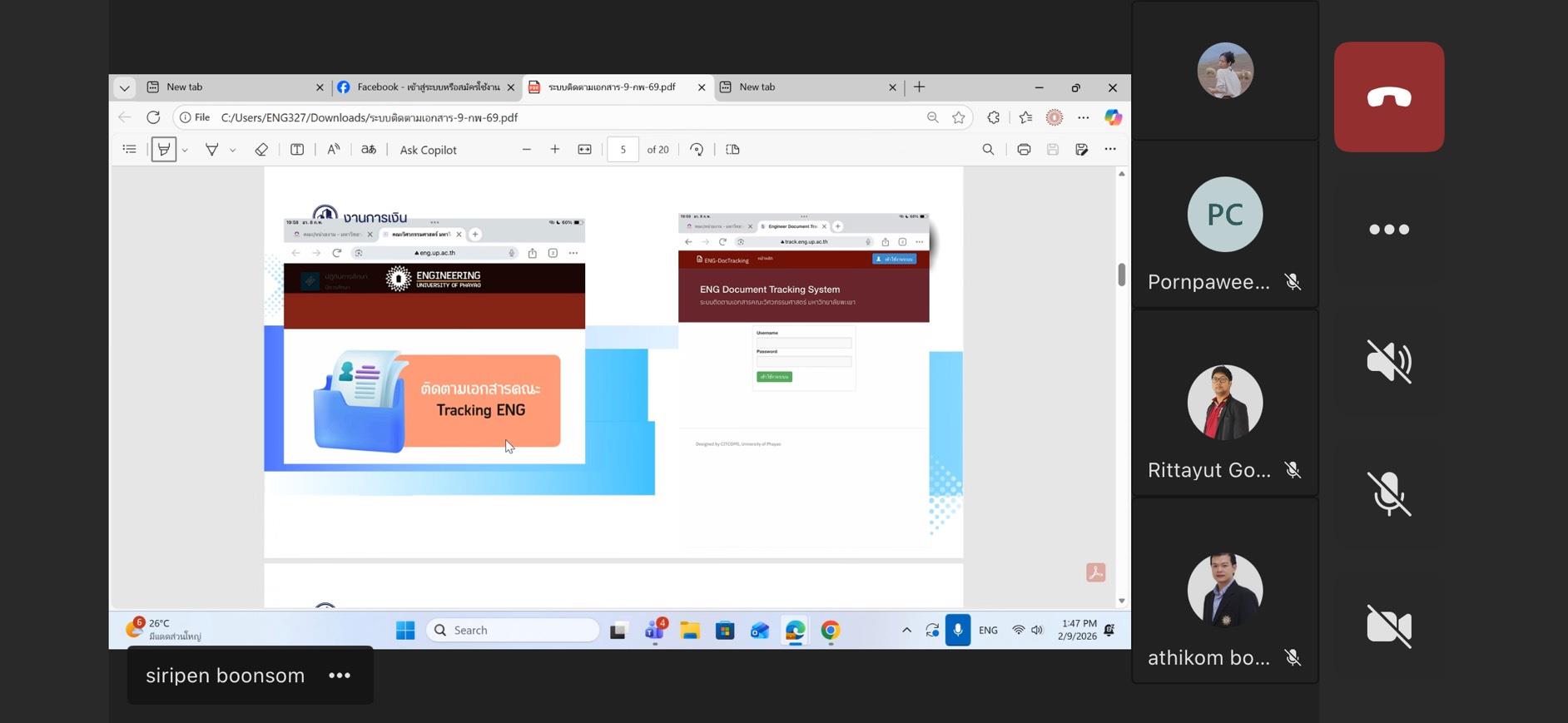 เมื่อวันที่ 9 กุมภาพันธ์ 2569 ที่ผ่านมา คณะวิศวกรรมศาสตร์ มหาวิทยาลัยพะเยา โดยนางสาวศิริเพ็ญ บุญสม นักวิชาการเงินและบัญชี ร่วมกับ ว่าที่ ร.ต.หญิงสุพัตรา ใจมูลมั่ง นักวิชาการคอมพิวเตอร์ ได้จัด “อบรมการใช้ระบบติดตามเอกสารการเงินของคณะวิศวกรรมศาสตร์” สำหรับคณาจารย์และบุคลากรภายในคณะ ณ ห้องประชุมคณะฯ EN1104 โดยได้รับเกียรติจาก ผู้ช่วยศาสตราจารย์ ดร.อภิชาต บัวกล้า รองคณบดีฝ่ายบริหารและกิจการพิเศษ เป็นประธานในพิธีเปิดการอบรม