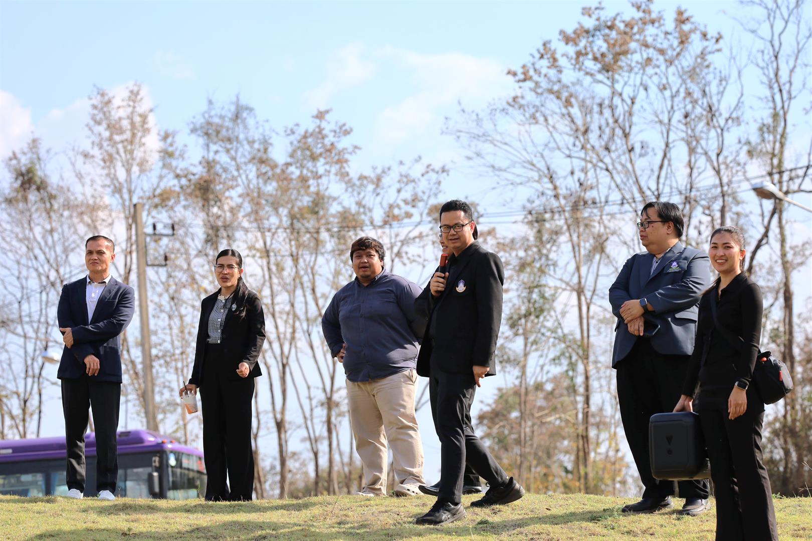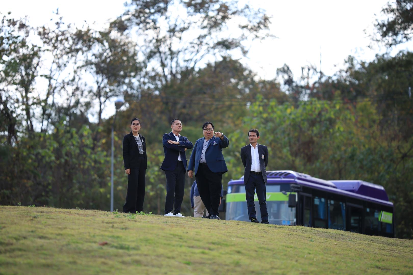 ในการนี้ กองอาคารสถานที่ มหาวิทยาลัยพะเยา ได้ร่วมต้อนรับคณะผู้บริหารวิทยาลัยนอร์ทเทิร์นในการเข้าศึกษาดูงานฯ พร้อมนำคณะศึกษาดูงานเยี่ยมชมพื้นที่โดยรอบมหาวิทยาลัยด้วยรถโดยสารไฟฟ้า (EV Bus) เพื่อให้คณะศึกษาดูงานได้เยี่ยมชมบรรยากาศ การบริหารจัดการพื้นที่และการพัฒนาภูมิทัศน์ ของมหาวิทยาลัยพะเยา