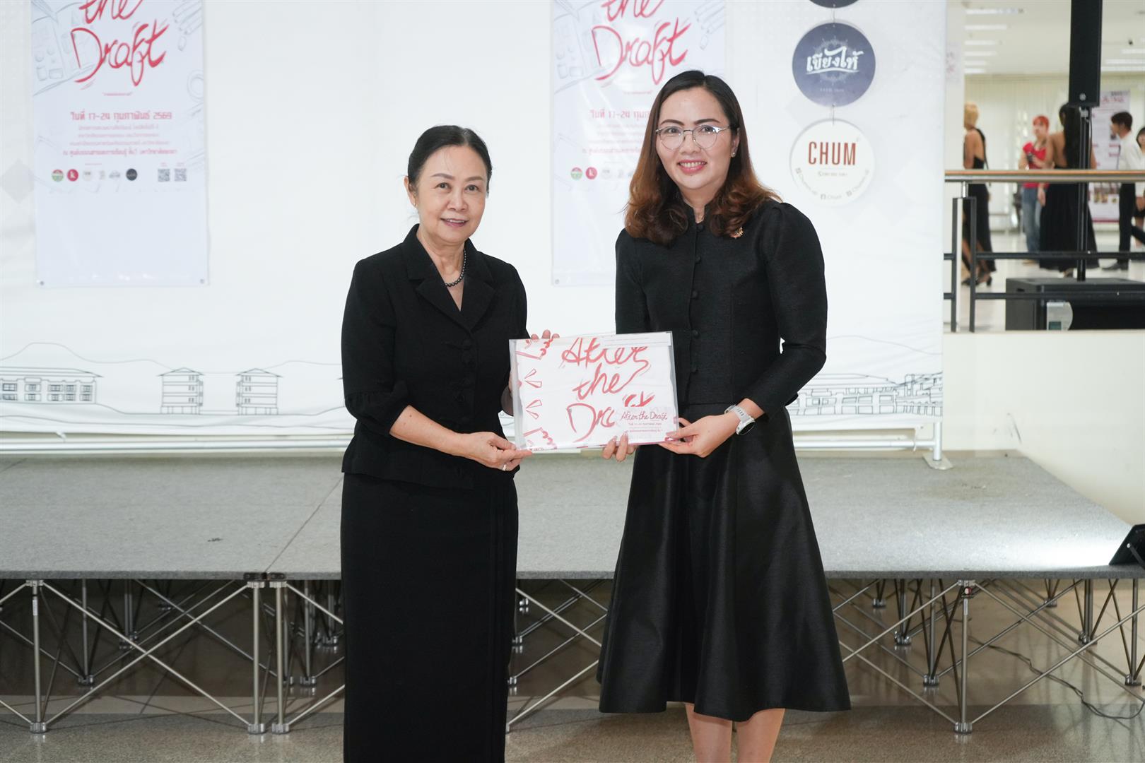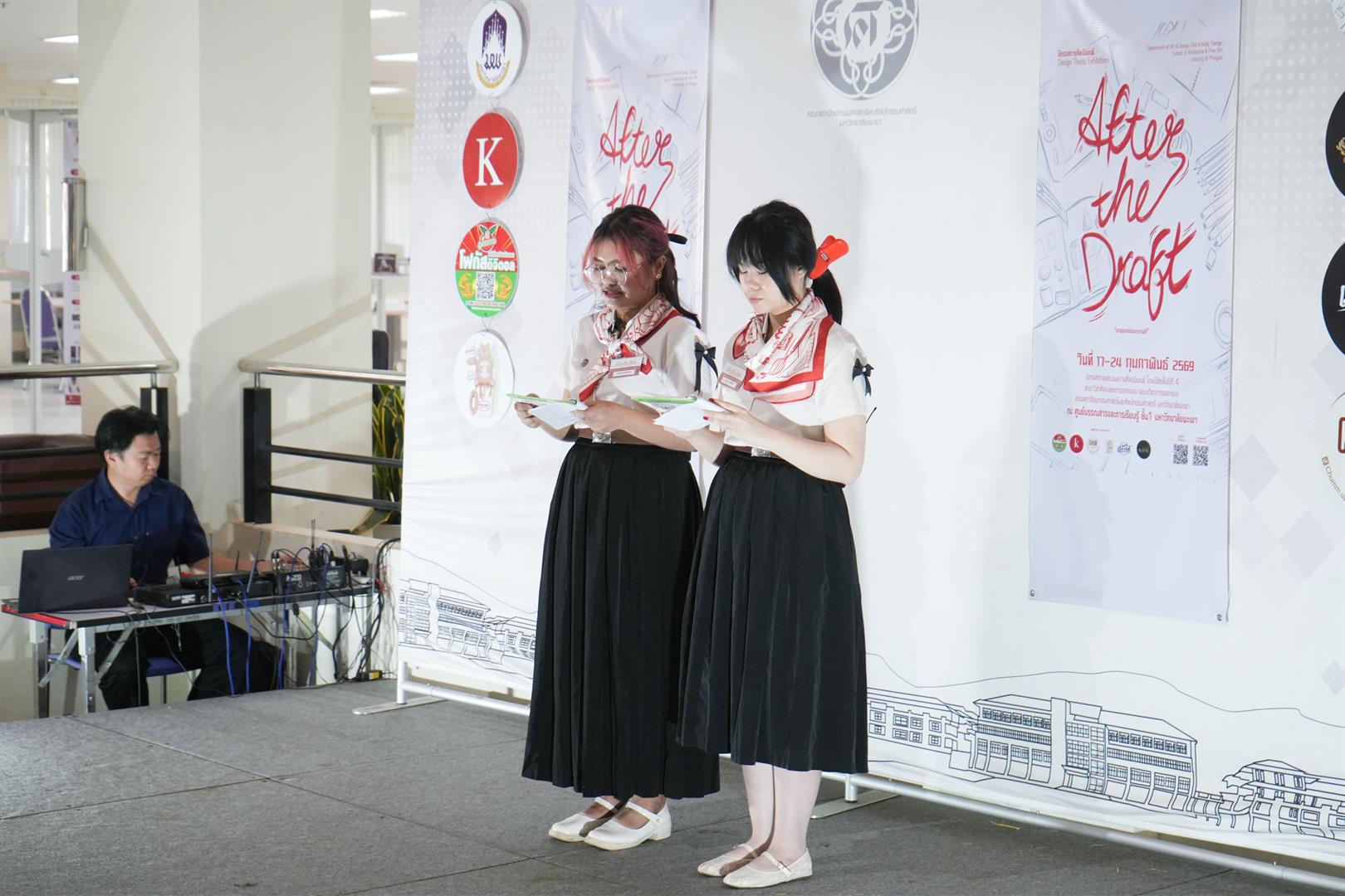 ภายในงานมีการเดินแบบแฟชั่นโชว์ที่สะท้อนแนวคิด กระบวนการสร้างสรรค์ และการพัฒนาผลงานตั้งแต่ร่างแบบ (Draft) สู่ผลงานจริง (After the Draft) อย่างเป็นรูปธรรม การจัดแสดงนิทรรศการผลงานประกอบด้วย การออกแบบเครื่องแต่งกาย การออกแบบเครื่องประดับ และการออกแบบผลิตภัณฑ์ นิทรรศการครั้งนี้นำเสนอผลผลิตรุ่นแรกของหลักสูตรศิลปะและการออกแบบ (หลักสูตรปรับปรุง พ.ศ. 2565) ที่มีการแยกแขนงวิชาออกแบบอย่างชัดเจน โดยมุ่งเน้นโครงสร้างหลักสูตรที่ส่งเสริมผลสัมฤทธิ์ทางการเรียนรู้ การพัฒนาศักยภาพตามสมรรถนะ และการเสริมสร้างทักษะแห่งอนาคต ควบคู่กับการเรียนรู้ผ่านการลงมือปฏิบัติจริง (Experiential Learning) และตอกย้ำบทบาทของคณะสถาปัตยกรรมศาสตร์และศิลปกรรมศาสตร์ มหาวิทยาลัยพะเยา ในการผลิตบัณฑิตที่มีคุณภาพ สำหรับ After the Draft นิทรรศการศิลปนิพนธ์แขนงวิชาออกแบบ จะแสดงผลงานตั้งแต่วันที่ 17 - 24 กุมภาพันธ์ พ.ศ.2569 ทุกท่านสามารถเข้าเยี่ยมชมได้ ชั้น 1 ศูนย์บรรณสารและการเรียนรู้ สถาบันนวัตกรรมการเรียนรู้ มหาวิทยาลัยพะเยา