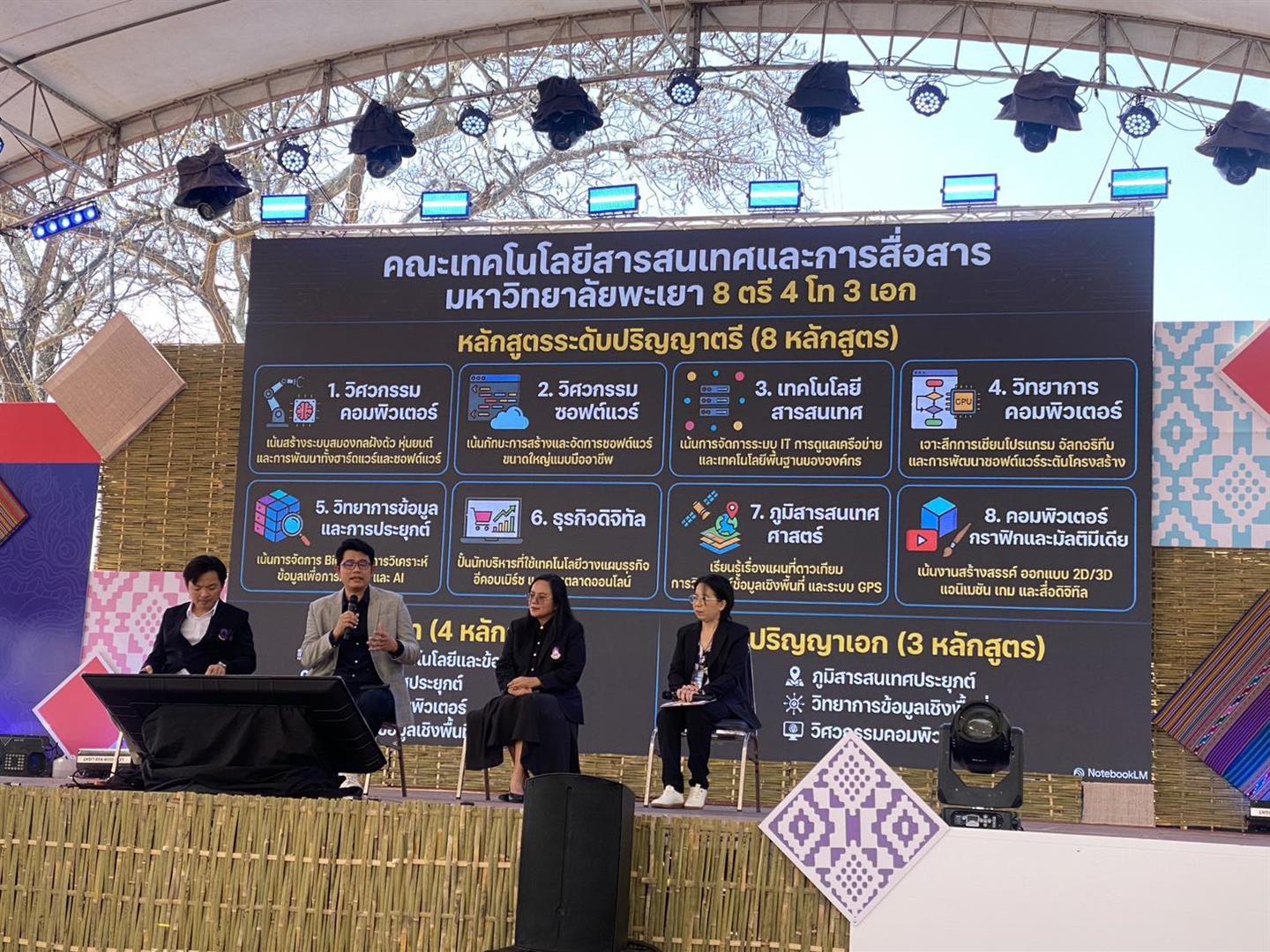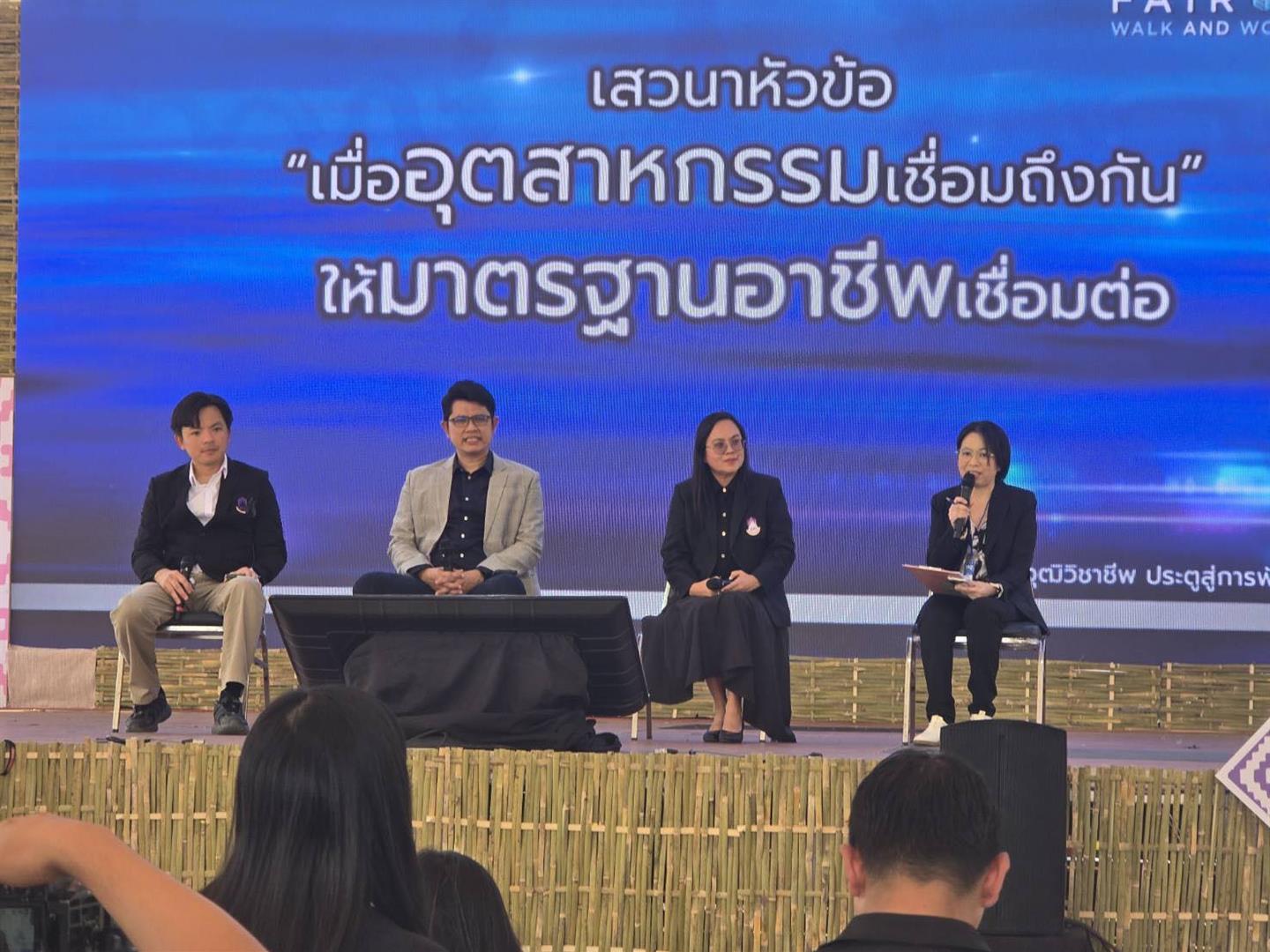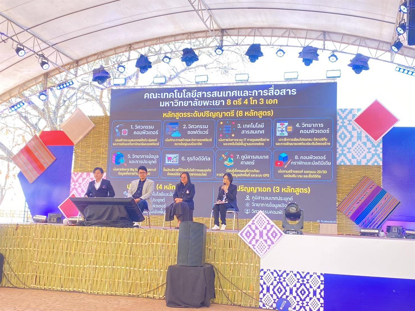 เวทีเสวนาทางวิชาการ ในหัวข้อ "เมื่ออุตสาหกรรมเชื่อมถึงกัน ให้มาตรฐานอาชีพเชื่อมต่อ" ซึ่งได้รับเกียรติจาก ผู้ช่วยศาสตราจารย์ ดร.พรเทพ โรจนวสุ คณบดีคณะเทคโนโลยีสารสนเทศและการสื่อสาร มหาวิทยาลัยพะเยา พร้อมด้วยผู้ช่วยศาสตราจารย์ ดร.ธนา อุดมศรีไพบูลย์ อาจารย์สาขาวิชาวิศวกรรมศาสตร์ คณะเทคโนโลยีสารสนเทศและการสื่อสาร มหาวิทยาลัยพะเยา ร่วมเป็นวิทยากรเสวนาในงาน "TPQI Fair 2026 Walk and Wonder @พะเยา งานแฟร์ของคนสร้างอนาคต" พลังเครือข่ายเพื่อการขับเคลื่อนที่ยั่งยืนของงาน TPQI Fair 2026 ในครั้งนี้ นับเป็นก้าวสำคัญที่แสดงให้เห็นถึงความร่วมมือระหว่าง สถาบันการศึกษา สถานประกอบการ และองค์กรปกครองส่วนท้องถิ่น ในการร่วมกันขับเคลื่อนระบบคุณวุฒิวิชาชีพในระดับภูมิภาคให้เกิดขึ้นอย่างเป็นรูปธรรม