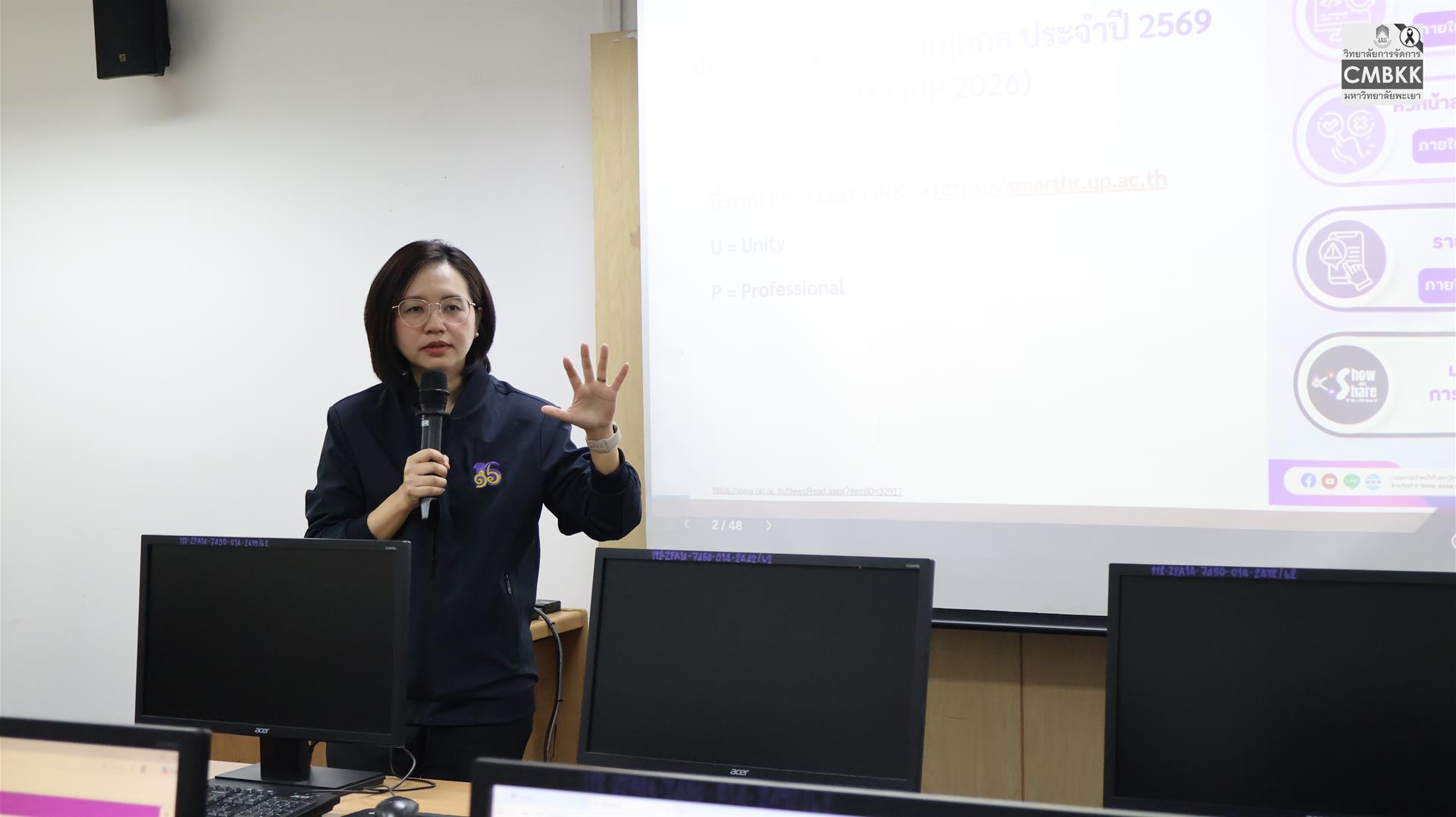 วันพุธที่ 18 กุมภาพันธ์ พ.ศ. 2569 วิทยาลัยการจัดการ มหาวิทยาลัยพะเยา ดำเนินการจัด โครงการพัฒนาบุคลากรวิทยาลัยการจัดการ ประจำปีงบประมาณ 2569 โดยได้รับเกียรติจาก รองศาสตราจารย์ ดร.รักษิต สุทธิพงษ์ รักษาการแทนคณบดีวิทยาลัยการจัดการ เป็นประธานในพิธีเปิดโครงการ และ ผู้ช่วยศาสตราจารย์ ดร.ศิริพร แพรศรี รักษาการแทนรองคณบดีวิทยาลัยการจัดการ กล่าวรายงานวัตถุประสงค์ในการจัดโครงการ โดยมีคณาจารย์และบุคลากรเข้าร่วมอย่างพร้อมเพรียง ณ ห้องประชุม L806 วิทยาลัยการจัดการ มหาวิทยาลัยพะเยา อาคารเวฟเพลส ชั้น 8 กรุงเทพมหานคร