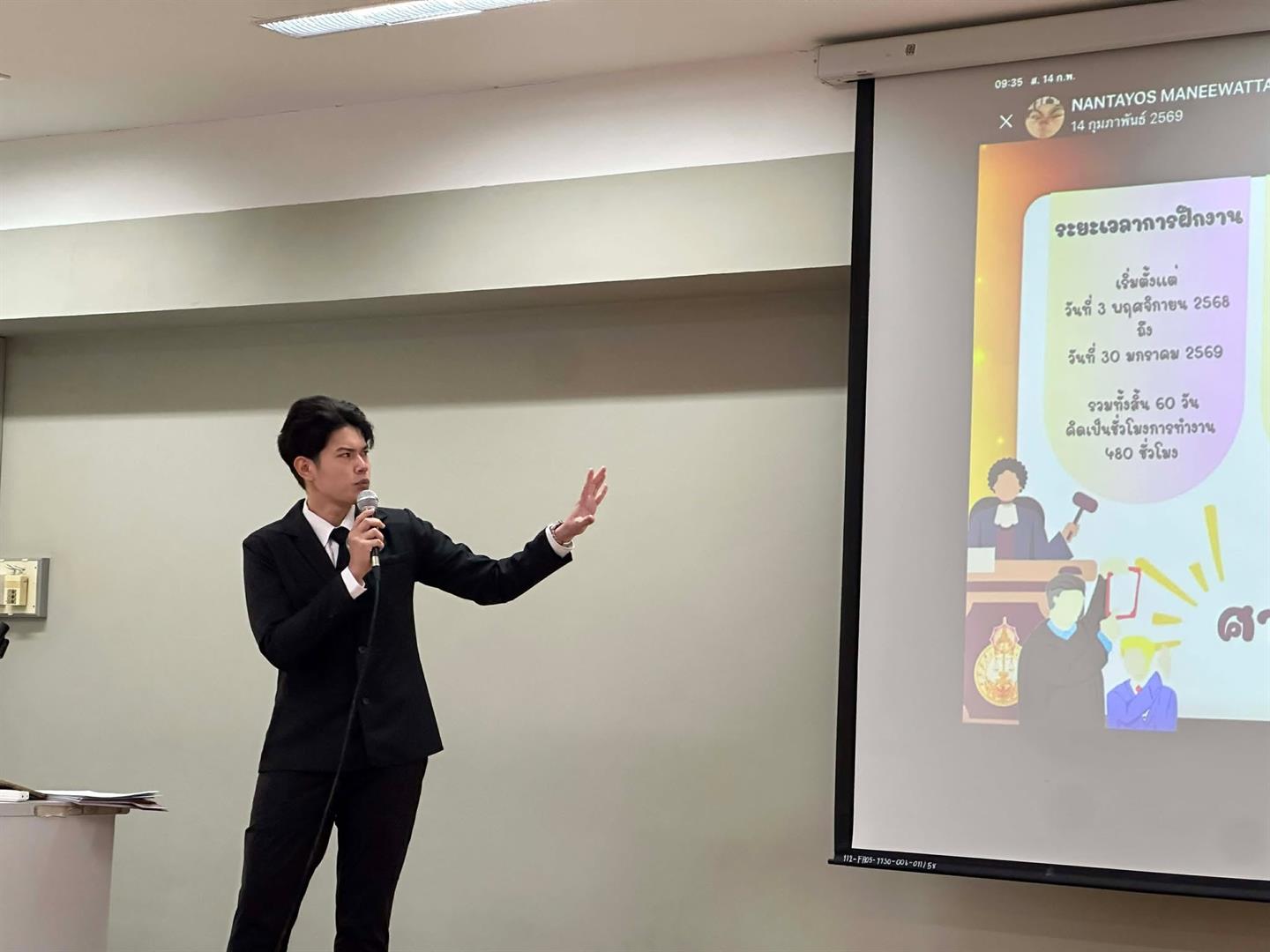 วันที่ 14 กุมภาพันธ์ 2569 ณ อาคารเรียนรวมหลังเก่า มหาวิทยาลัยพะเยา คณะนิติศาสตร์ได้จัดกิจกรรม "การนำเสนอผลการฝึกประสบการณ์วิชาชีพนักกฎหมาย และการประเมินผลลัพธ์การเรียนรู้ตลอดหลักสูตร" ภายใต้โครงการส่งเสริมการฝึกประสบการณ์และทักษะทางวิชาชีพ เพื่อเป็นเวทีให้นิสิตได้ถ่ายทอดและแลกเปลี่ยนประสบการณ์ จากการฝึกงานในหน่วยงานต่าง ๆ นำเสนอทักษะการปฏิบัติงานทางกฎหมายที่ได้เรียนรู้จริง และเปรียบเทียบความแตกต่างระหว่างข้อทฤษฎีกับการปรับใช้ในสถานการณ์จริง และเพื่อรับฟังคำแนะนำและข้อวิพากษ์จากคณาจารย์ผู้ทรงคุณวุฒิ นำไปสู่การพัฒนาศักยภาพของนิสิตให้มีความพร้อมก่อนเข้าสู่ตลาดแรงงานวิชาชีพกฎหมาย (Career Readiness) บรรยากาศเต็มไปด้วยการแลกเปลี่ยนเรียนรู้ โดยได้รับเกียรติจากคณะกรรมการผู้ประเมินซึ่งเป็นคณาจารย์ผู้เชี่ยวชาญในสาขาต่างๆ มาร่วมรับฟังการนำเสนอและให้ข้อเสนอแนะเพื่อพัฒนาทักษะวิชาชีพของนิสิต ได้แก่ ผศ.เฉลิมวุฒิ สาระกิจ, ผศ.นริษรา ประสิทธิปานวัง, ดร.ถิรวรรณ กลางรงค์, ผศ.กาญจนุรัตน์ ไมรินทร์ ,ผศ.นิภาภรณ์ ลาภเสถียร, ผศ.จีรวรรณ สุวรรณสุจริต, ผศ.เกียรติศักดิ์ ตันติจริยาพันธ์, ผศ.ธีระพันธ์ เมฆเกรียงไกร ,อาจารย์พรณัชชา ทับพันบุบผา, ผศ.วารุณี จันทร์ทอง, อาจารย์ศุภากร สุภาพ และ ผศ.พิษณุ เจนดง