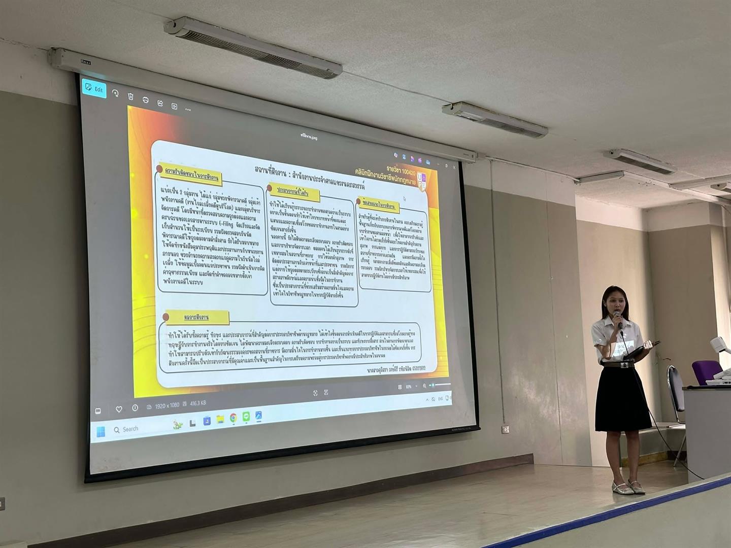 ในภาคบ่าย เป็นกิจกรรมสำคัญในการ สรุปและประเมินผลการนำเสนอ เพื่อประมวลภาพรวมของปัญหาและแนวทางแก้ไขที่นิสิตได้พบเจอระหว่างการปฏิบัติงานจริง นอกจากนี้ ยังมีการจัดกิจกรรม ประเมินผลลัพธ์การเรียนรู้ตลอดหลักสูตร (Program Learning Outcomes - PLOs) เพื่อตรวจสอบความพร้อมของนิสิตก่อนก้าวออกไปสู่ตลาดแรงงานและวิชาชีพกฎหมายอย่างเต็มตัว "โครงการนี้ไม่เพียงแต่เป็นการประเมินความรู้ แต่คือการสร้างความมั่นใจให้นักกฎหมายรุ่นใหม่จากรั้วมหาวิทยาลัยพะเยา มีความเชี่ยวชาญทั้งภาคทฤษฎีและจรรยาบรรณวิชาชีพ"