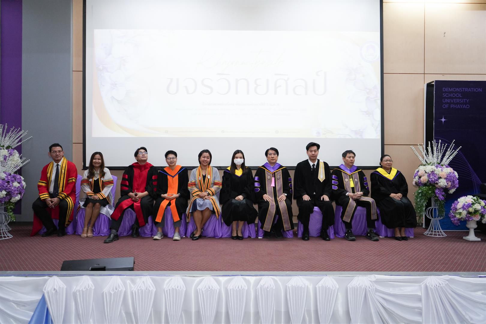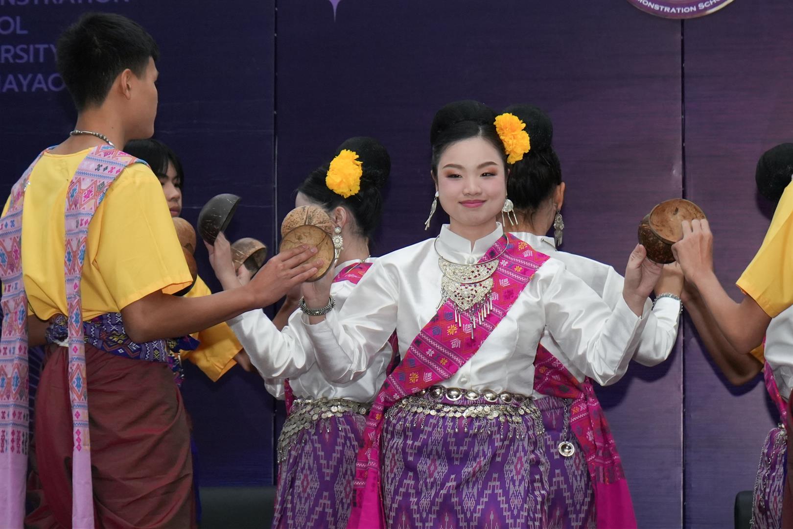 บรรยากาศภายในงานเต็มไปด้วย ความอบอุ่นและความประทับใจ เริ่มต้นด้วยการแสดงชุด “อีสาน–ใต้ สายสัมพันธ์” สะท้อนความหลากหลายและความผูกพันของชุมชนโรงเรียนสาธิตฯ จากนั้น รองศาสตราจารย์ ดร.ชยันต์ บุณยรักษ์ รักษาการแทนผู้อำนวยการโรงเรียนสาธิตมหาวิทยาลัยพะเยา ได้กล่าวรายงานผลการดำเนินงาน และแสดงความรู้สึกถึงนักเรียนรุ่นที่ 12 “ขจรวิทยศิลป์” พร้อมมอบเกียรติบัตรแสดงความยินดีแก่ผู้สำเร็จการศึกษา