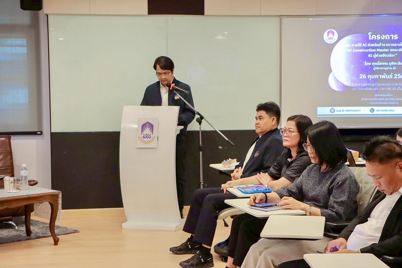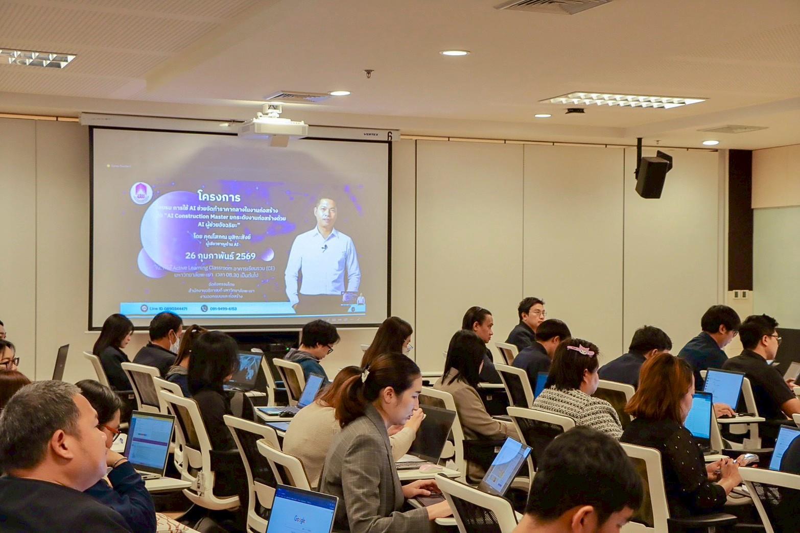 วันที่ 26 กุมภาพันธ์ 2569 สำนักงานอธิการบดีมหาวิทยาลัยพะเยา งานออกแบบและก่อสร้าง จัดโครงการอบรม การใช้ AI ช่วยจัดทำราคากลางในงานก่อสร้าง ในหัวข้อ “AI Construction Master ยกระดับงานก่อสร้างด้วย AI ผู้ช่วยอัจฉริยะ”