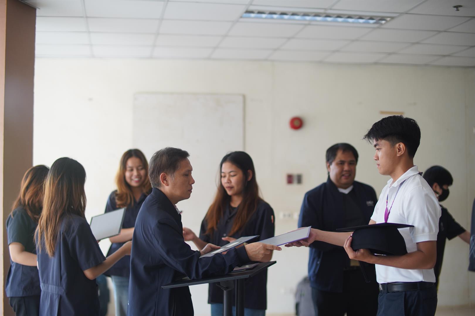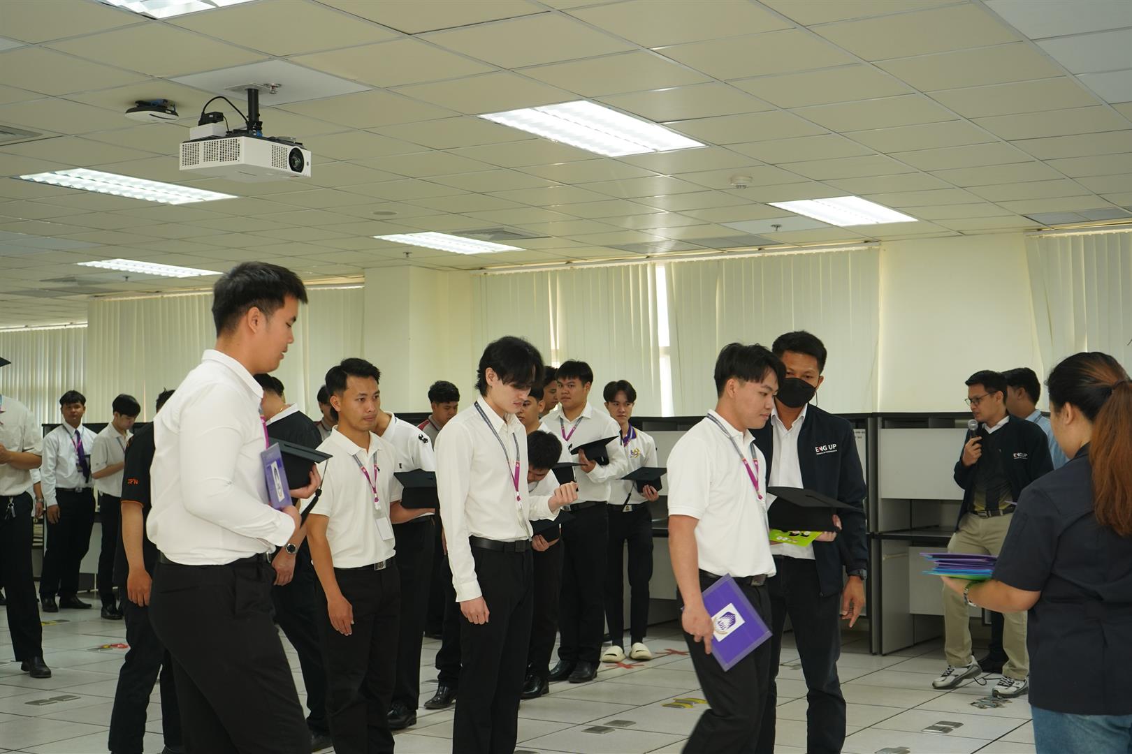รองศาสตราจารย์ ดร.ณัฐพงศ์ ดำรงวิริยะนุภาพ คณบดี พร้อมด้วยคณาจารย์ ครูปฏิบัติการ บุคลากร และสโมสรนิสิต คณะวิศวกรรมศาสตร์ ได้ร่วมกันดำเนินการจัดการฝึกซ้อมพิธีพระราชทานปริญญาบัตรแก่ผู้สำเร็จการศึกษา ระหว่างวันที่ 9 – 11 มีนาคม 2569 ณ ห้อง CE07208 เพื่อให้ผู้สำเร็จการศึกษาได้รับทราบขั้นตอน ระเบียบ และแนวปฏิบัติของพิธีการอย่างถูกต้อง นอกจากนี้คณะวิศวกรรมศาสตร์ยังได้เตรียมความพร้อมในด้านต่าง ๆ เพื่ออำนวยความสะดวกและสร้างความประทับใจแก่บัณฑิตและญาติบัณฑิต อาทิ การจัดเตรียมสถานที่ต้อนรับ พื้นที่สำหรับผู้ปกครองในการรับชมถ่ายทอดสด พื้นที่สำหรับการถ่ายภาพความทรงจำ และซุ้มแสดงความยินดี เพื่อร่วมเฉลิมฉลองความสำเร็จของบัณฑิตท่ามกลางบรรยากาศแห่งความภาคภูมิใจของครอบครัว