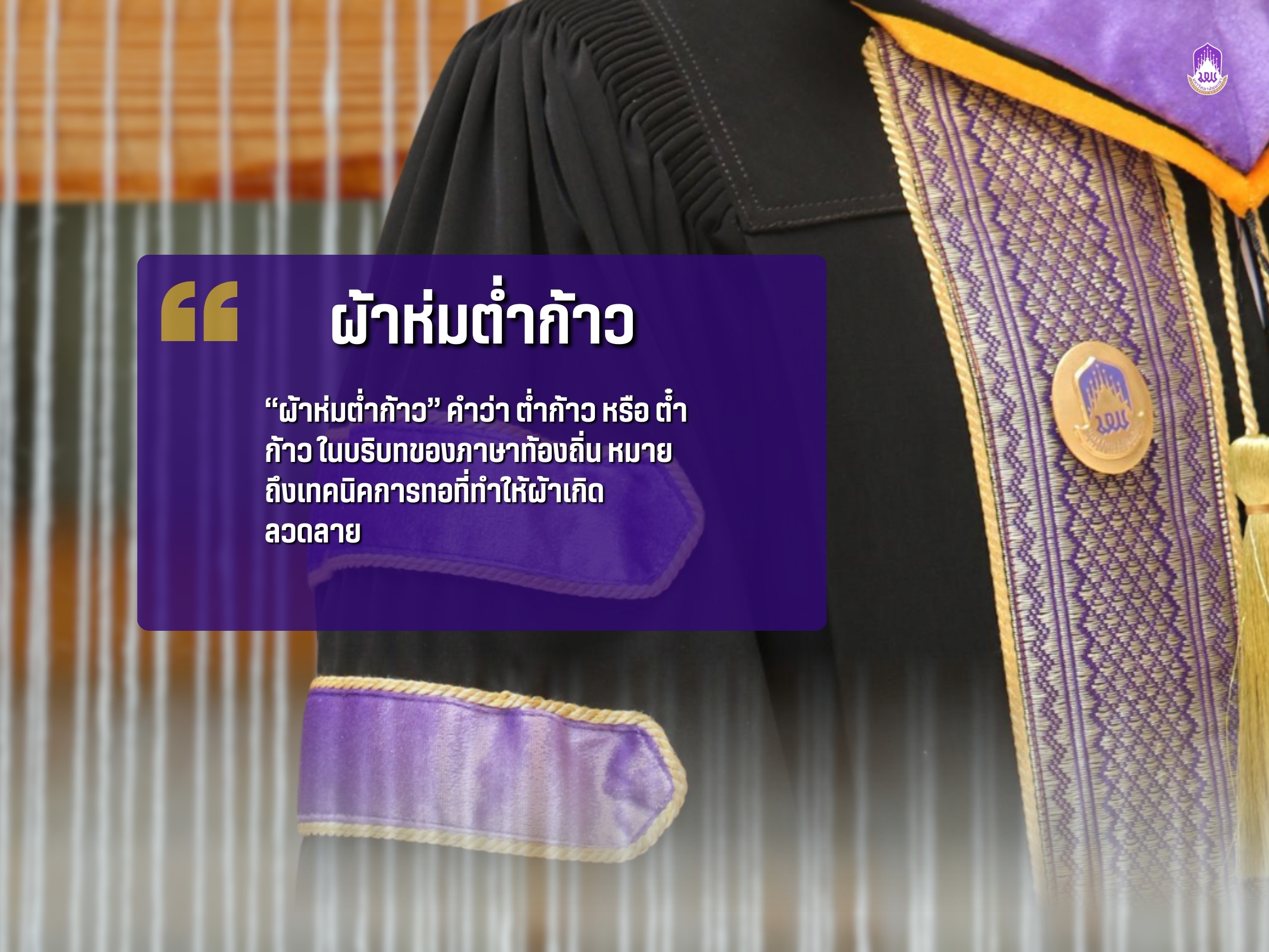 สิ่งที่ได้จากงานวิจัยชิ้นนั้นคือ “ผ้าทอลายต่ำก้าว” หรือ “ลายต๋ำก้าว” ในภาษาท้องถิ่น คำว่า ต่ำ หรือ ต๋ำ หมายถึงการทอ ส่วนคำว่า ก้าว หมายถึงการง้างหรือการแยกไม้เพื่อสอดด้ายให้เกิดลวดลาย เป็นเทคนิคการทอด้วยวิธี “เก็บมุก” หรือ “ขิด” ที่ต้องใช้ไม้เก็บลายไปทีละแถว สร้างลวดลายเรขาคณิต เรียงต่อกันอย่างประณีต งานทอชิ้นหนึ่งจึงต้องใช้ทั้งความอดทนและความชำนาญที่สูงมาก จนในอดีตผู้ที่จะได้ครอบครองผ้าลายนี้ มักเป็นผู้มีบุญบารมี หรือได้รับเป็นของขวัญล้ำค่าในโอกาสพิเศษ เพื่อแสดงความเคารพรักและศรัทธา