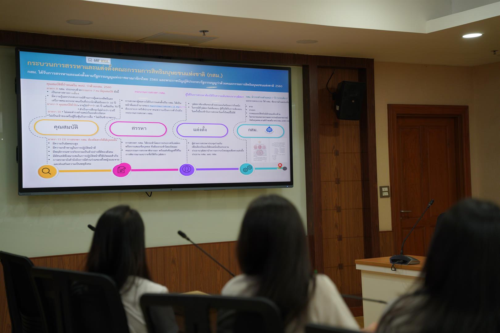 จากนั้นเป็นการบรรยาย หัวข้อ “กระบวนการรับเรื่องร้องเรียนของสำนักงาน กสม.” โดย สำนักรับเรื่องร้องเรียนและประสานการคุ้มครอง การบรรยาย หัวข้อ “การดำเนินงานด้านการคุ้มครองสิทธิมนุษยชน” โดย สำนักคุ้มครองสิทธิมนุษยชน 2 และเยี่ยมชมศูนย์รับเรื่องร้องเรียน โดย สำนักรับเรื่องร้องเรียนและประสานการคุ้มครอง