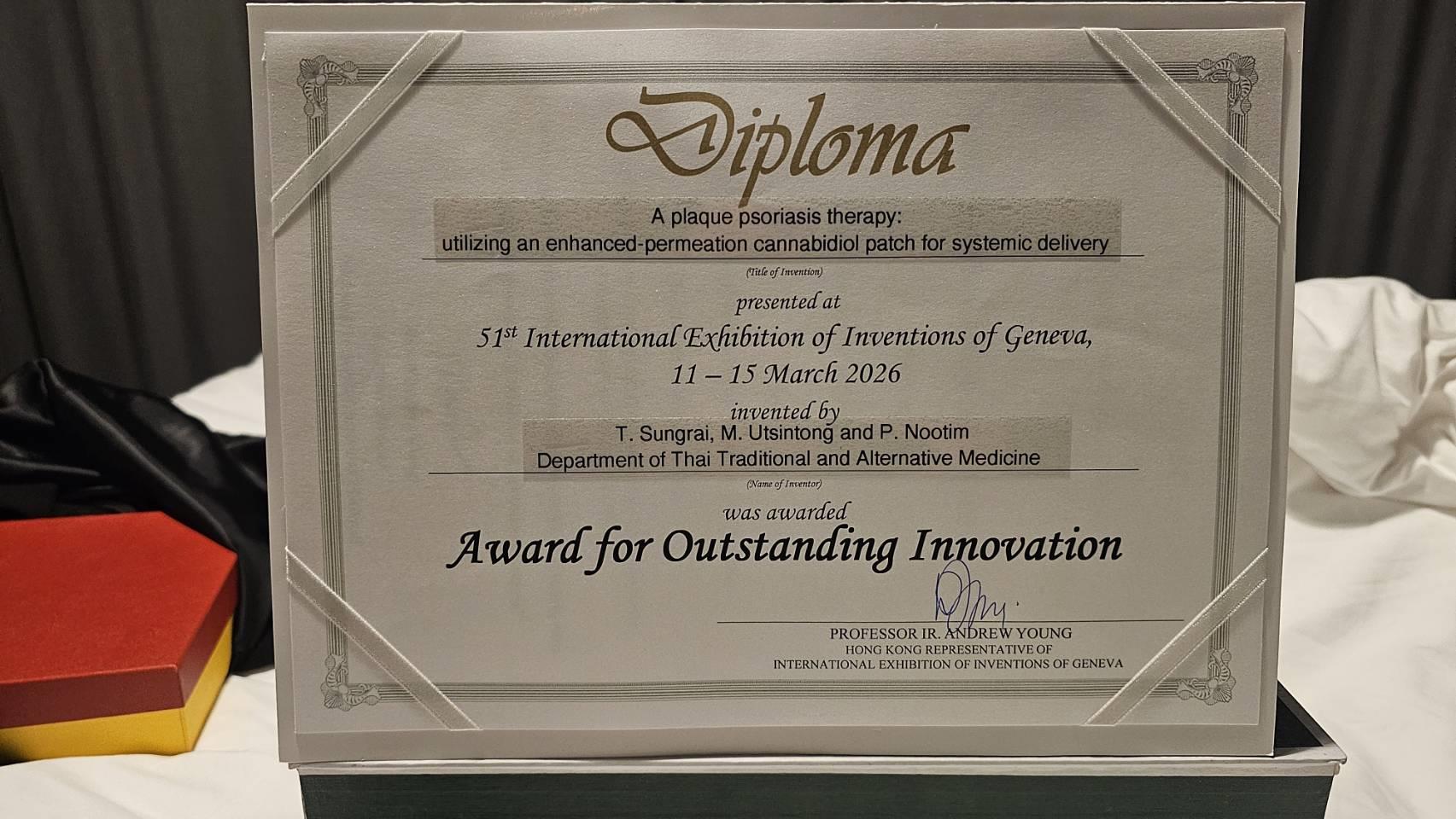 ในโอกาสได้รับรางวัลระดับนานาชาติ จากการเข้าร่วมงาน ""The 51th International Exhibition of Inventions of Geneva""