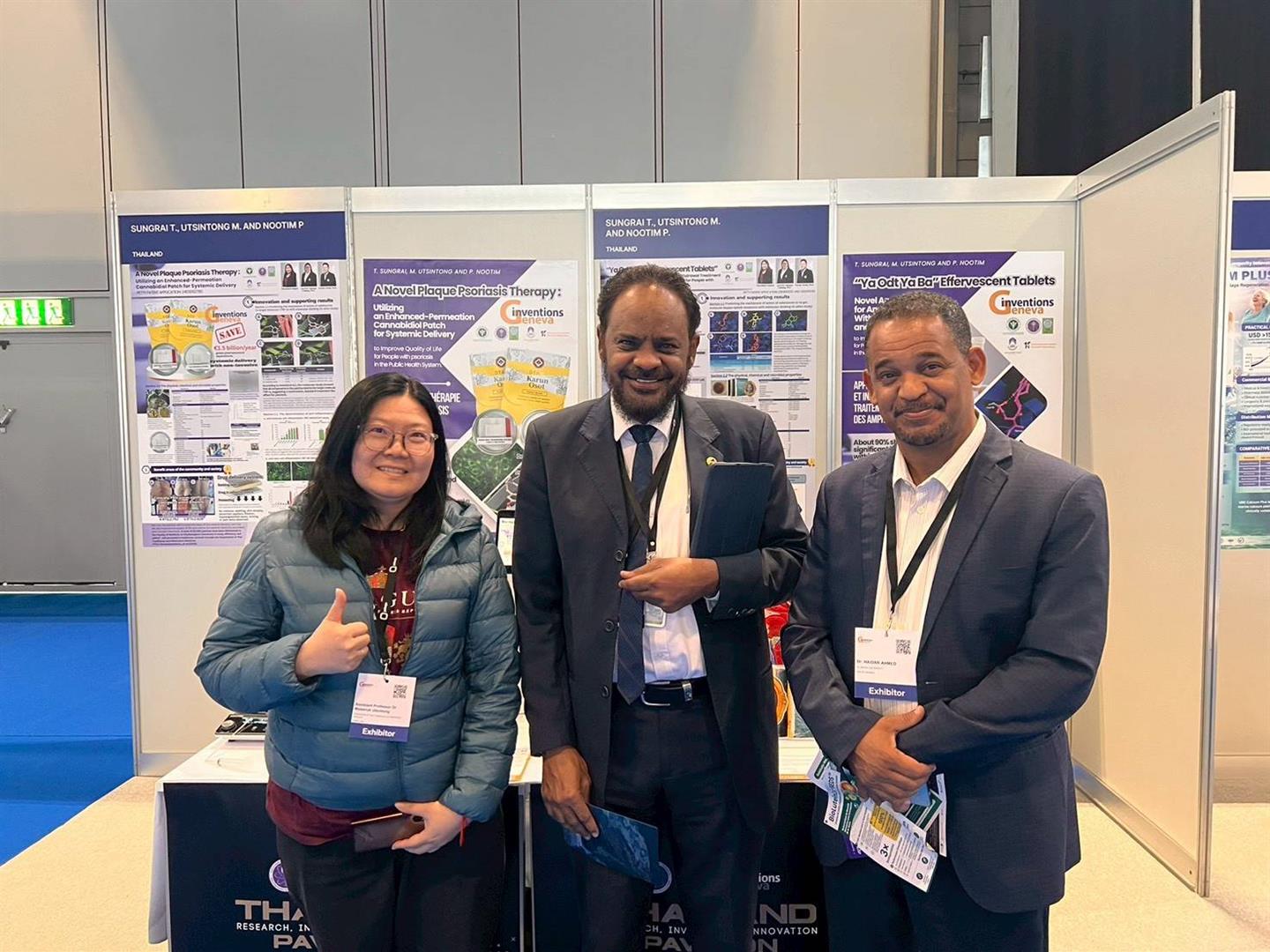 นักวิจัยร่วมกับ ภญ.ธีราธร สังหร่าย และ ดร.ภก.ปรีชา หนูทิม จากกรมการแพทย์แผนไทยและการแพทย์ทางเลือก