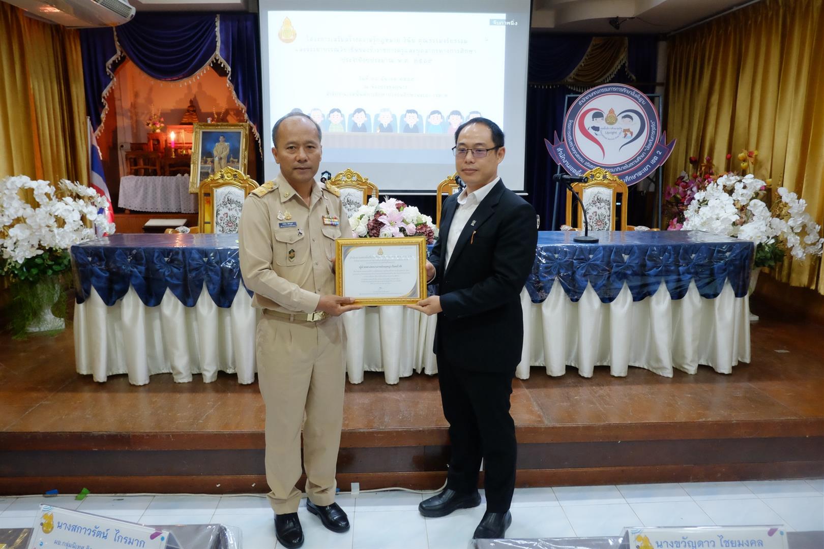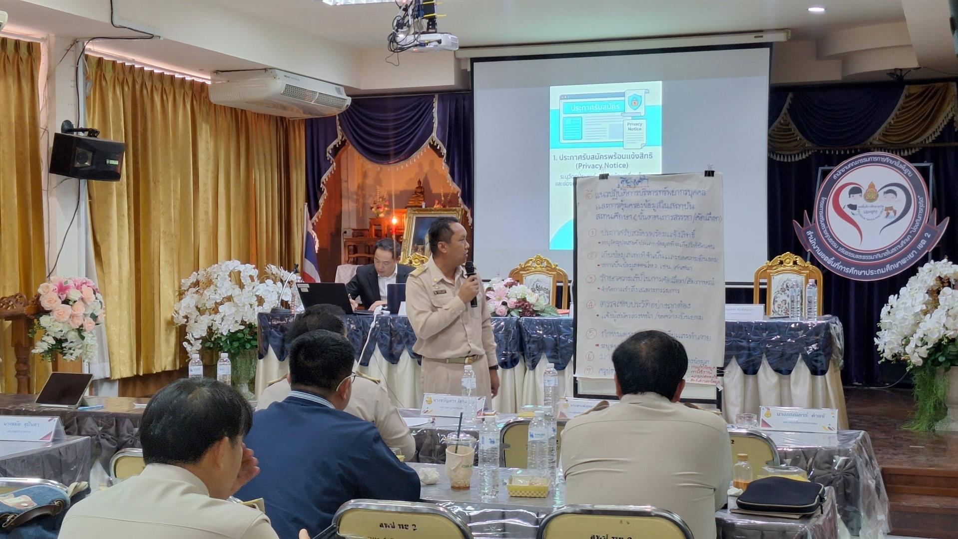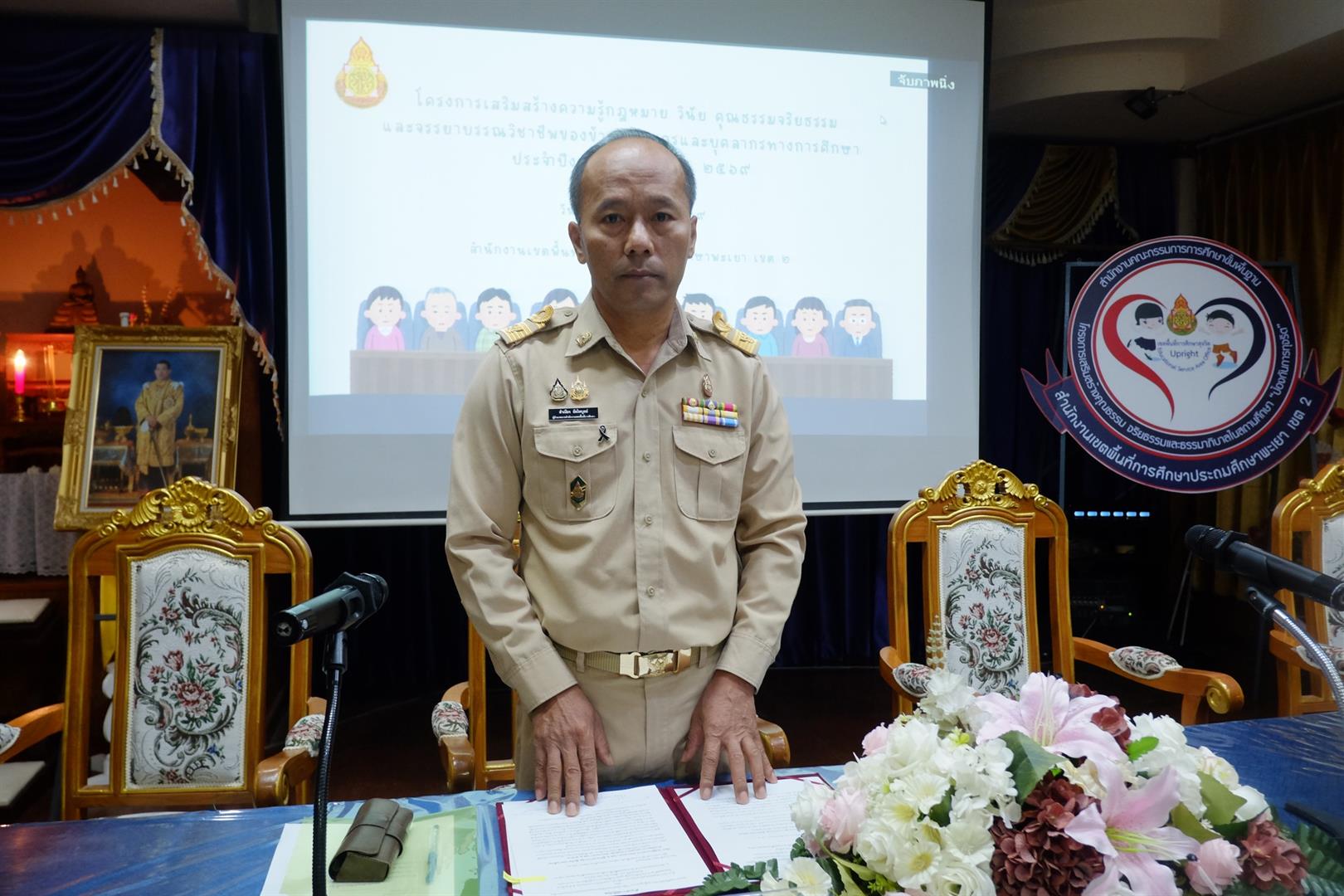 วันที่ 16 มีนาคม 2568 ณ ห้องประชุมภูนาง สำนักงานเขตพื้นที่การศึกษาประถมศึกษาพะเยา เขต 2 (สพป.พะเยา เขต 2) ได้มีการจัด "โครงการเสริมสร้างความรู้กฎหมาย วินัย คุณธรรม จริยธรรมและจรรยาบรรณวิชาชีพ" ให้กับข้าราชการครูและบุคลากรทางการศึกษา โดยได้รับเกียรติจาก นายสำเนียง อัตไพบูลย์ ผู้อำนวยการ สพป.พะเยา เขต 2 เป็นประธานในพิธีเปิดการอบรม