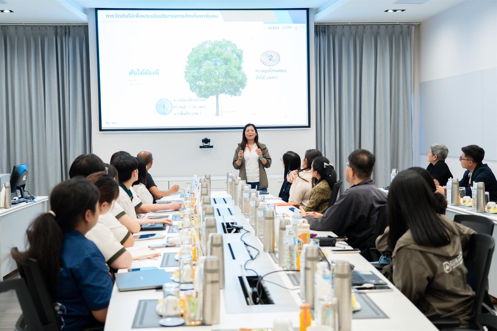 ทั้งนี้ ได้รับเกียรติจาก ดร.นิตยา ชาอิน หน่วยการจัดการก๊าซเรือนกระจก (CGM) มหาวิทยาลัยเทคโนโลยีพระจอมเกล้าธนบุรี เป็นวิทยากรถ่ายทอดองค์ความรู้ ด้านการตรวจวัดการกักเก็บคาร์บอนในเนื้อไม้