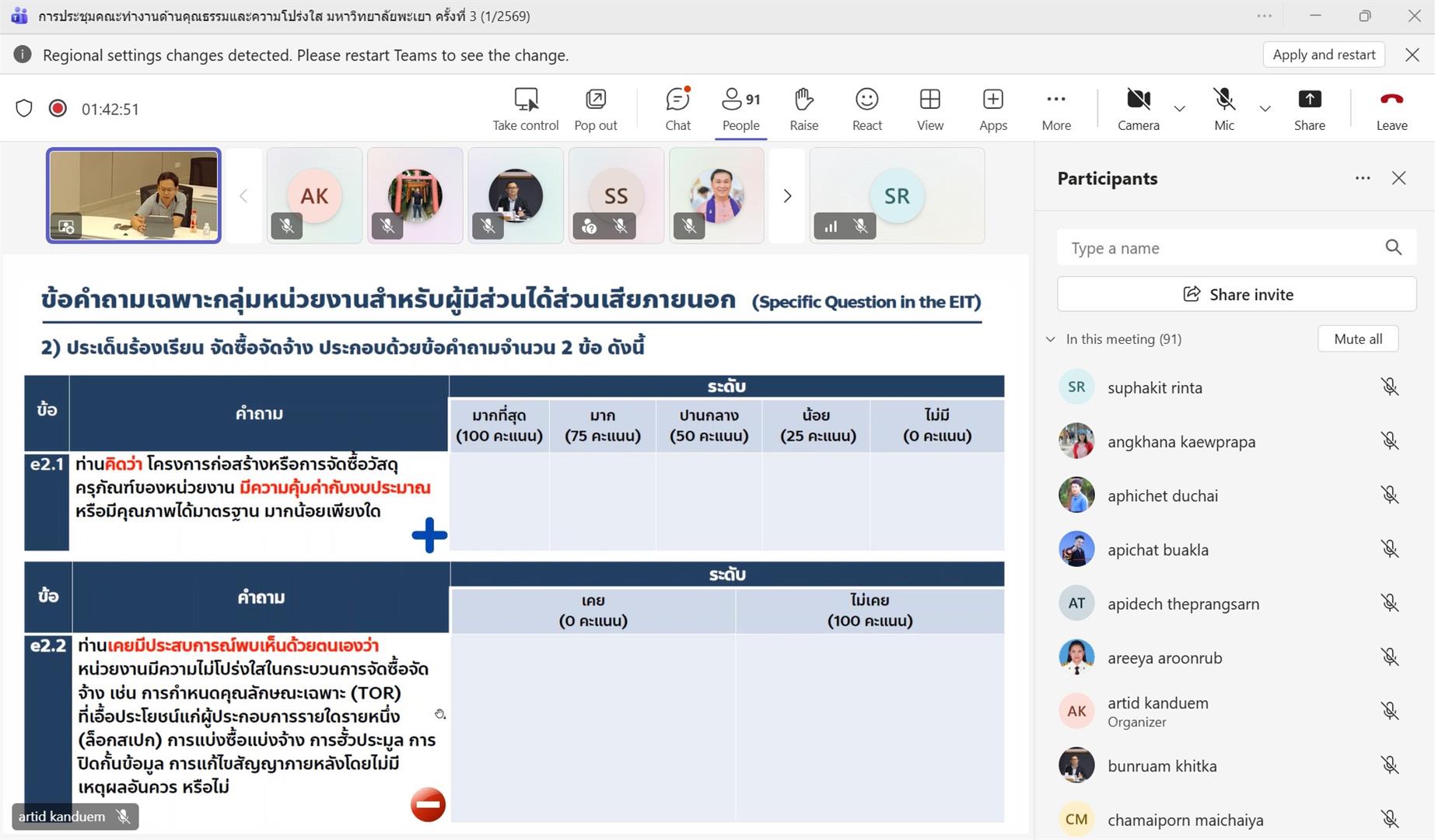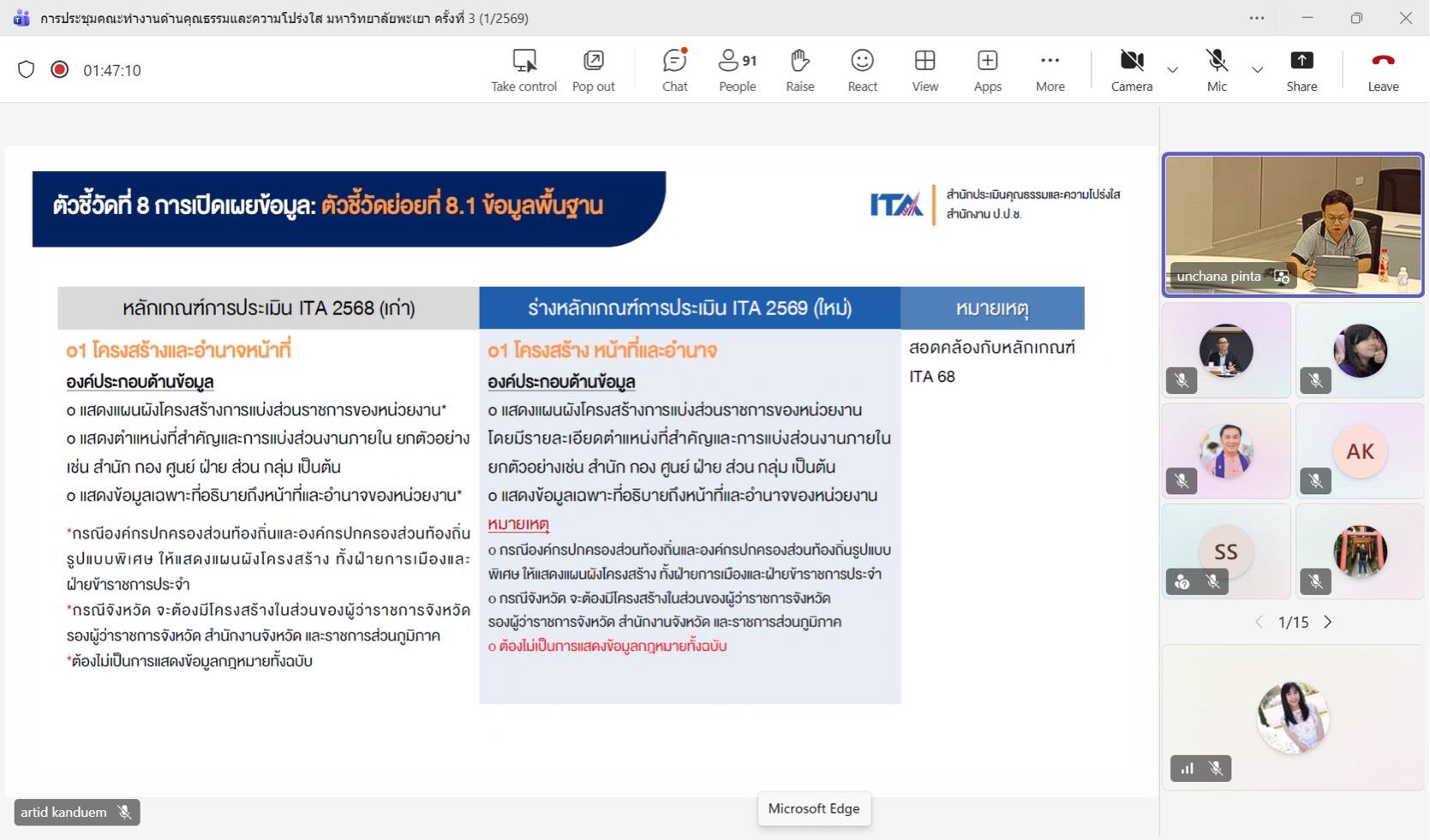 วันพุธที่ 25 มีนาคม 2569 กองแผนงาน มหาวิทยาลัยพะเยา จัดประชุมคณะทำงานด้านคุณธรรมและความโปร่งใส (Integrity and Transparency Assessment: ITA) เพื่อขับเคลื่อนกระบวนการประเมินคุณธรรมและความโปร่งใสในการดำเนินงานของหน่วยงานภายในมหาวิทยาลัย ประจำปีงบประมาณ พ.ศ. 2569 ให้เป็นไปตามแนวทางของสำนักงานคณะกรรมการป้องกันและปราบปรามการทุจริตแห่งชาติ โดยรองศาสตราจารย์ ดร.ฐิติรัตน์ เชี่ยวสุวรรณ รองอธิการบดีฝ่ายนโยบายและแผน กล่าวเปิดการประชุมและให้เกียรติเป็นวิทยากร ซึ่งจัดขึ้นในรูปแบบ online และ onsite