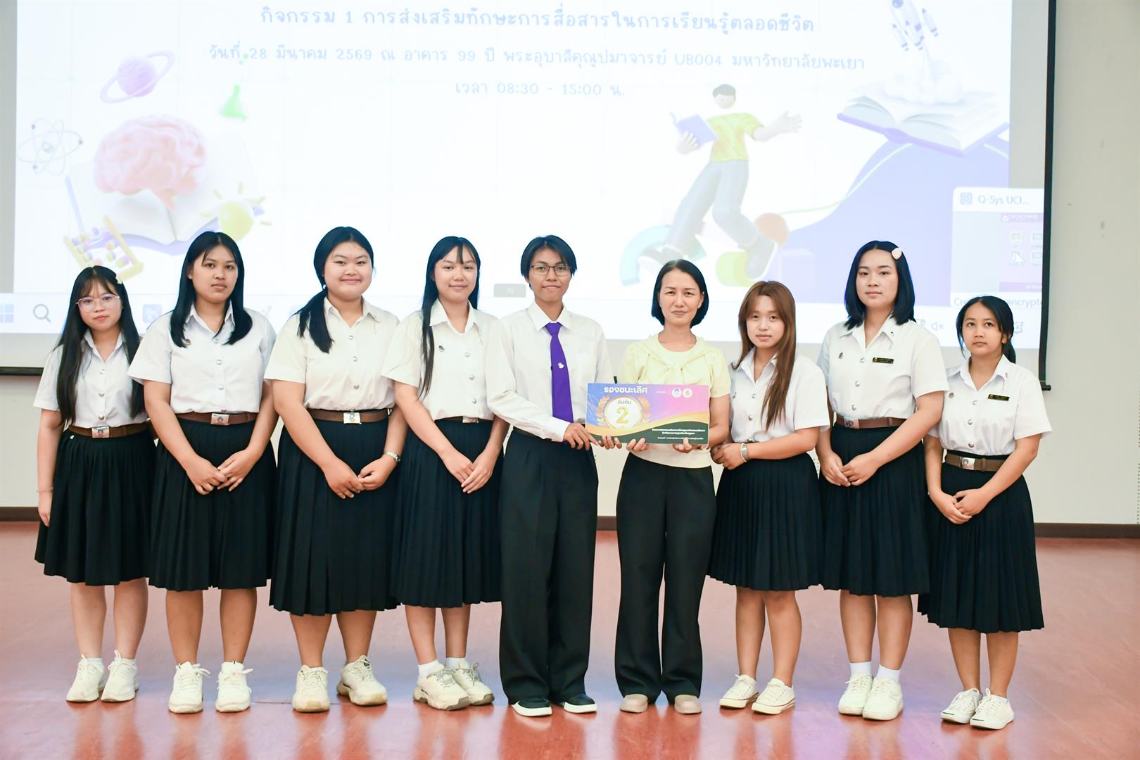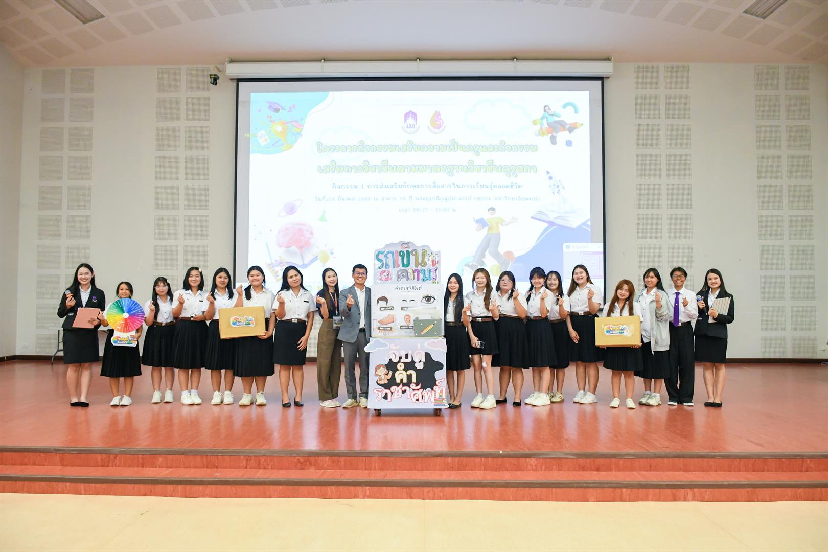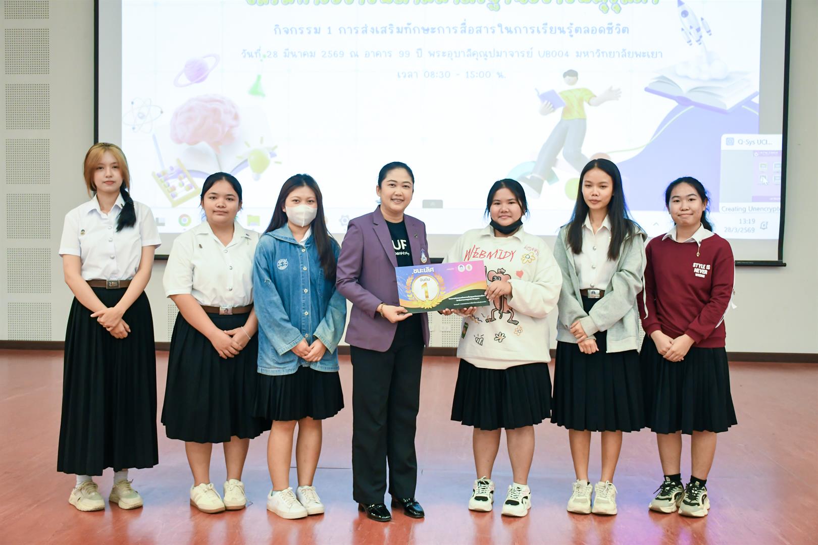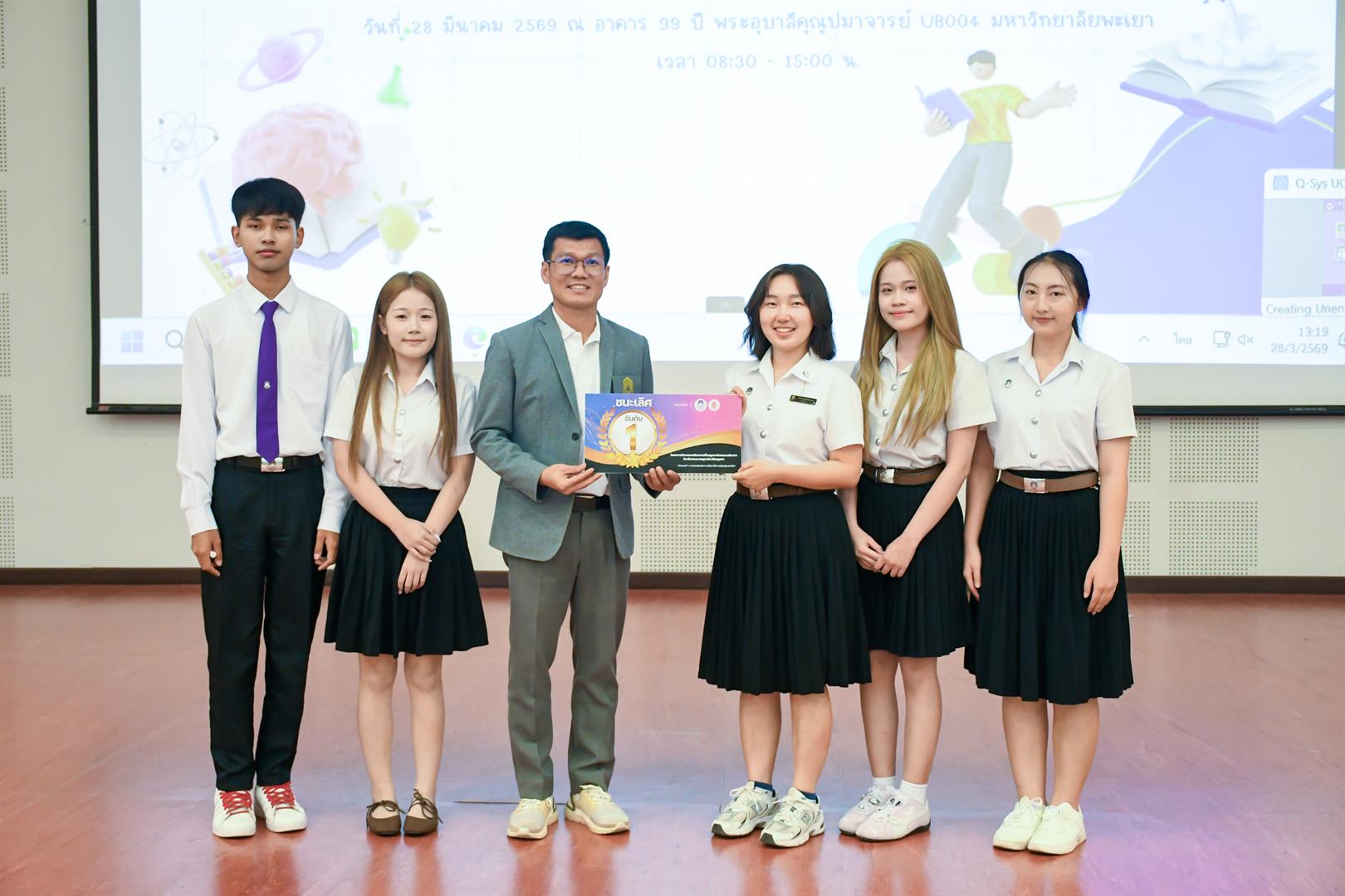 วันที่ 28 มีนาคม 2569 เวลา 08.30 น. วิทยาลัยการศึกษา ดำเนินโครงการกิจกรรมเสริมความเป็นครูและกิจกรรมเสริมทางวิชาชีพตามมาตรฐานวิชาชีพคุรุสภา กิจกรรม 1 การส่งเสริมทักษะการสื่อสารในการเรียนรู้ตลอดชีวิต ณ UB004 อาคาร 99 ปี พระอุบาลีคุณูปมาจารย์ มหาวิทยาลัยพะเยา โดยมี รองศาสตราจารย์ ดร.รักษิต สุทธิพงษ์ คณบดีวิทยาลัยการศึกษา เป็นประธานกล่าวเปิดโครงการฯ พร้อมด้วย ผู้ช่วยศาสตราจารย์ ดร.ณัฐวุฒิ สัพโส อาจารย์เมทิกา เลิศปฐมา ผู้ช่วยคณบดี ผู้ช่วยศาสตราจารย์ ดร.วรรณากร พรประเสริฐ อาจารย์สาขาวิชาวัดและประเมินผลการศึกษา หัวหน้างาน บุคลากรสายสนับสนุน ตลอดจนสโมสรนิสิต และนิสิตชั้นปีที่ 1 วิทยาลัยการศึกษา เข้าร่วมกิจกรรมอย่างพร้อมเพรียง ภายในกิจกรรมได้รับเกียรติจาก ดร.อภิวัฒน์ กันศรีเวียง ศึกษาธิการจังหวัดพะเยา เป็นวิทยากรบรรยายพิเศษในหัวข้อ “พิมพ์เขียวครูแห่งอนาคต : การประยุกต์ใช้สื่อและเทคโนโลยีทางการศึกษา เพื่อเสริมสร้างศักยภาพครูมืออาชีพในบริบทการเรียนรู้ตลอดชีวิต” ซึ่งเป็นประเด็นสำคัญในการพัฒนาศักยภาพนิสิตให้สอดคล้องกับการเปลี่ยนแปลงของโลกยุคดิจิทัล จากนั้นเป็นกิจกรรมการแข่งขันประกวดสื่อการเรียนการสอนของนิสิตชั้นปีที่ 1 โดยมีวัตถุประสงค์เพื่อให้นิสิตมีความรู้ความเข้าใจเกี่ยวกับสื่อ นวัตกรรม และเทคโนโลยีทางการศึกษา ตลอดจนเสริมสร้างทักษะในการออกแบบ ผลิต และประยุกต์ใช้สื่อการสอนอย่างมีประสิทธิภาพ อีกทั้งยังเป็นเวทีในการแลกเปลี่ยนเรียนรู้ระหว่างนิสิต คณาจารย์ และผู้เชี่ยวชาญ ภายใต้คำขวัญ “แกร่งกล้าวิชาการ เชี่ยวชาญวิชาชีพครู ชำนาญการสร้างสื่อนวัตกรรม” ทั้งนี้ กิจกรรมได้รับเกียรติจากคณะกรรมการผู้ทรงคุณวุฒิ ได้แก่ ดร.วัชรินทร์ แก่นจันทร์ ดร.อธิพงษ์ เพ็ชรเกิด และอาจารย์จินตนา แปบดิบ อาจารย์สาขาวิชาภาษาไทย คณะศิลปศาสตร์ มหาวิทยาลัยพะเยา ร่วมตัดสินการประกวดและให้ข้อเสนอแนะเชิงวิชาการ อันเป็นประโยชน์ต่อการพัฒนาอัตลักษณ์นิสิตวิทยาลัยการศึกษาให้มีความพร้อมในวิชาชีพครูต่อไป สอดคล้องกับเป้าหมายการพัฒนาที่ยั่งยืน (Sustainable Development Goals) SDG 4: ส่งเสริมโอกาสในการเรียนรู้ สร้างการศึกษาที่มีคุณภาพและเท่าเทียม (Quality Education) SDG 9: ส่งเสริมอุตสาหกรรม นวัตกรรม และโครงสร้างพื้นฐานที่ยั่งยืน และSDG 17 : สร้างความร่วมมือเพื่อการพัฒนาที่ยั่งยืน (Partnerships for the Goals)