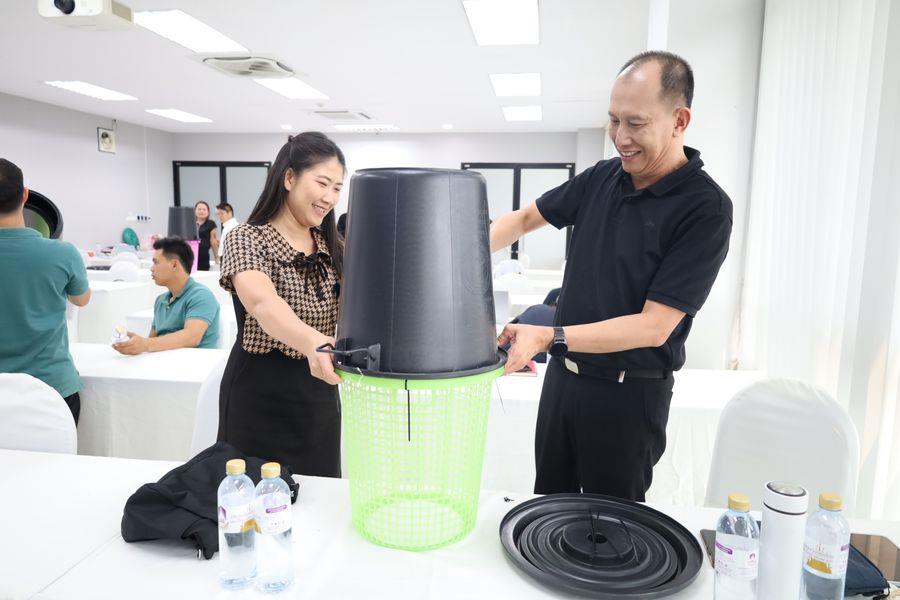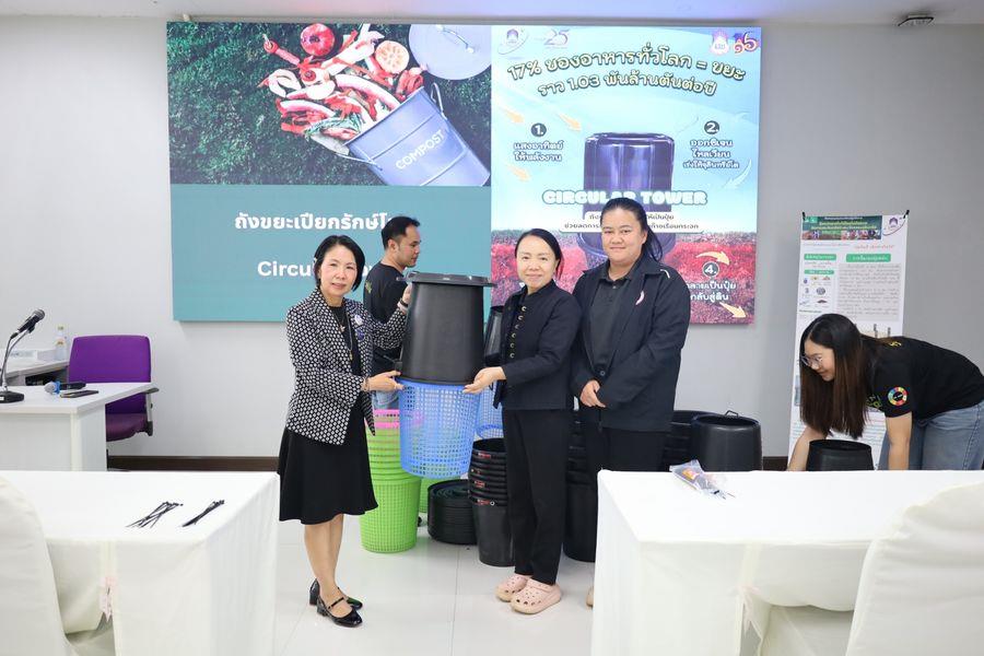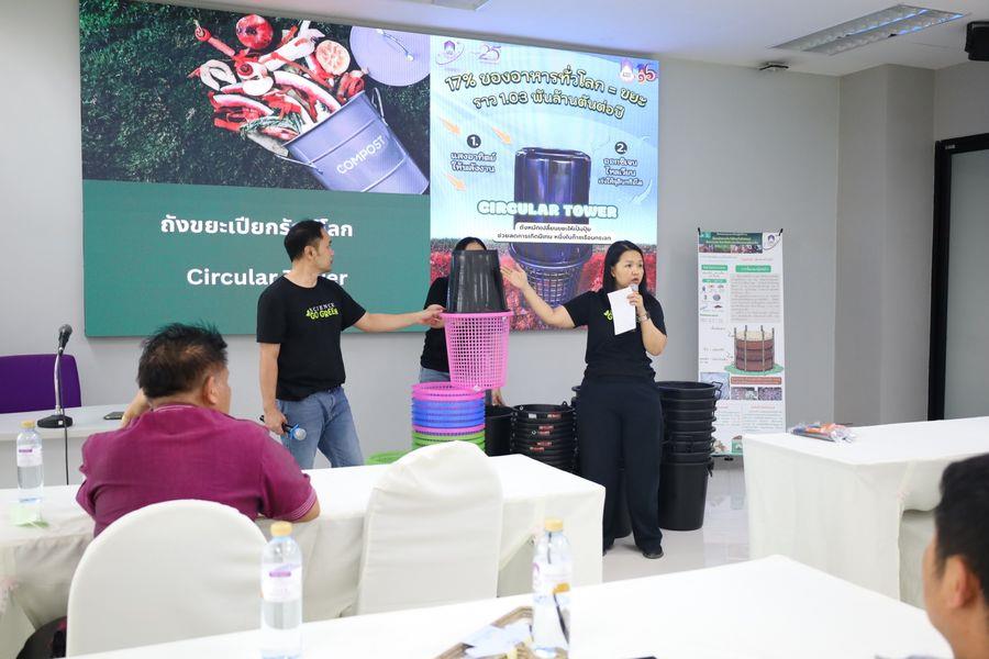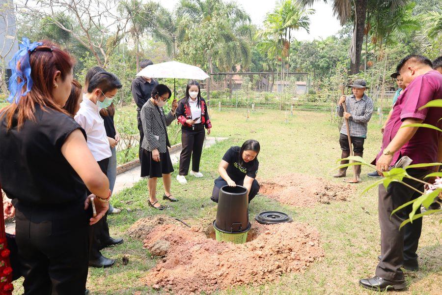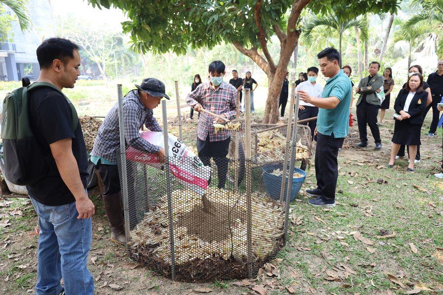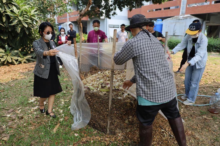 ในภาคบ่าย เป็นการอบรมเชิงปฏิบัติการถังขยะเปียกรักษ์โลก Circular Tower และการทำปุ๋ยหมักแบบไม่กลับกอง ในการนี้ ได้รับเกียรติจาก ผู้ช่วยศาสตราจารย์ ดร.สุกัญญา สืบแสน ดร.นิยม โฮ่งสิทธิ์ ดร.กันตา แสงวิจิตร และ ผู้ช่วยศาสตราจารย์ ดร.เริงฤทัย ศิริรักษ์ อาจารย์ประจำจากคณะวิทยาศาสตร์ มหาวิทยาลัยพะเยา เป็นวิทยากรบรรยาย และฝึกปฏิบัติการ ณ แปลงสาธิตสวนพอเพียง CRC นอกจากนี้ วิทยาเขตเชียงรายยังรับมอบฝาขวดน้ำพลาสติกจากตัวแทนโรงเรียนต่าง ๆ ที่เป็นเครือข่ายความร่วมมือด้านการจัดการขยะอย่างยั่งยืน ทั้งนี้ วิทยาเขตเชียงรายจะได้นำฝาขวดน้ำดังกล่าว ส่งมอบให้กับศูนย์สิ่งแวดล้อมและการจัดการที่ยั่งยืน มหาวิทยาลัยพะเยา เพื่อแปรรูปเป็นผลิตภัณฑ์ต่าง ๆ ต่อไป อีกด้วย