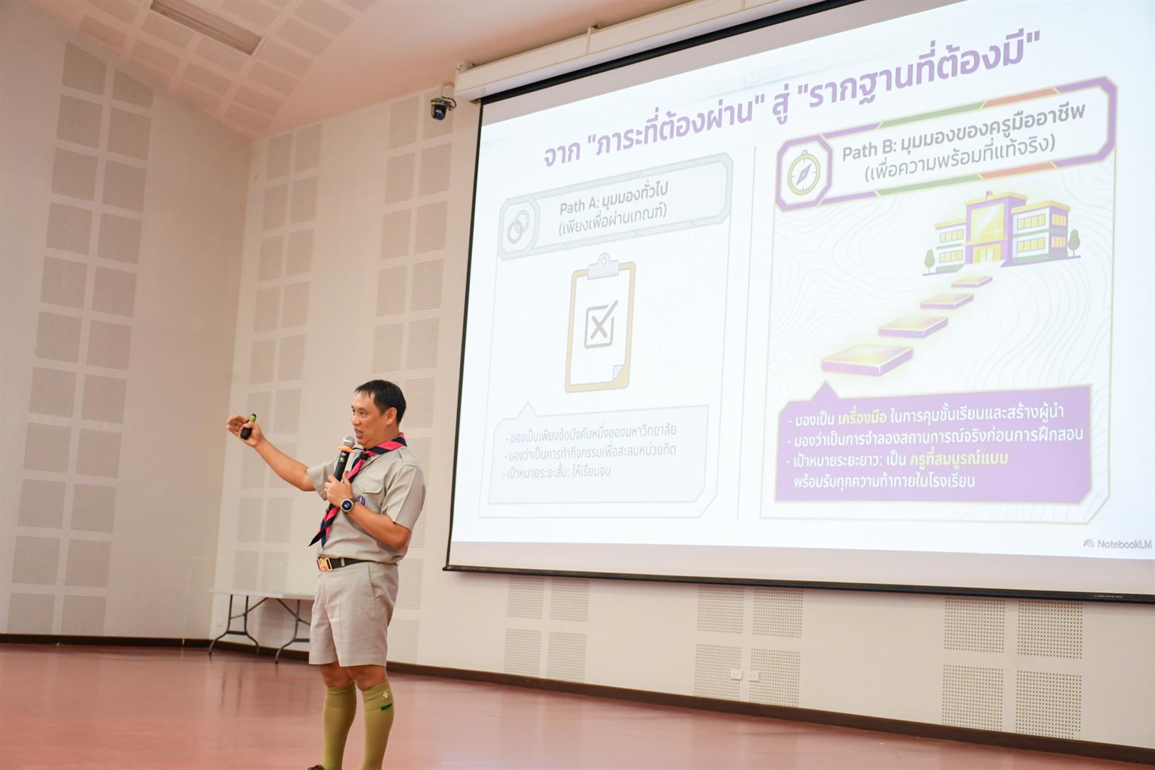 วันที่ 28 มีนาคม 2569 เวลา 14.00 น. วิทยาลัยการศึกษา ดำเนินโครงการกิจกรรมเสริมความเป็นครูและกิจกรรมเสริมทางวิชาชีพตามมาตรฐานวิชาชีพคุรุสภา กิจกรรมที่ 2 การส่งเสริมกิจกรรมลูกเสือและผู้นำเกมนันทนาการ ชีวิต ณ UB004 อาคาร 99 ปี พระอุบาลีคุณูปมาจารย์ มหาวิทยาลัยพะเยา โดยมี รองศาสตราจารย์ ดร.รักษิต สุทธิพงษ์ คณบดีวิทยาลัยการศึกษา เป็นประธานกล่าวเปิดโครงการฯ พร้อมด้วย ผู้ช่วยศาสตราจารย์ ดร.ณัฐวุฒิ สัพโส อาจารย์เมทิกา เลิศปฐมา ผู้ช่วยคณบดี หัวหน้างาน บุคลากรสายสนับสนุน ตลอดจนสโมสรนิสิต และนิสิตชั้นปีที่ 1 วิทยาลัยการศึกษา เข้าร่วมกิจกรรมอย่างพร้อมเพรียง ภายในกิจกรรมได้รับเกียรติจาก ครูกฤษฎา ยะรินทร์ ครูชำนาญการพิเศษ โรงเรียนเทศบาล 1 (พะเยาประชานุกูล) เป็นวิทยากรบรรยายให้ความรู้ในหัวข้อ “ความสำคัญของวิชาลูกเสือ” และ “ความสำคัญและความจำเป็นในการฝึกอบรมลูกเสือ” ซึ่งเป็นสาระสำคัญในการเสริมสร้างความเข้าใจเกี่ยวกับบทบาทของกิจกรรมลูกเสือในการพัฒนาผู้เรียน การจัดโครงการในครั้งนี้มีวัตถุประสงค์เพื่อให้นิสิตชั้นปีที่ 1 วิทยาลัยการศึกษา มีความรู้ความเข้าใจเกี่ยวกับความสำคัญของวิชาลูกเสือในฐานะกระบวนการพัฒนาผู้เรียนอย่างรอบด้าน ทั้งด้านร่างกาย จิตใจ สติปัญญา และคุณธรรมจริยธรรม ตระหนักถึงความสำคัญและความจำเป็นของการฝึกอบรมลูกเสือในการพัฒนาศักยภาพตนเอง ตลอดจนสามารถนำความรู้ไปประยุกต์ใช้ในการจัดการเรียนรู้ได้อย่างเหมาะสม อีกทั้งยังส่งเสริมเจตคติที่ดีต่อวิชาลูกเสือ และสร้างแรงจูงใจในการมีส่วนร่วมในการจัดกิจกรรมลูกเสืออย่างมีคุณภาพ สอดคล้องกับเป้าหมายการพัฒนาที่ยั่งยืน (Sustainable Development Goals) SDG 4: ส่งเสริมโอกาสในการเรียนรู้ สร้างการศึกษาที่มีคุณภาพและเท่าเทียม (Quality Education) และSDG 16 : สันติภาพ ความยุติธรรม และสถาบันที่เข้มแข็ง (Peace, Justice and Strong Institutions)