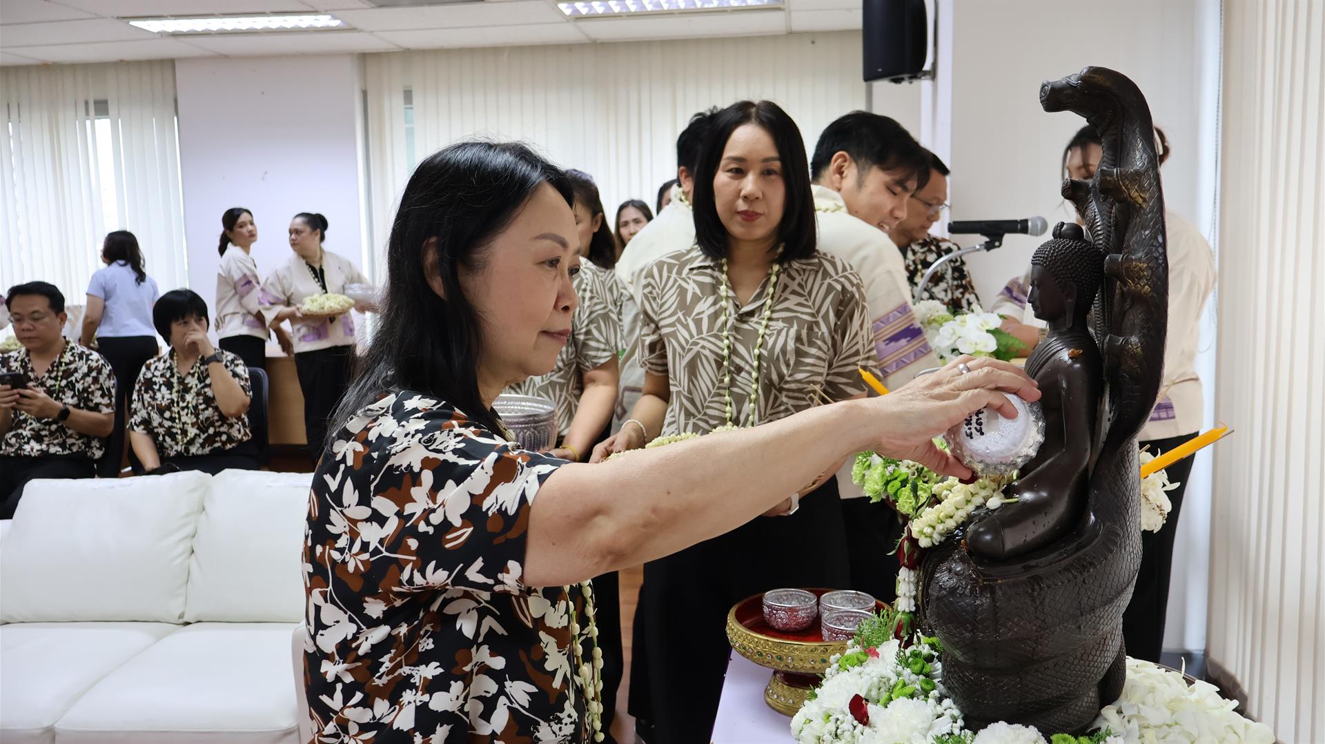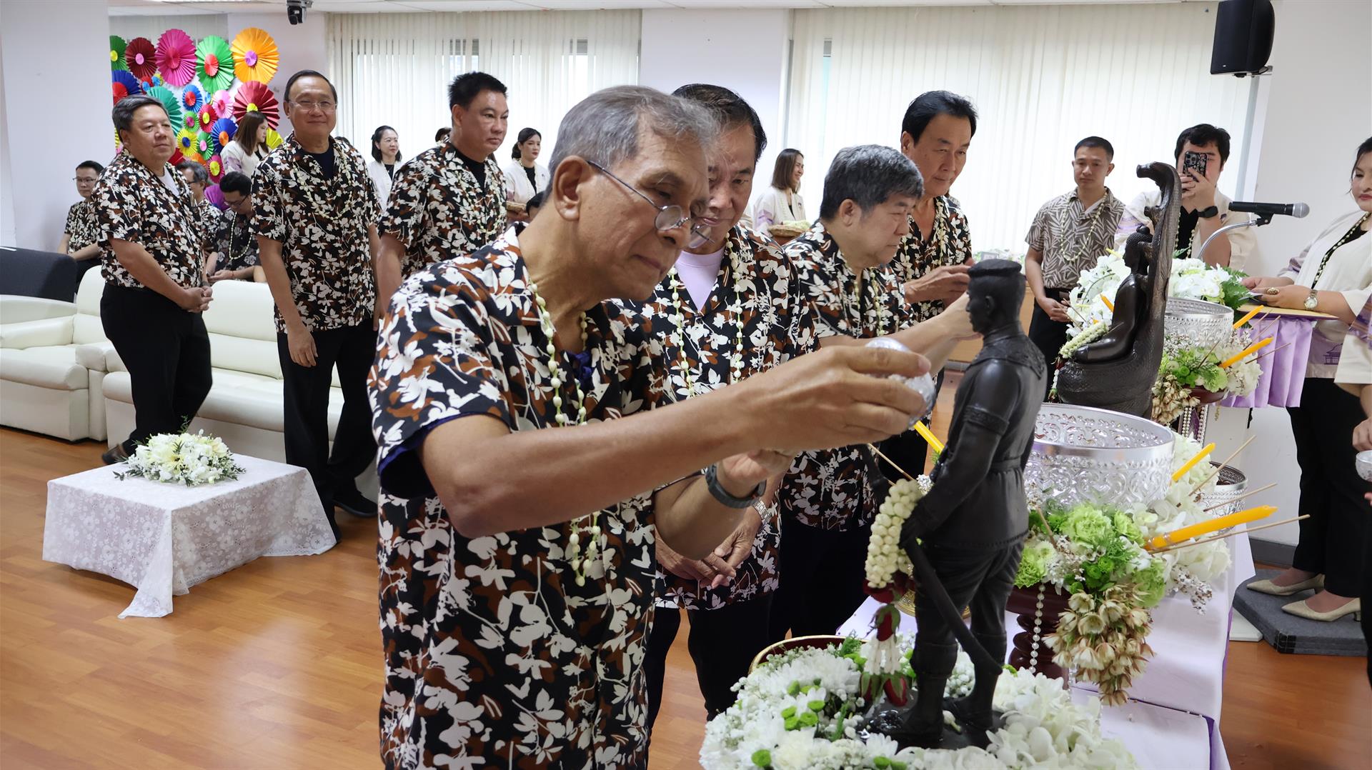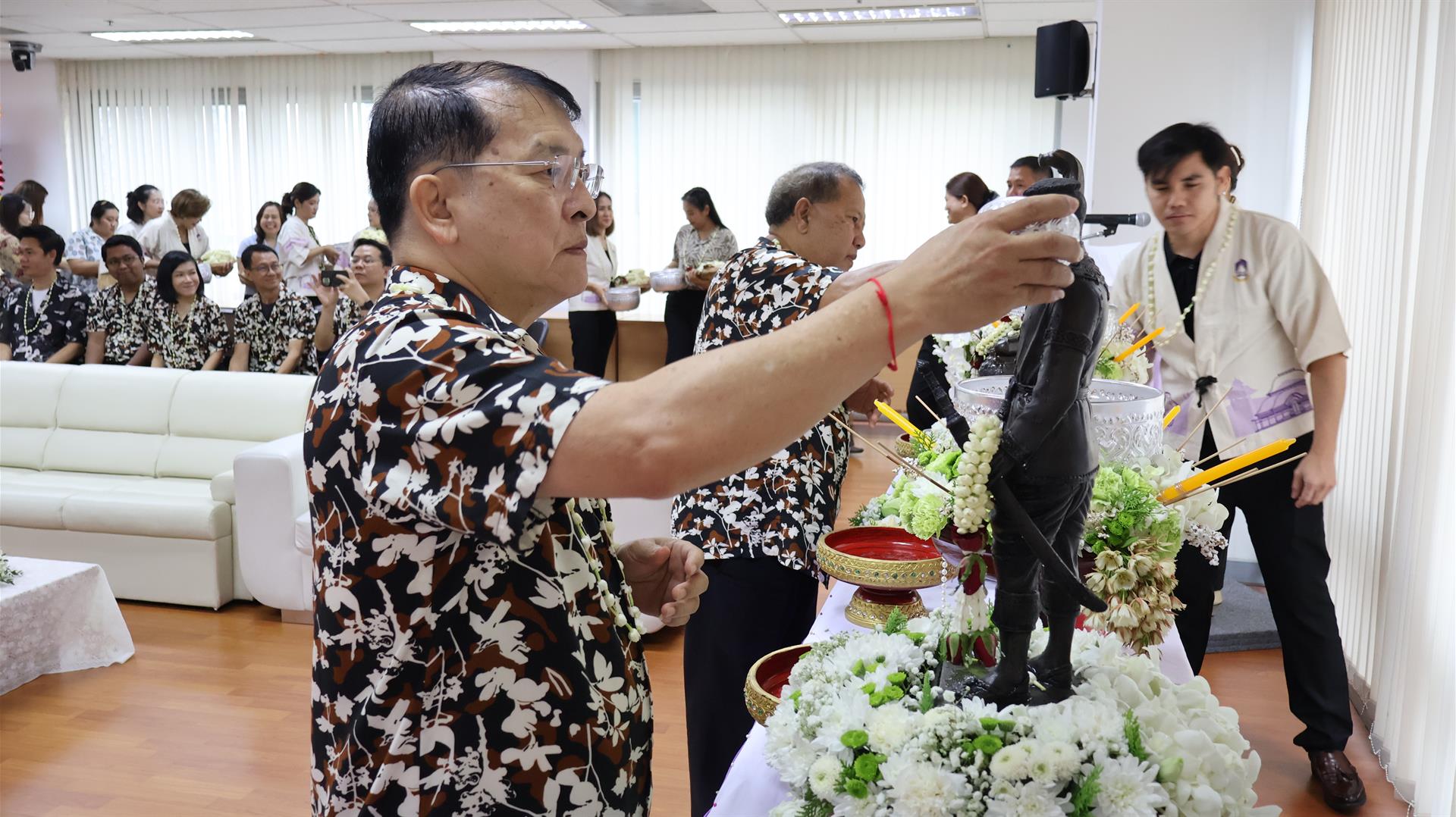 รองศาสตราจารย์ ดร.สุภกร พงศบางโพธิ์ อธิการบดีมหาวิทยาลัยพะเยา พร้อมด้วยคณะผู้บริหารและบุคลากร เข้าร่วมพิธีสระเกล้าดำหัว ศาสตราจารย์พิเศษอรรถพล ใหญ่สว่าง นายกสภามหาวิทยาลัยพะเยา และกรรมการสภามหาวิทยาลัยผู้ทรงคุณวุฒิ โดยพิธีเริ่มต้นด้วยการสรงน้ำพระพุทธภุชคารักษ์ พระพุทธรูปประจำมหาวิทยาลัย และพระบรมรูปสมเด็จพระนเรศวรมหาราช เพื่อความเป็นสิริมงคล ก่อนเข้าสู่พิธีสระเกล้าดำหัวตามลำดับ