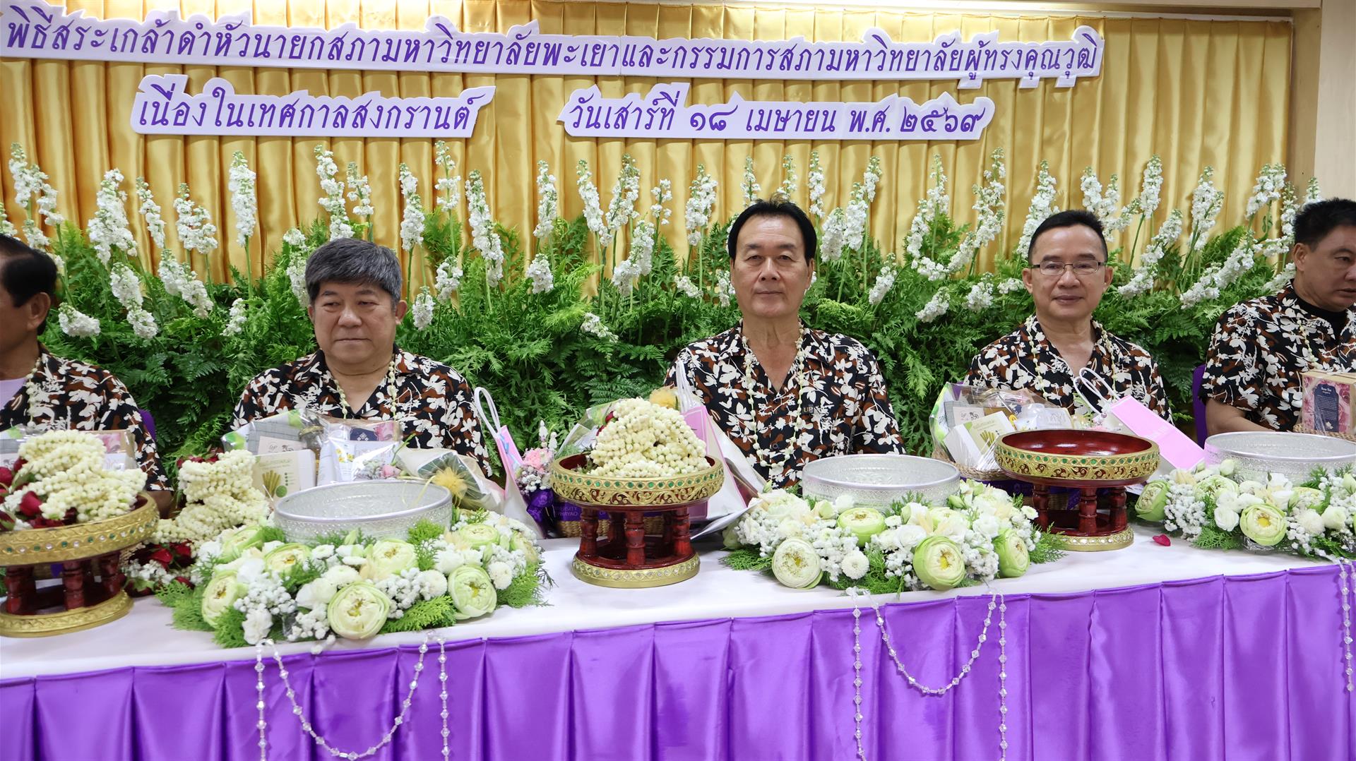 วันเสาร์ที่ 18 เมษายน 2569 มหาวิทยาลัยพะเยา จัดพิธีสระเกล้าดำหัวนายกสภามหาวิทยาลัยพะเยาและกรรมการสภามหาวิทยาลัยผู้ทรงคุณวุฒิ เนื่องในเทศกาลสงกรานต์ ณ วิทยาลัยการจัดการ มหาวิทยาลัยพะเยา อาคารเวฟเพลส กรุงเทพมหานคร เพื่อสืบสานและอนุรักษ์ประเพณีอันดีงามของไทย ตลอดจนแสดงออกถึงความเคารพและความกตัญญูต่อผู้ใหญ่