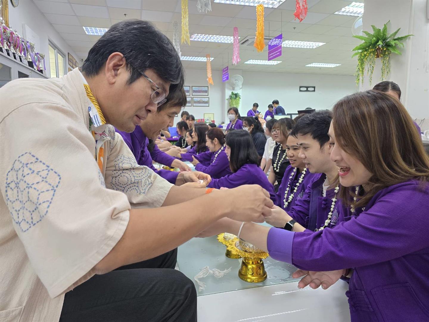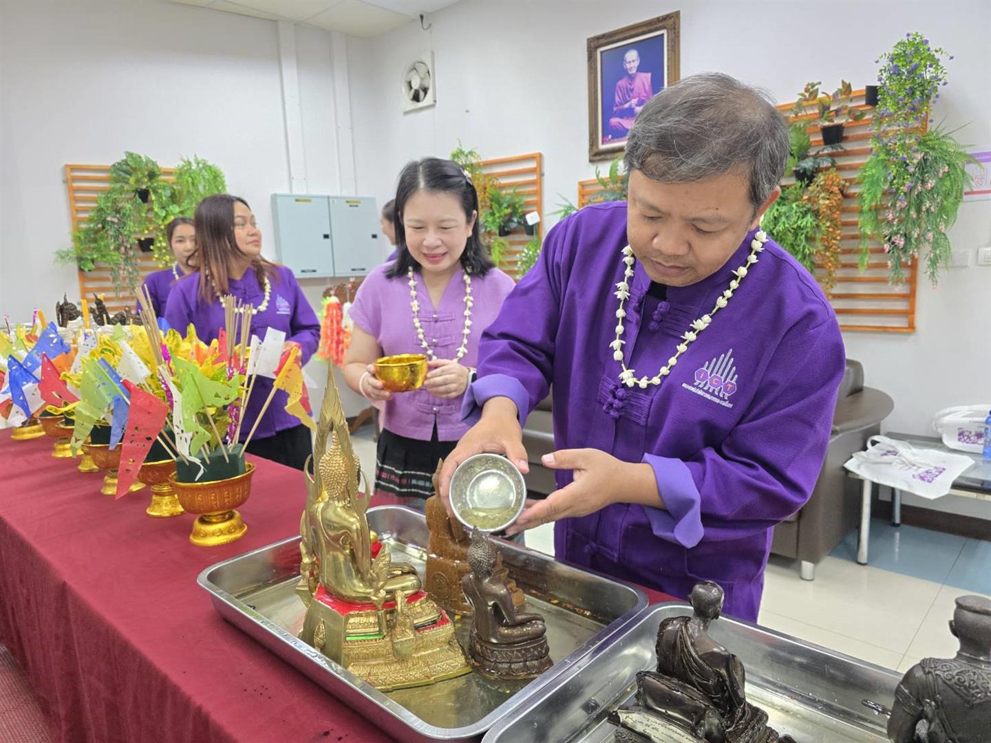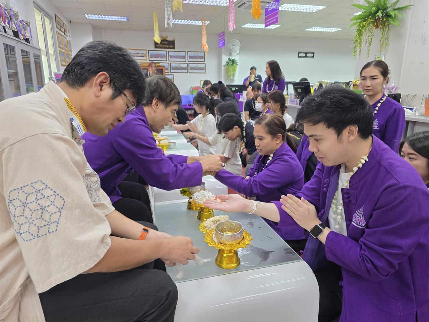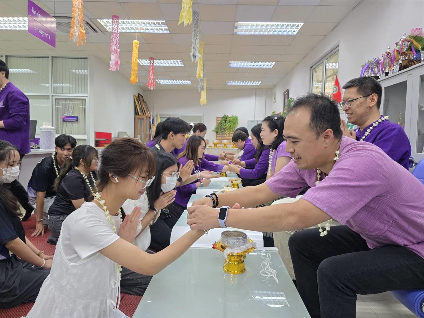 เมื่อวันที่ 20 เมษายน 2569 คณะเทคโนโลยีสารสนเทศและการสื่อสาร ได้จัดกิจกรรมสรงน้ำพระ และรดน้ำดำหัว ขอพรผู้ใหญ่ ณ ห้องสำนักงานคณะฯ โดยมีคณาจารย์ ผู้บริหาร และผู้อาวุโสภายในคณะร่วมให้พร เพื่อความเป็นสิริมงคลในการดำเนินชีวิตและการทำงาน ภายในงานมีบุคลากรสายวิชาการ สายสนับสนุน สโมสรนิสิต และนิสิตของคณะ เข้าร่วมพิธีอย่างพร้อมเพรียง โดยได้ร่วมกันรดน้ำดำหัวผู้บริหารและผู้อาวุโส เพื่อแสดงความเคารพ ขอพร และขอขมา ตามขนบธรรมเนียมประเพณีไทย