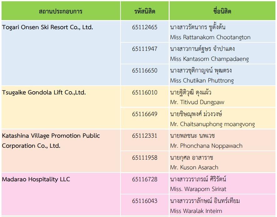 สำหรับการดำเนินงานในปีการศึกษา 2568 มีการขยายความร่วมมือเพิ่มเติม โดยได้ลงนามบันทึกข้อตกลงกับสถานประกอบการเพิ่มอีก 6 หน่วยงาน ส่งผลให้เครือข่ายความร่วมมือมีความเข้มแข็งมากยิ่งขึ้น และมีนิสิตเข้าร่วมโครงการจำนวนทั้งสิ้น 15 คน (ตามรายชื่อที่แนบ) โดยนิสิตได้เข้าฝึกปฏิบัติงานระหว่างวันที่ 15 ธันวาคม 2568 ถึงวันที่ 31 มีนาคม 2569 รวมระยะเวลา 16 สัปดาห์ ในการนี้ คณะศิลปศาสตร์ โดย ดร.อิทธิพล บัวย้อย ผู้ช่วยคณบดี และอาจารย์พันธุ์พิชญา ปัญญาฟู ประธานหลักสูตรฯ ได้ดำเนินการส่งนิสิต ณ ท่าอากาศยานสุวรรณภูมิด้วยความเรียบร้อย และได้รับความร่วมมือจากสถานประกอบการปลายทางในการจัดส่งตัวแทนมารับนิสิตและดูแลการเดินทางเข้าสู่สถานประกอบการอย่างปลอดภัย