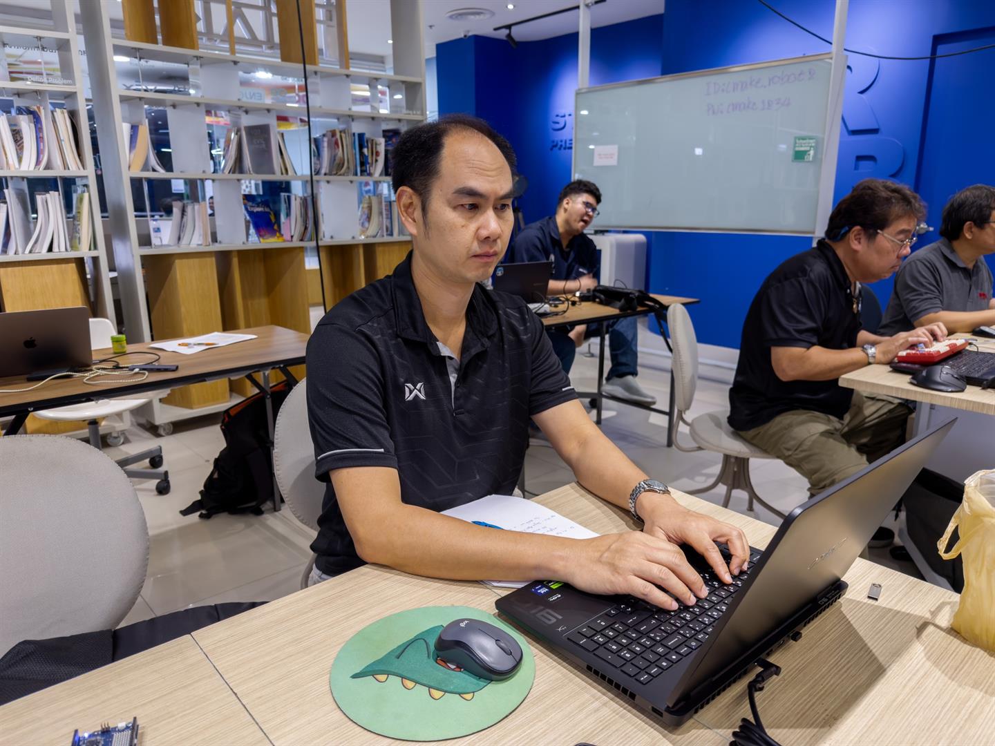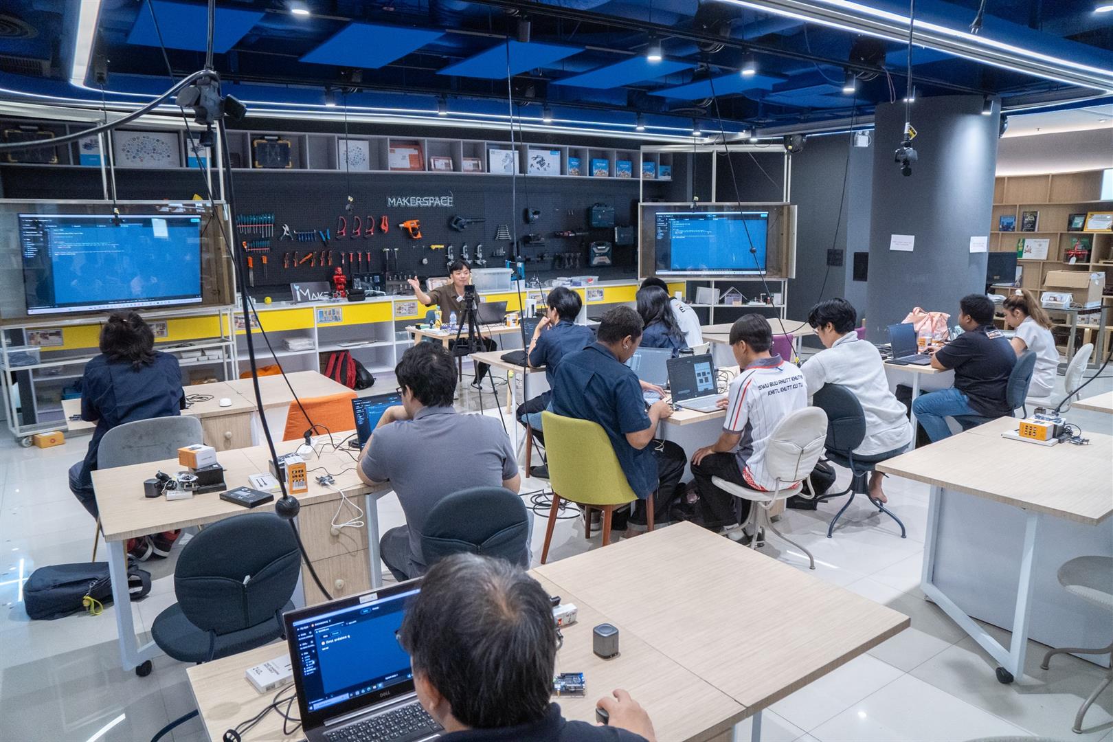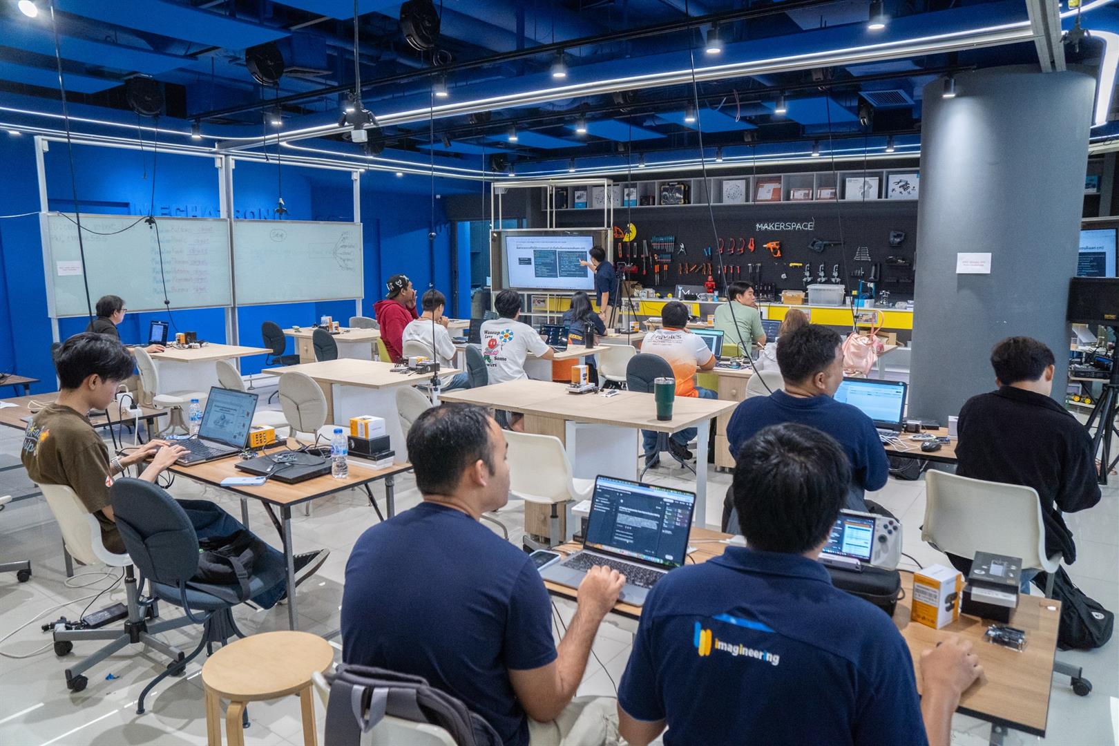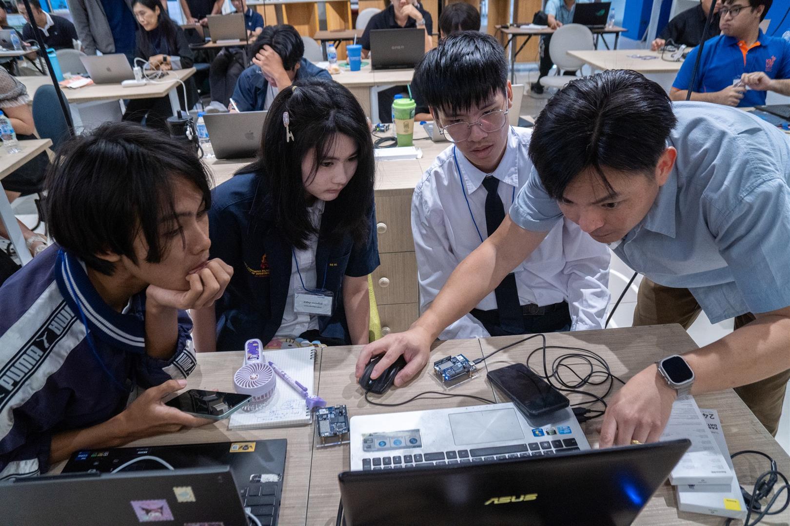 โดยได้สรุปองค์ความรู้ เชื่อมโยงเนื้อหาทุกหัวข้อ และนำเสนอแนวทางการประยุกต์ใช้เทคโนโลยีในการจัดการเรียนการสอน รวมถึงการพัฒนาโครงงานของผู้เรียนอย่างเป็นรูปธรรม บรรยากาศการอบรมเต็มไปด้วยความมุ่งมั่นและการแลกเปลี่ยนเรียนรู้ ผู้เข้าร่วมต่างให้ความสนใจ ซักถาม และแบ่งปันแนวคิดอย่างสร้างสรรค์ สะท้อนถึงความพร้อมของอาจารย์และ TA ในการนำองค์ความรู้ที่ได้รับไปต่อยอด ถ่ายทอดสู่ห้องเรียน และพัฒนาศักยภาพของผู้เรียนให้ก้าวทันเทคโนโลยีในอนาคต