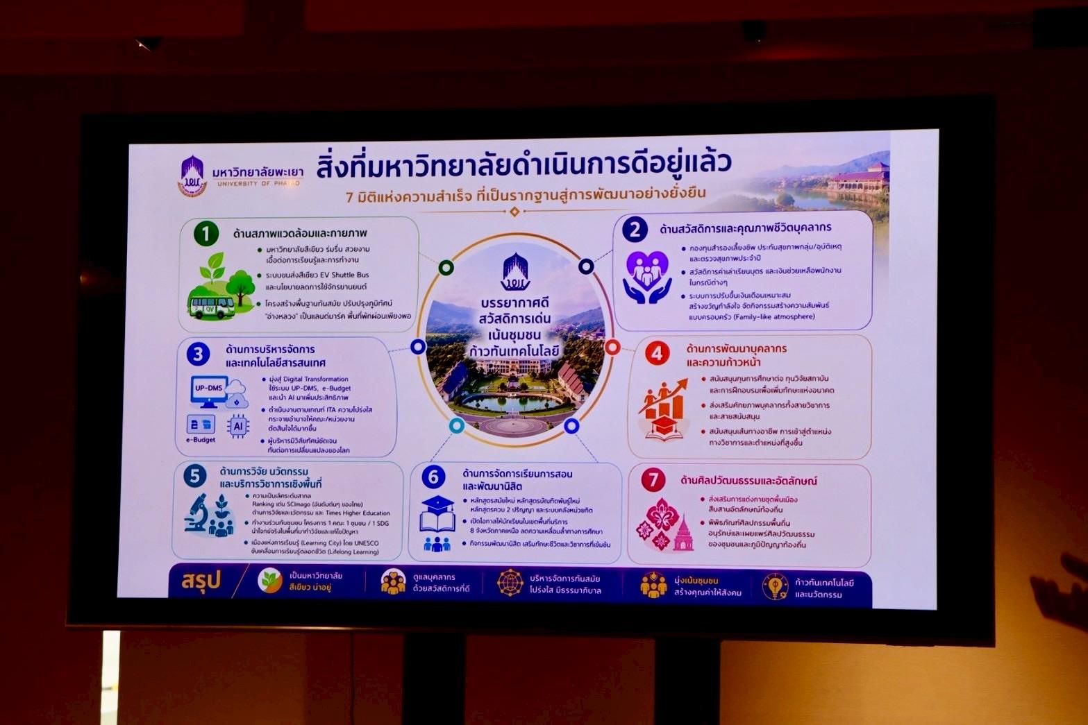 นอกจากนี้ ยังมีการบรรยายหัวข้อ “ฟันเฟืองที่สำคัญของผู้บริหาร (สายสนับสนุน) บนเส้นทางการขับเคลื่อนมหาวิทยาลัยพะเยา” ที่สะท้อนบทบาทสำคัญของผู้บริหารสายสนับสนุนในการผลักดันยุทธศาสตร์ของมหาวิทยาลัยให้บรรลุเป้าหมาย รวมถึงการสร้างความตระหนักถึงความเป็นผู้นำ การทำงานเป็นทีม และการพัฒนาองค์กรอย่างต่อเนื่อง