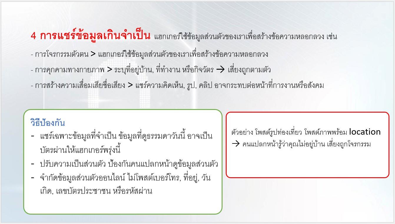 The session was led by Mr. Kittipon Jaroenkuson, a computer science specialist, who delivered practical insights and facilitated engaging activities covering the following key topics: