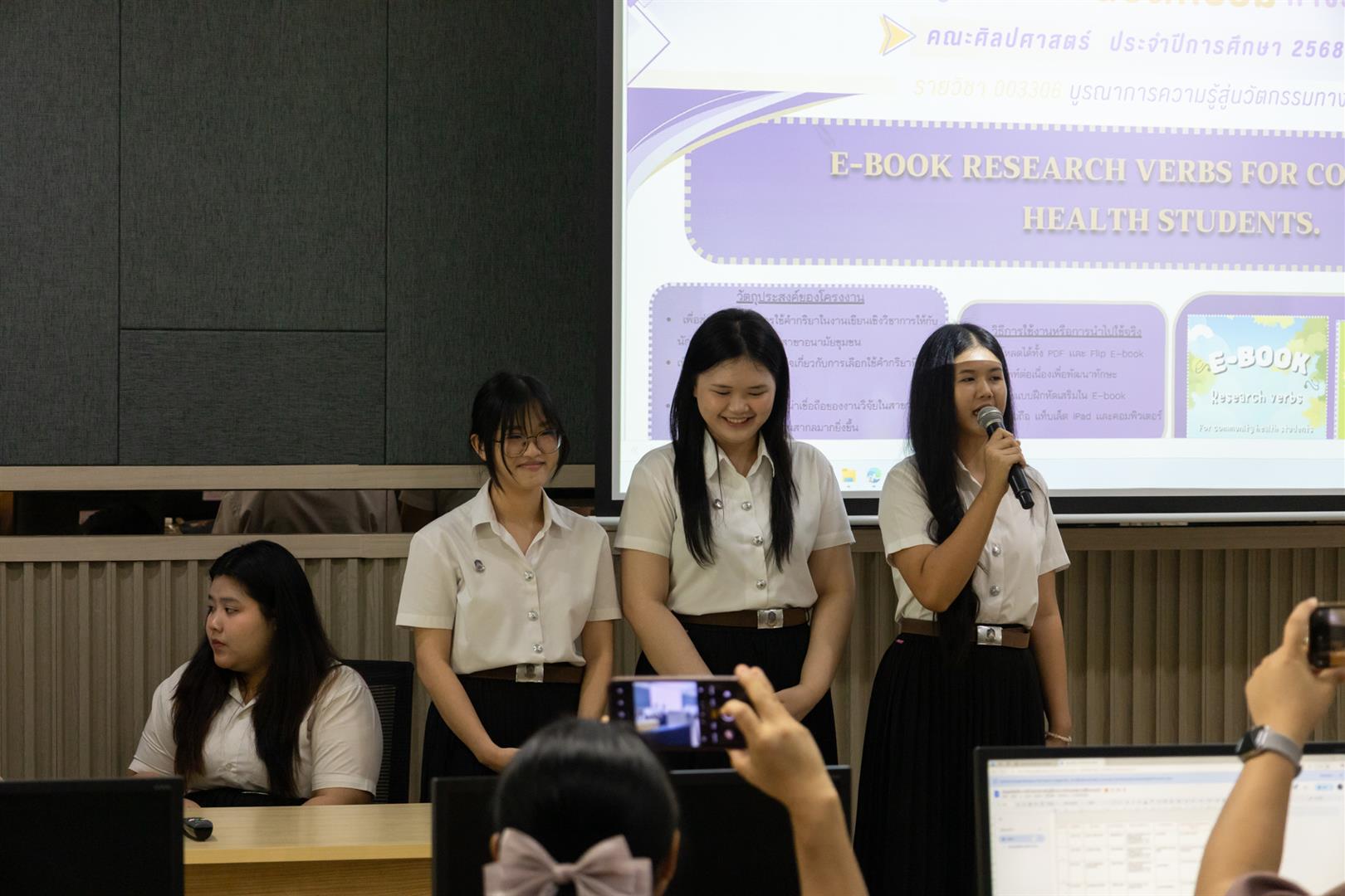 The project aimed to enhance students’ research skills and promote academic innovation. Students from the Bachelor of Arts programs in English, Chinese, Japanese, Thai, and French presented their research work, showcasing academic development across the school’s various disciplines.