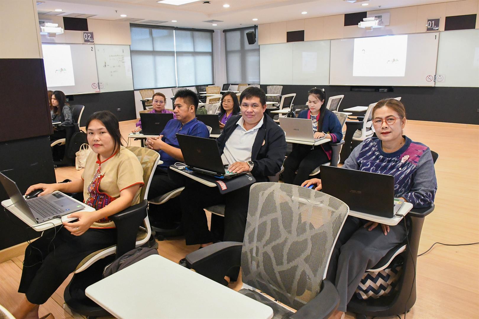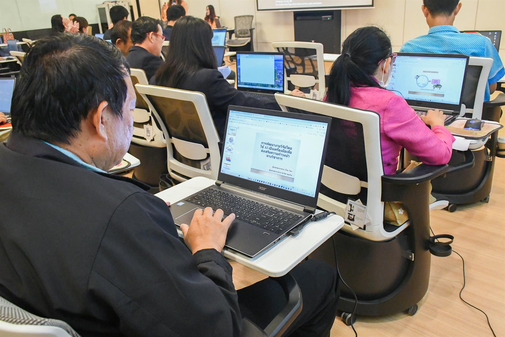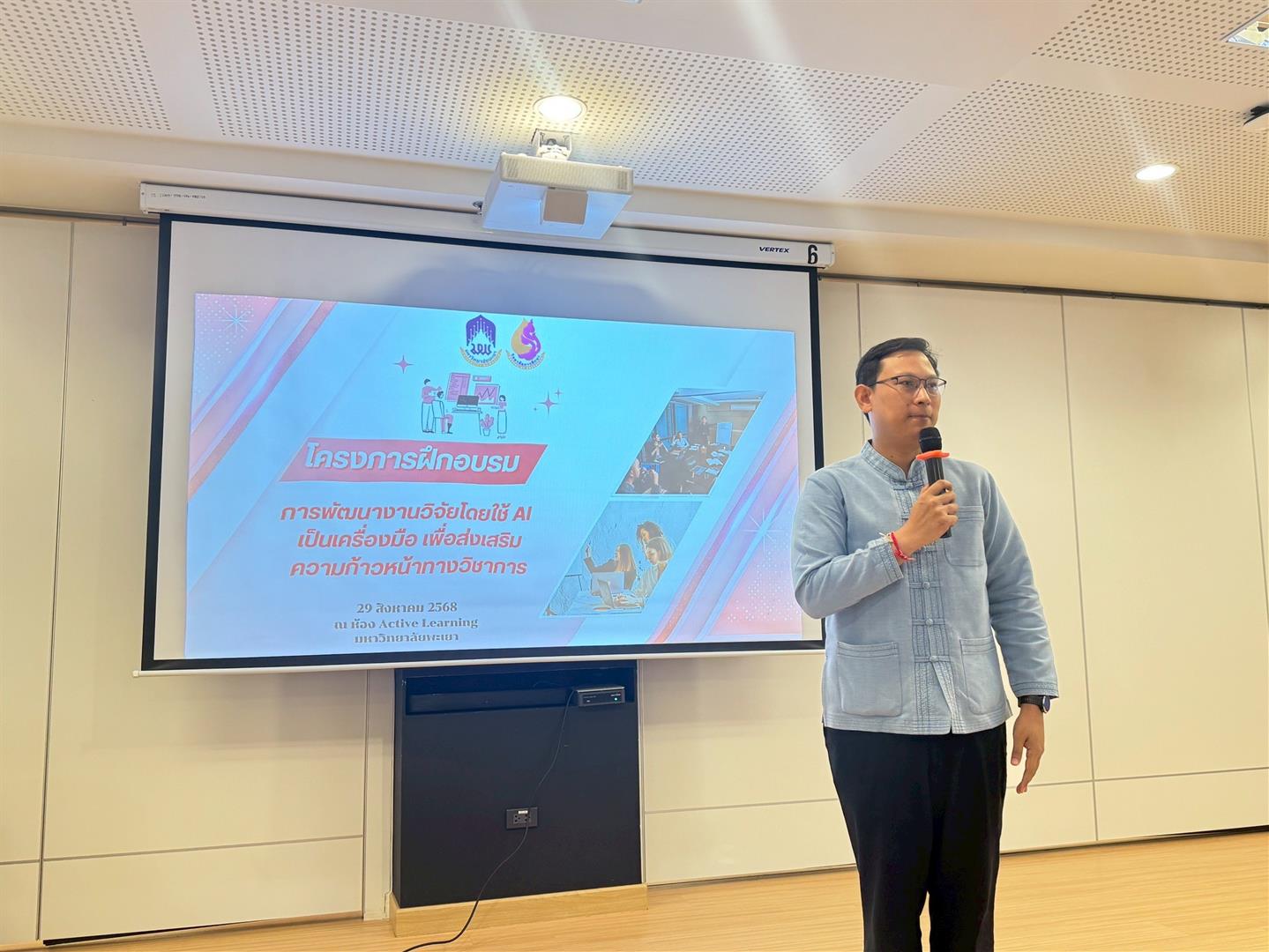 On August 29, 2025, the School of Education, University of Phayao, conducted the academic service project “Research Development Using AI as a Tool to Promote Academic Advancement” to enhance local education at the Active Learning room (PY1010), University of Phayao. It was honored by Associate Professor Dr. Ruksit Suttipong, the Dean of the School of Education, was the president to opened the project, Assistant Professor Dr. Sunthon Khlai-Um, the Associate Dean for Administration and Student Quality Development, Assistant Professor Dr. Numfon Gunma, the Associate Dean for Academic Affairs and Educational Innovation, Assistant Professor Dr. Watchara Jatuporn, the Associate Dean of Research and Academic Services in Area-based (the respondent of project), Assistant Professor Dr. Lumyai Seehamat, the Head of Doctor of Philosophy and Master of Education Program in Curriculum and Instruction, Assistant Professor Dr. Wilawan Somyaron, the lecturer of the Education Program in Educational Technology, and supporting staff. The training participants consisted of 40 educational personnel involved in educational management at the Phayao Provincial Office for the Promotion of Learning. This training was organized with the objective of enhancing the knowledge and understanding of teachers and educational personnel under the Phayao Provincial Office for the Promotion of Learning in the field of research, aimed at improving the quality of teaching and learning as well as educational innovation. Additionally, it served as a guideline for teachers and educational personnel to develop competencies in research and educational innovation, in line with the goals of the College of Education and aligned with the Sustainable Development Goals (SDGs): SDG 4: Promote inclusive and equitable quality education and lifelong learning opportunities (Quality Education), SDG 9: Promote sustainable industry, innovation, and infrastructure (Industry, Innovation, and Infrastructure), and SDG 17: Strengthen partnerships for sustainable development (Partnerships for the Goals).