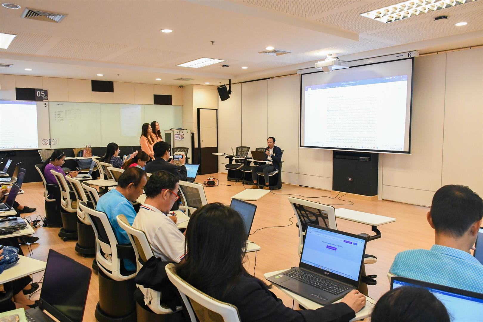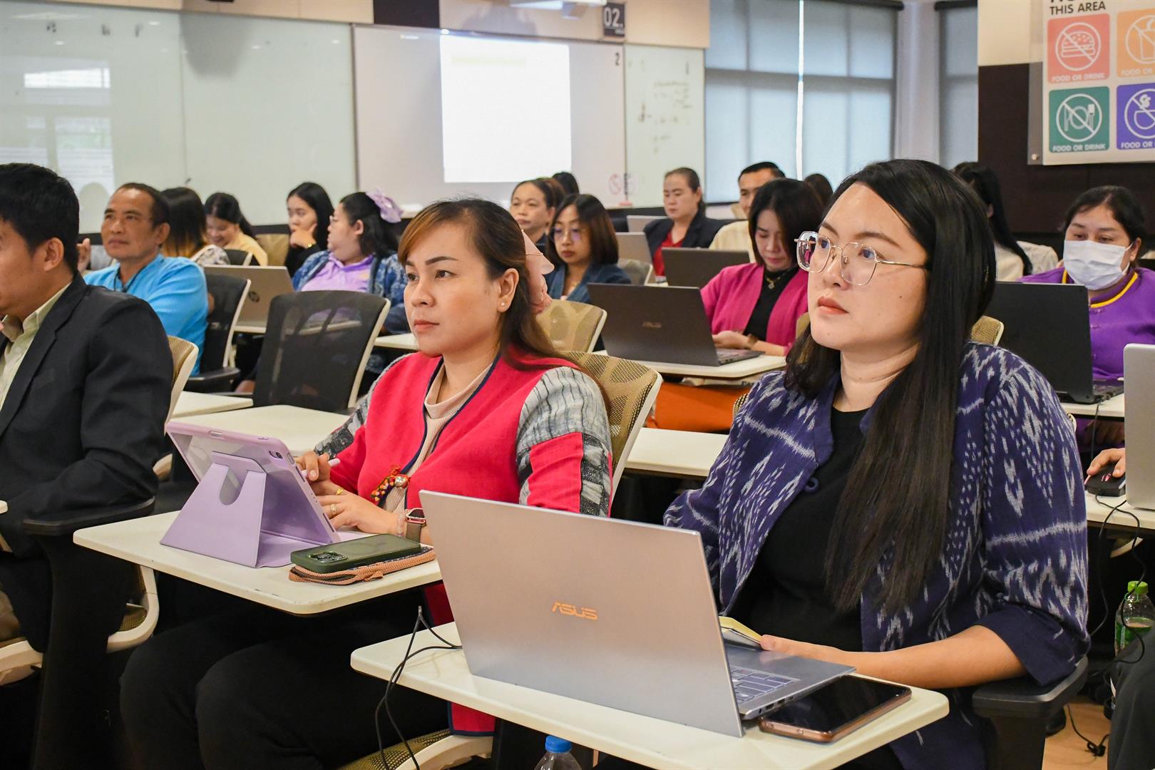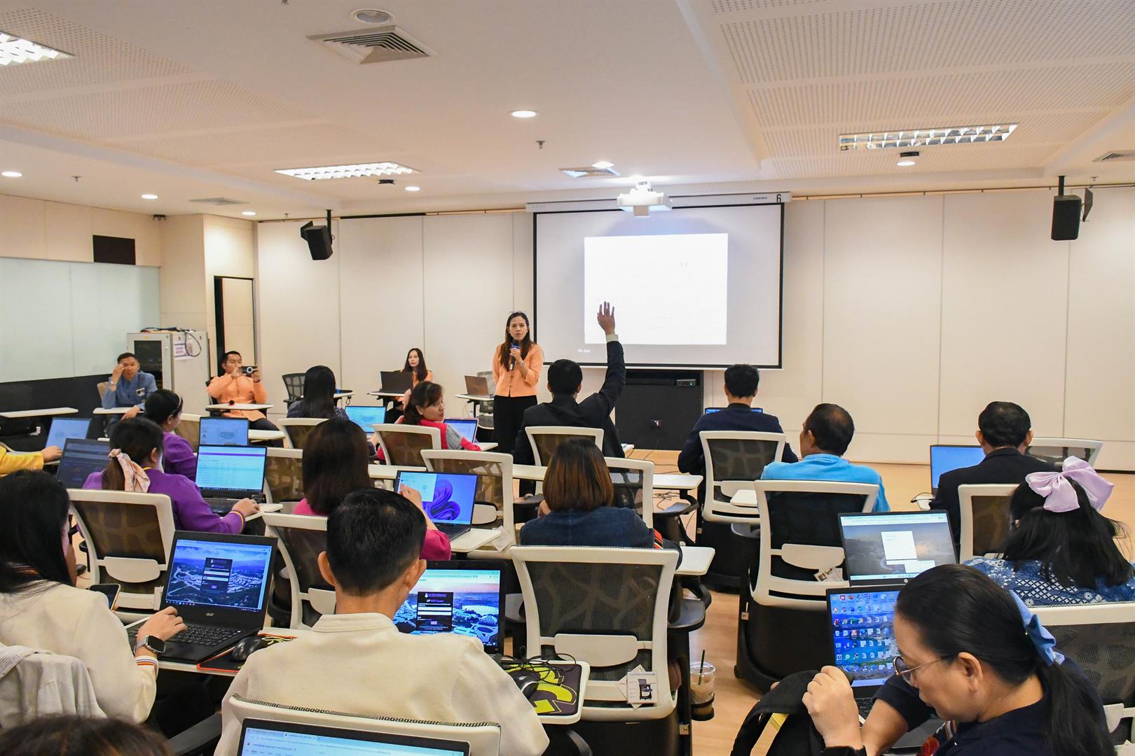 On August 29, 2025, the School of Education, University of Phayao, conducted the academic service project “Research Development Using AI as a Tool to Promote Academic Advancement” to enhance local education at the Active Learning room (PY1010), University of Phayao. It was honored by Associate Professor Dr. Ruksit Suttipong, the Dean of the School of Education, was the president to opened the project, Assistant Professor Dr. Sunthon Khlai-Um, the Associate Dean for Administration and Student Quality Development, Assistant Professor Dr. Numfon Gunma, the Associate Dean for Academic Affairs and Educational Innovation, Assistant Professor Dr. Watchara Jatuporn, the Associate Dean of Research and Academic Services in Area-based (the respondent of project), Assistant Professor Dr. Lumyai Seehamat, the Head of Doctor of Philosophy and Master of Education Program in Curriculum and Instruction, Assistant Professor Dr. Wilawan Somyaron, the lecturer of the Education Program in Educational Technology, and supporting staff. The training participants consisted of 40 educational personnel involved in educational management at the Phayao Provincial Office for the Promotion of Learning. This training was organized with the objective of enhancing the knowledge and understanding of teachers and educational personnel under the Phayao Provincial Office for the Promotion of Learning in the field of research, aimed at improving the quality of teaching and learning as well as educational innovation. Additionally, it served as a guideline for teachers and educational personnel to develop competencies in research and educational innovation, in line with the goals of the College of Education and aligned with the Sustainable Development Goals (SDGs): SDG 4: Promote inclusive and equitable quality education and lifelong learning opportunities (Quality Education), SDG 9: Promote sustainable industry, innovation, and infrastructure (Industry, Innovation, and Infrastructure), and SDG 17: Strengthen partnerships for sustainable development (Partnerships for the Goals).