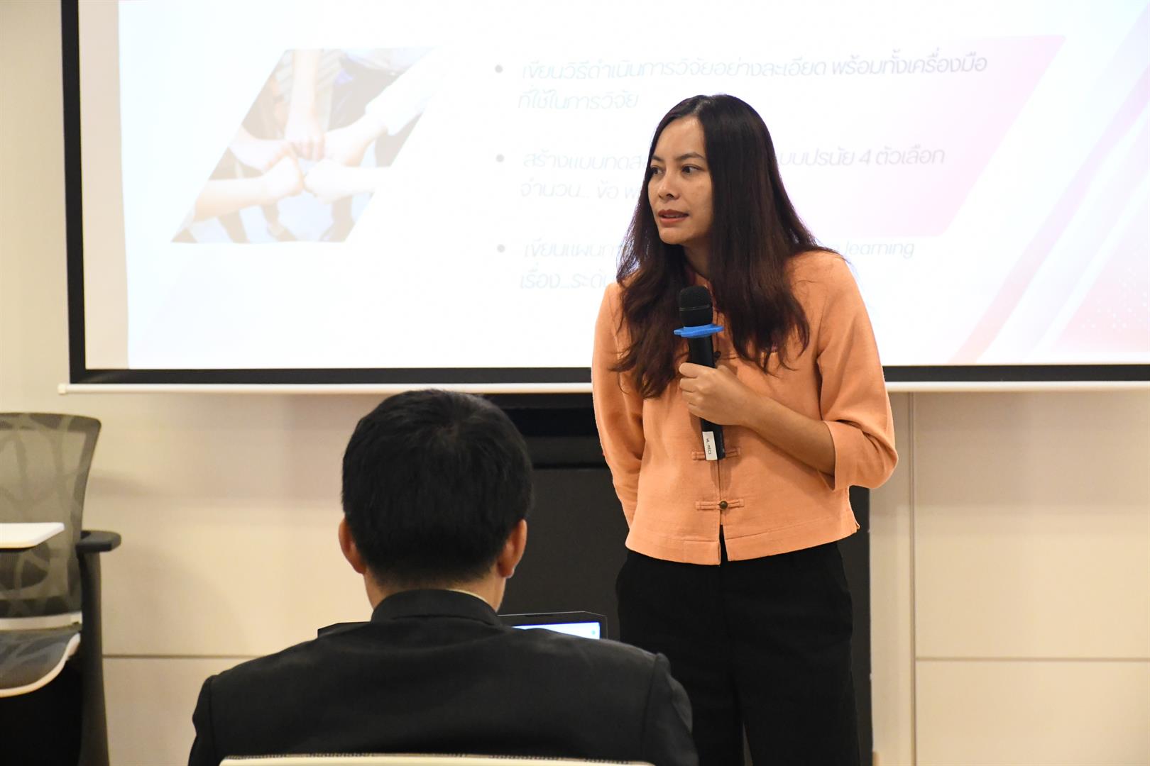 A lecture on the topic “Research for Academic Advancement” by Assistant Professor Dr. Numfon Gunma, the Associate Dean for Academic Affairs and Educational Innovation.