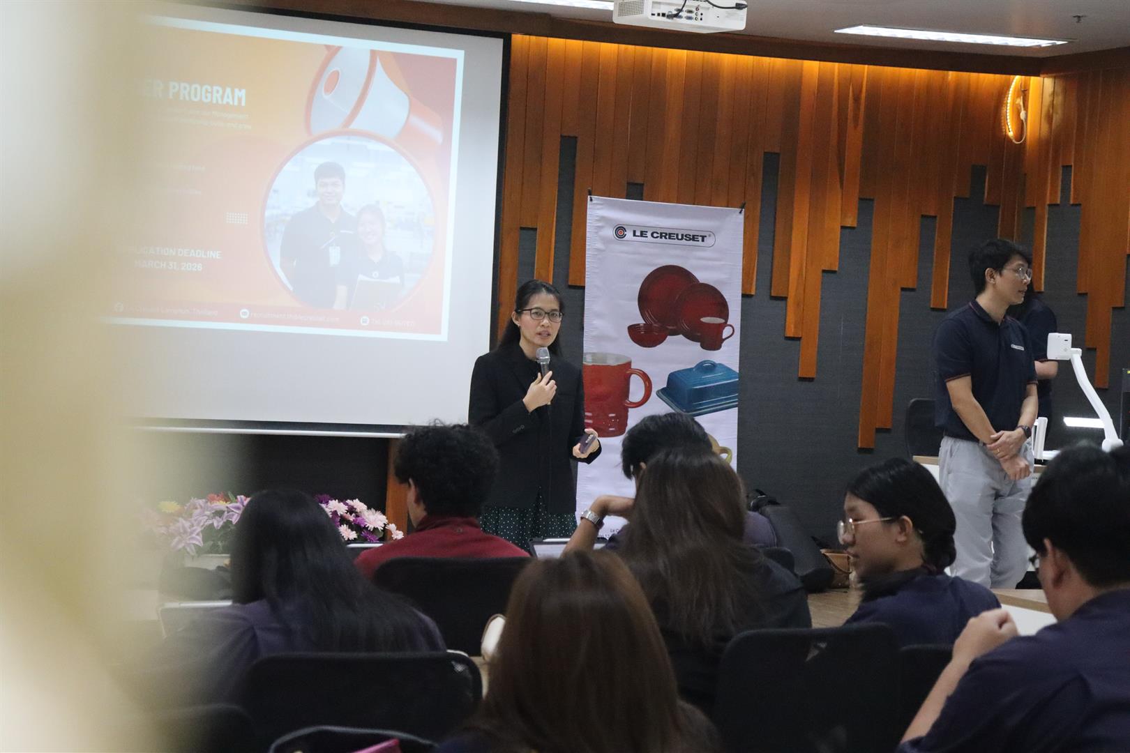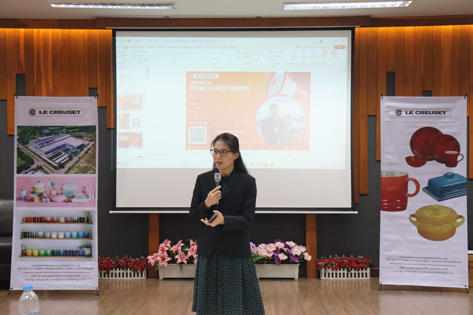 On September 25, 2025, School of Engineering, University of Phayao, led by Asst. Prof. Dr. Wasana Naku, Associate Dean for Academic Affairs and Quality Assurance, extended a warm welcome to the representatives from Le Creuset Manufacturing (Thailand) Co., Ltd. at the seminar room EN4406, School of Engineering Building. The visit was part of the “LCMT New Gen” (Future Leader Program), organized for fourth-year students from the Mechanical Engineering and Industrial Engineering programs.