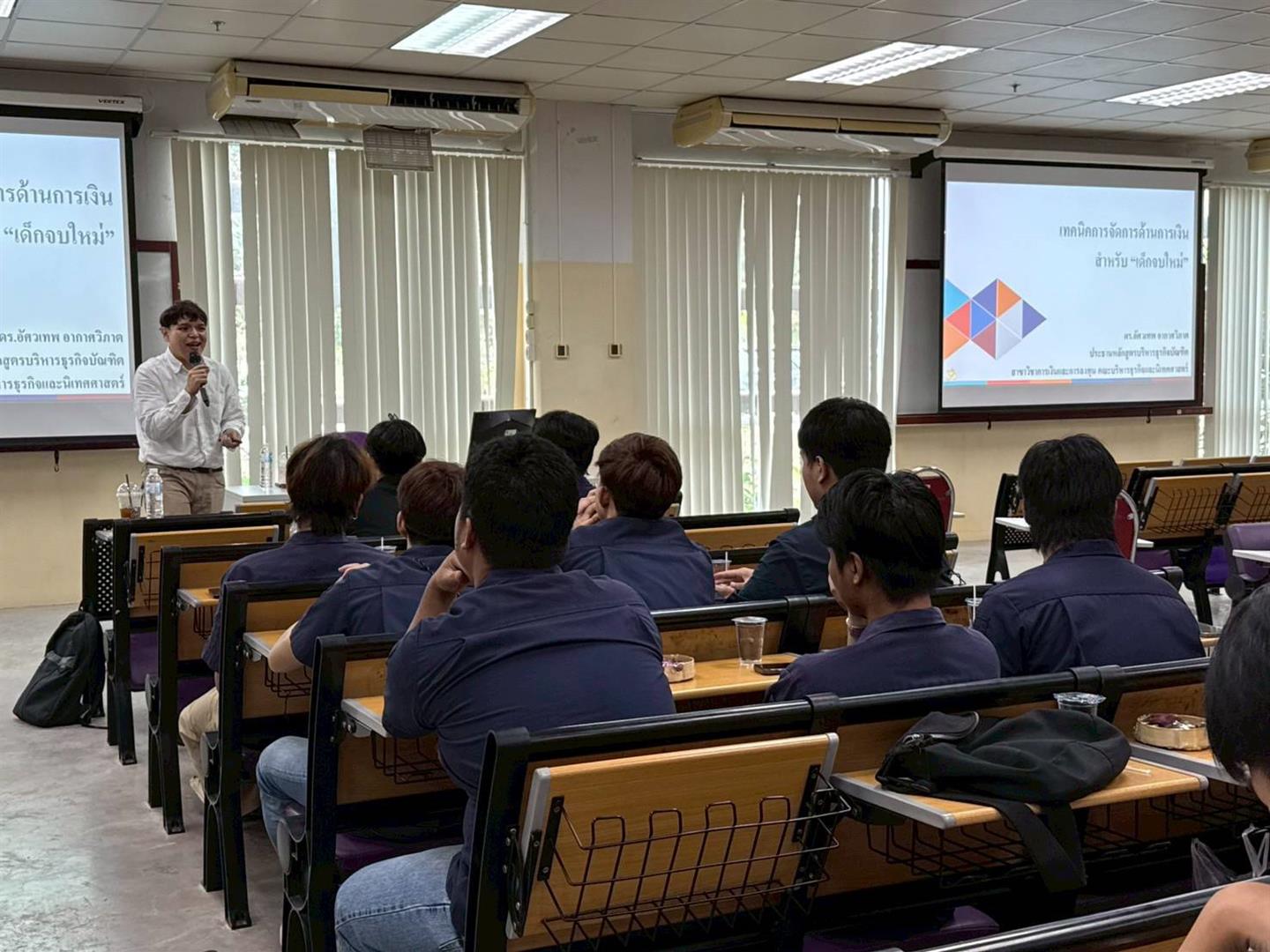The event featured Dr. Ausawatap Akartwipart, lecturer from the School of Business Administration and Communication Arts, University of Phayao, who served as the keynote speaker and workshop instructor on the topic Financial Management for Working Professionals His session focused on financial planning, saving strategies, investment principles, and systematic debt management, aiming to equip students with practical financial literacy applicable to both personal and professional contexts.