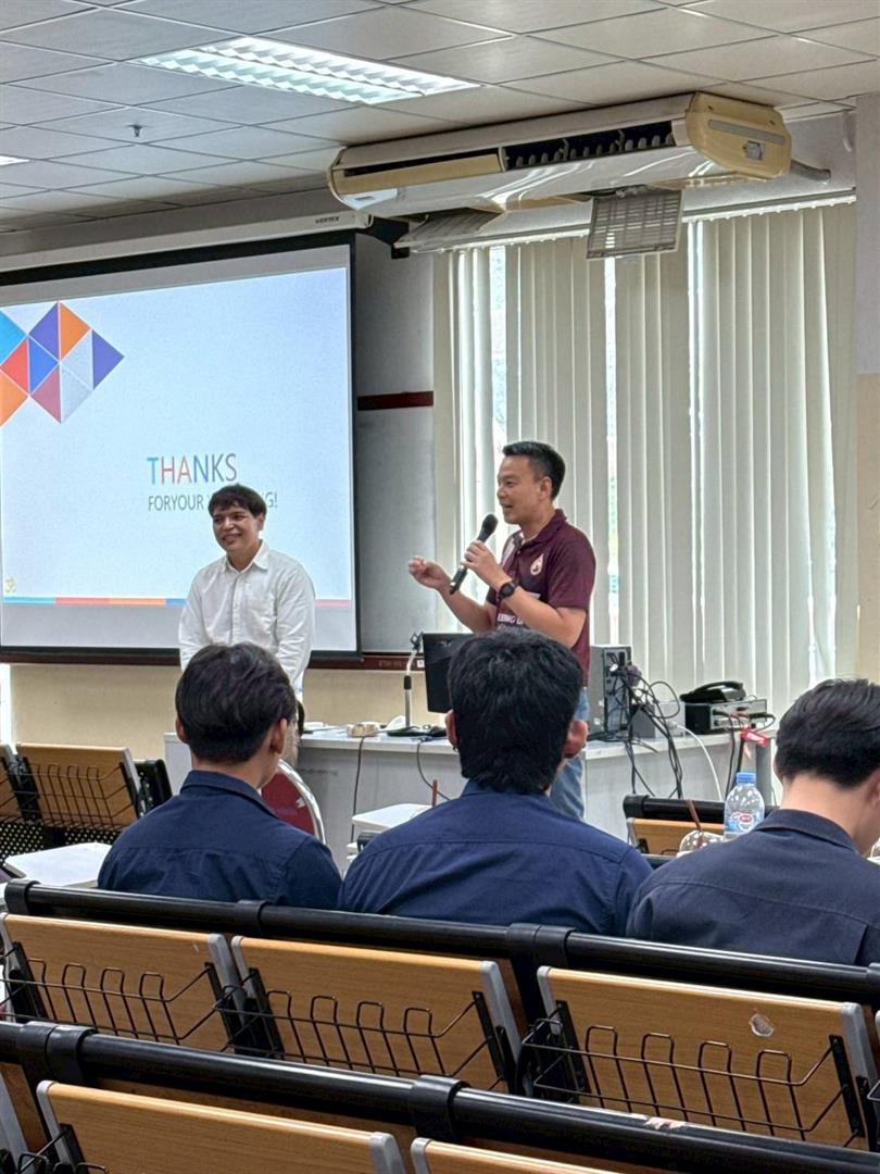 Additionally, Lecturer Burin Buntavong and Lecturer Kamolpong Ratanasanguanvongs, also from the School of Business Administration and Communication Arts, delivered a joint workshop on Entrepreneurial Readiness The session emphasized cultivating an entrepreneurial mindset, fostering creative thinking, and developing systematic business planning skills. It highlighted the integration of engineering knowledge with business management principles to promote innovation-driven entrepreneurship among engineering students.