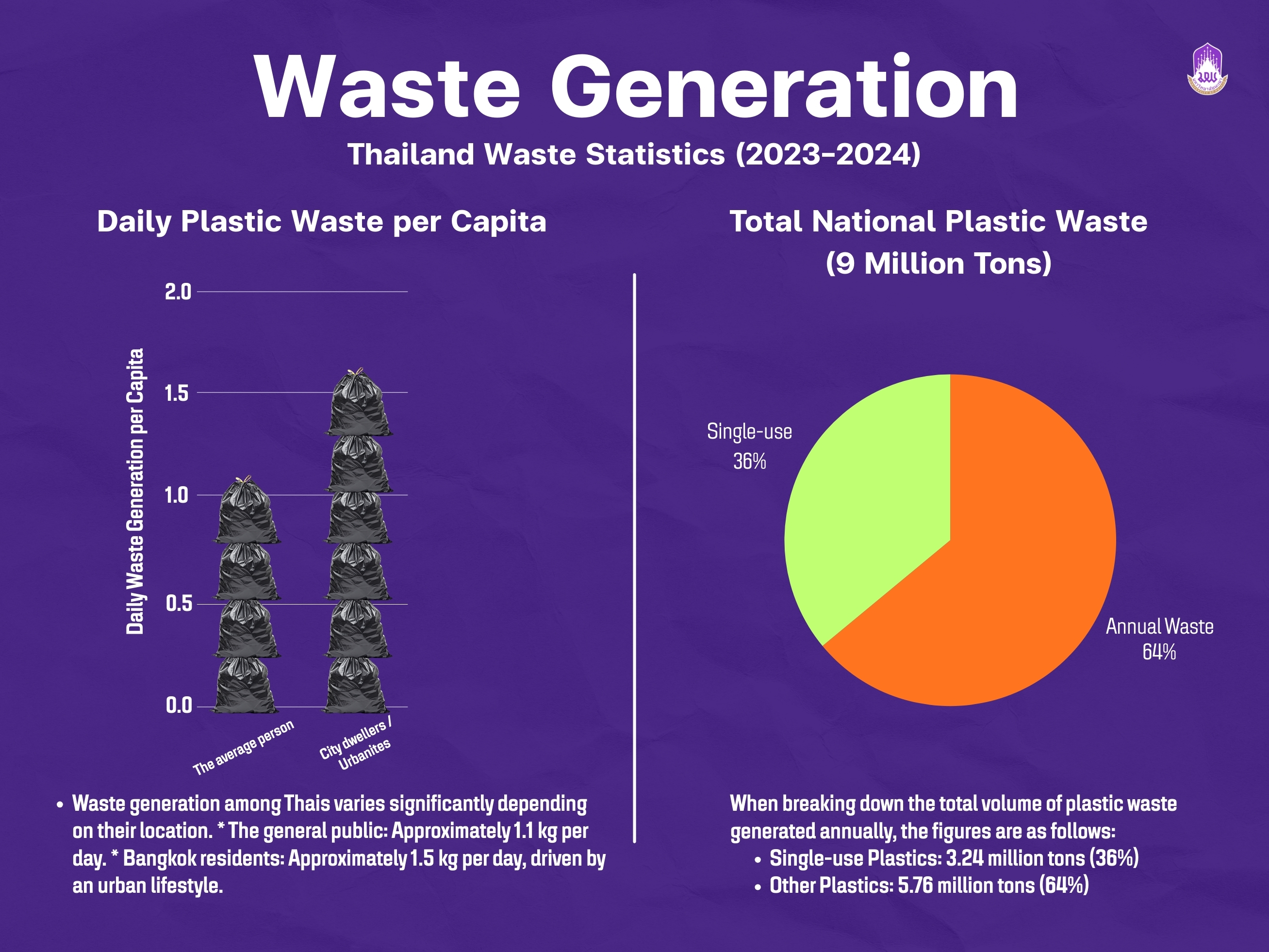Have you ever stopped to consider how much waste we generate from the moment we wake up until we fall asleep? Research indicates that the average Thai person produces approximately 1.12 to 1.2 kilograms of waste per day, a figure that climbs even higher for residents of major metropolises like Bangkok. On a national scale, Thailand generates a staggering 9 million tons of plastic waste annually. Most concerningly, 36% of this volume consists of single-use plastics that are never recycled, ending up instead as environmental pollutants.