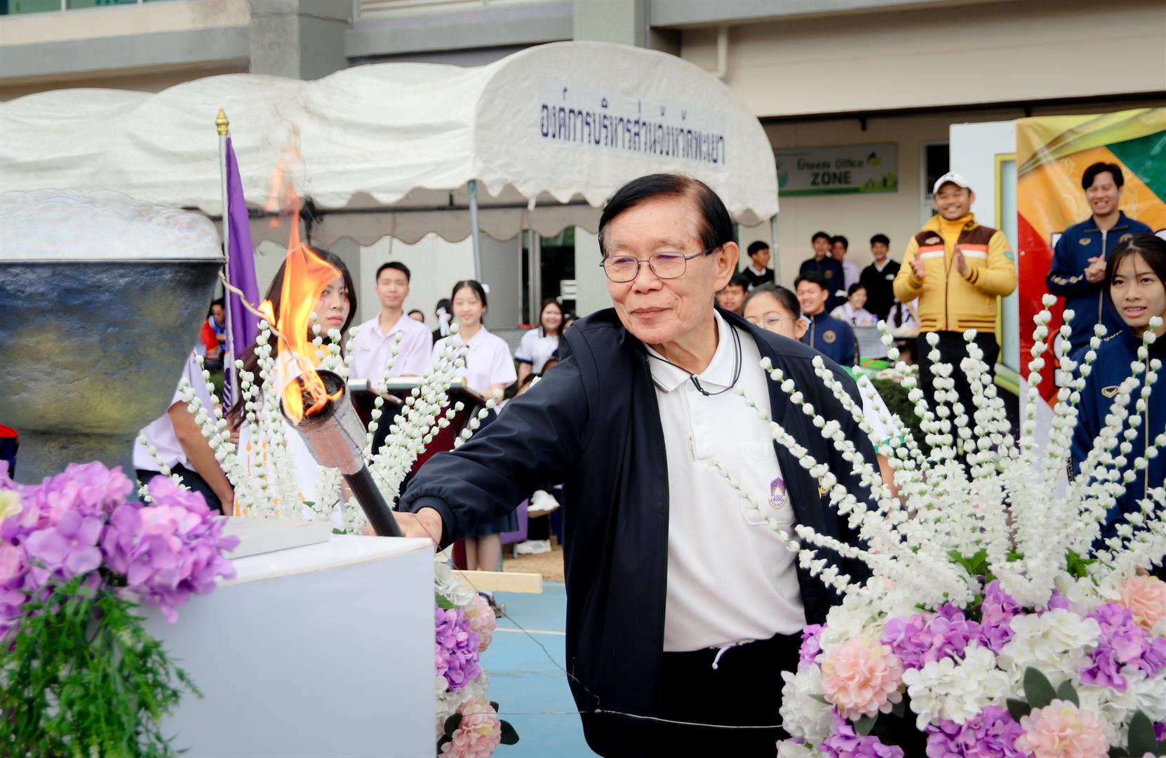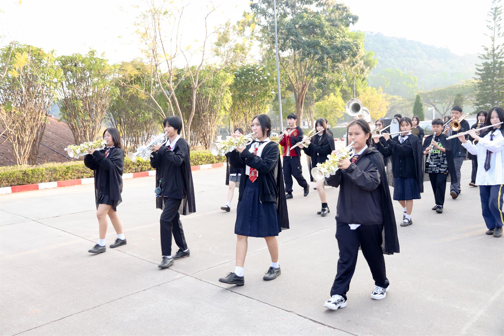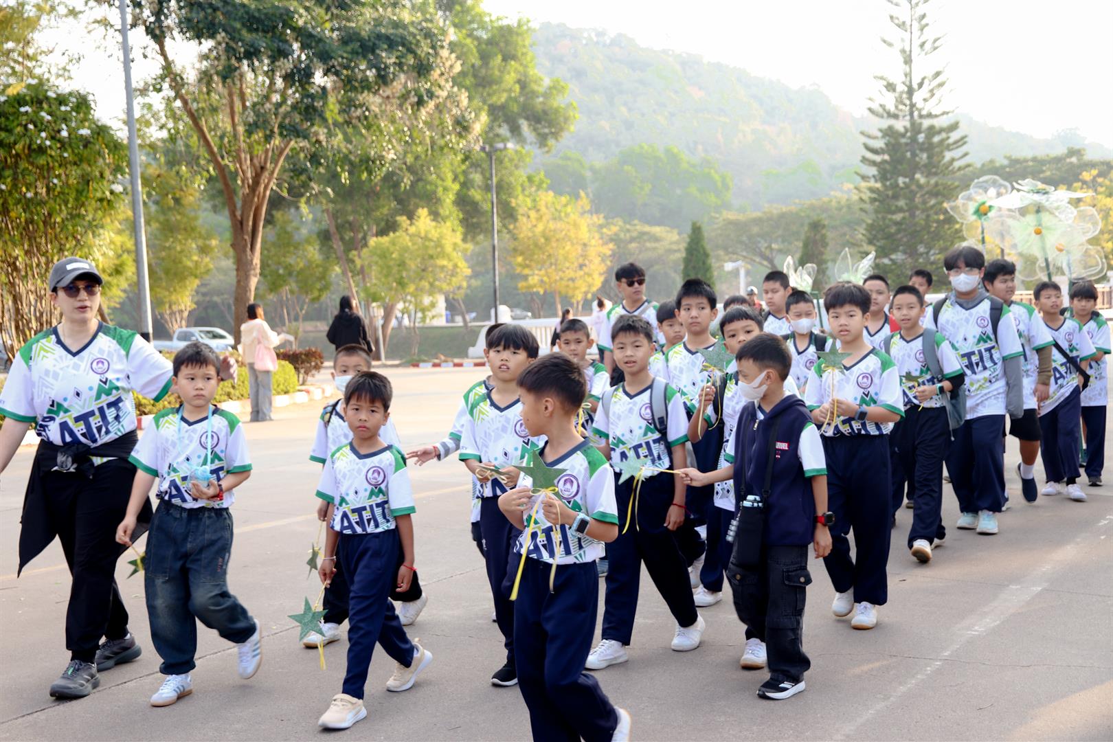 In the morning session, the event began with a colorful parade procession. This year, the parade started from the road in front of the Institute of Learning Innovation and proceeded to the sports field at UP Demonstration School, serving as a public showcase of students’ creativity and a promotion of the event. The opening ceremony was presided over by Assoc. Prof. Dr. Chayan Boonyarak, Acting Director of the School, who delivered the opening remarks.