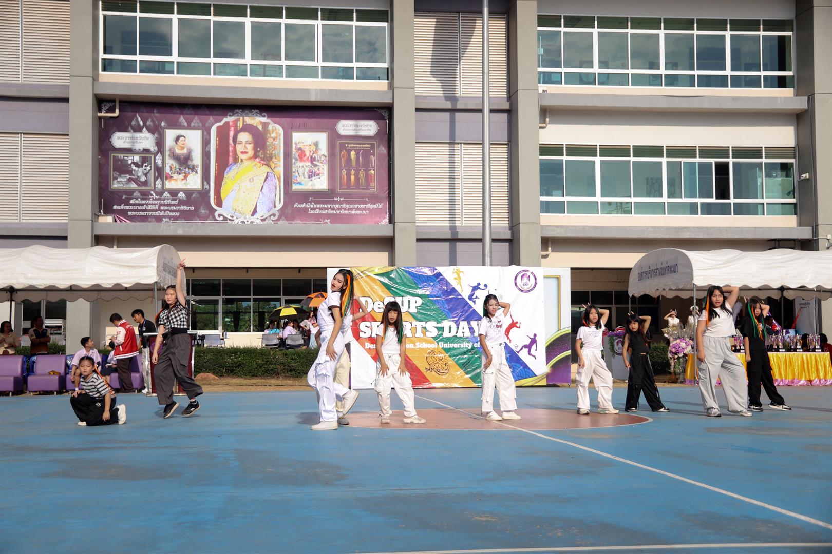 The program featured a variety of creative performances, including cheerleading performances by the UP Demonstration School Cheerleading Team, cover dance performances by primary school students, and a ballroom dance performance by Grade 12 students. This was followed by an award presentation ceremony for the winning teams of each Phanna, fun sports competitions, and the futsal championship match, which concluded the morning session.
