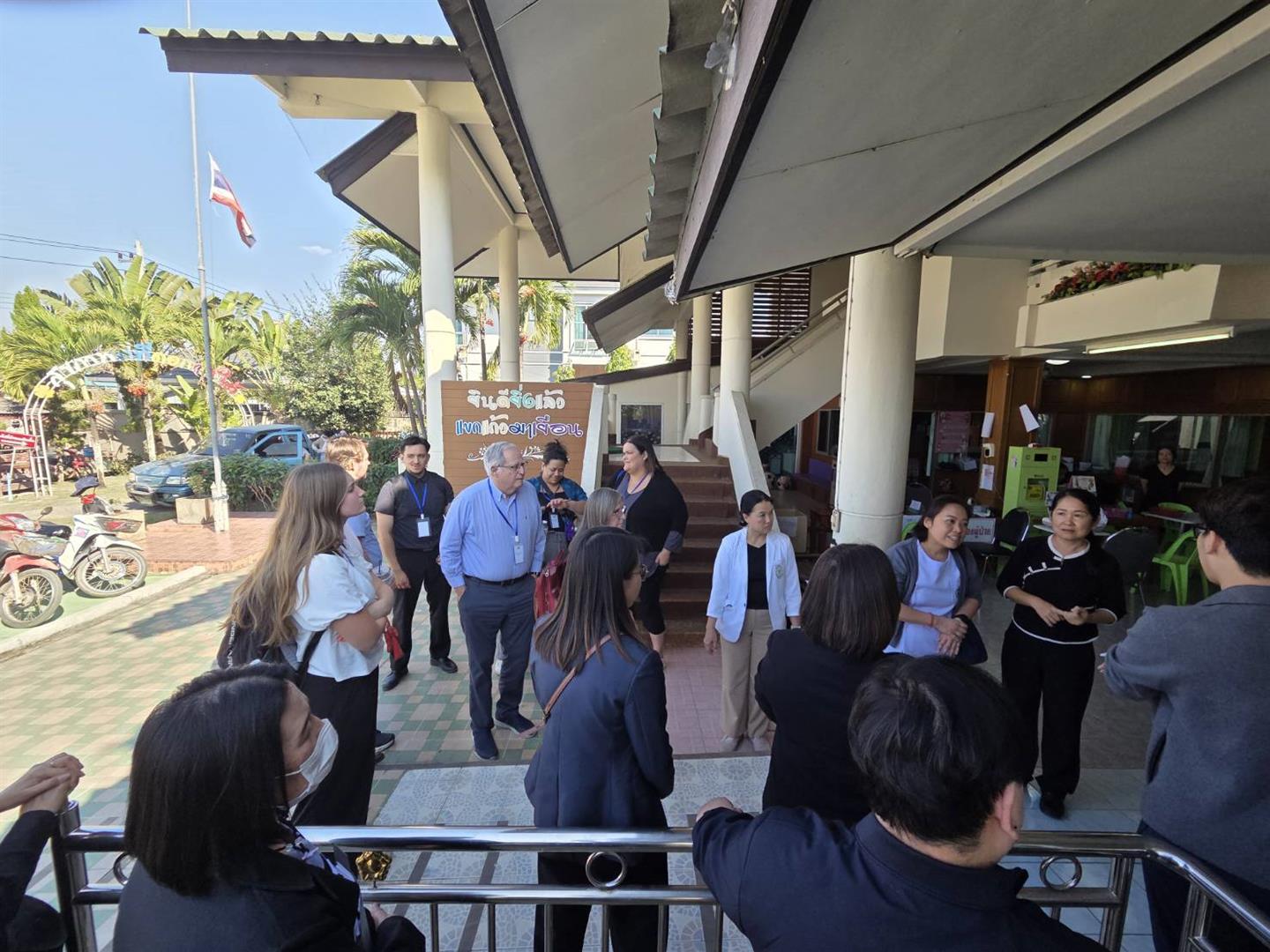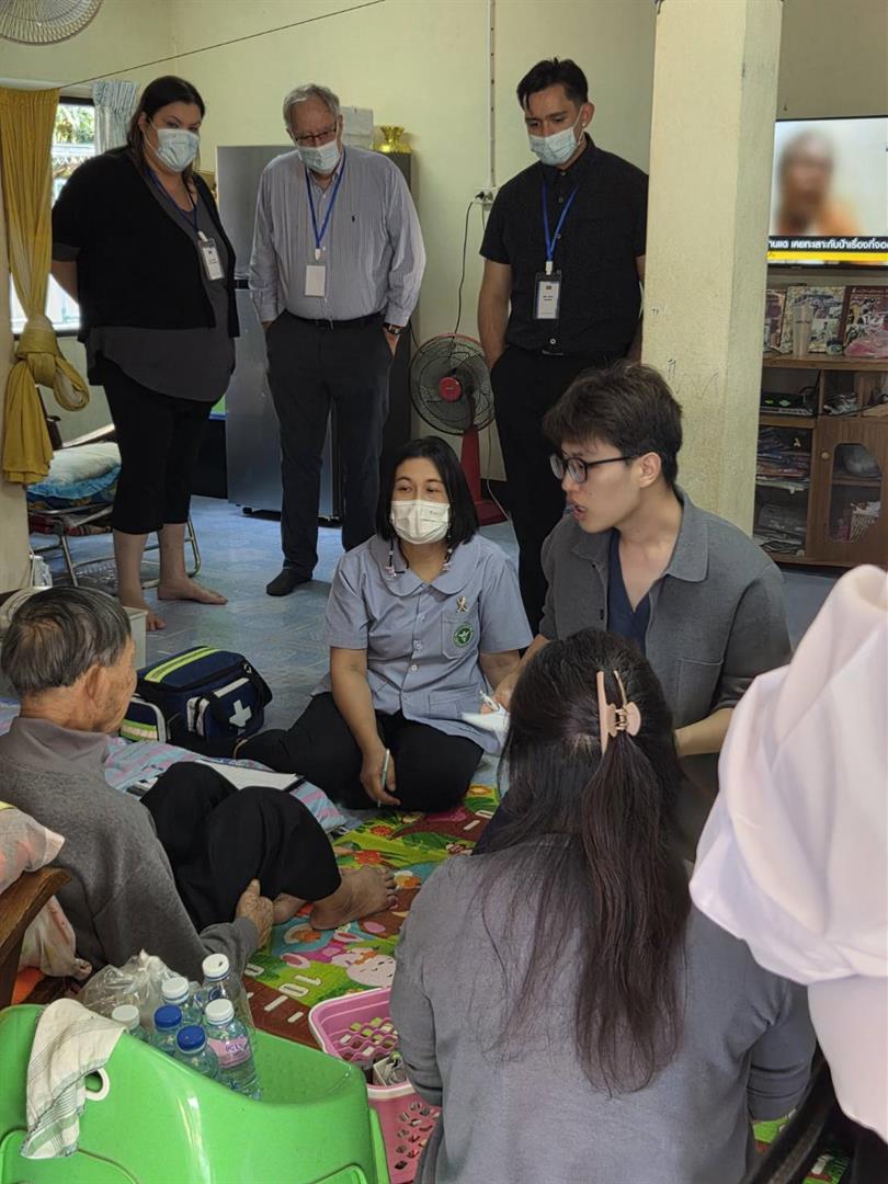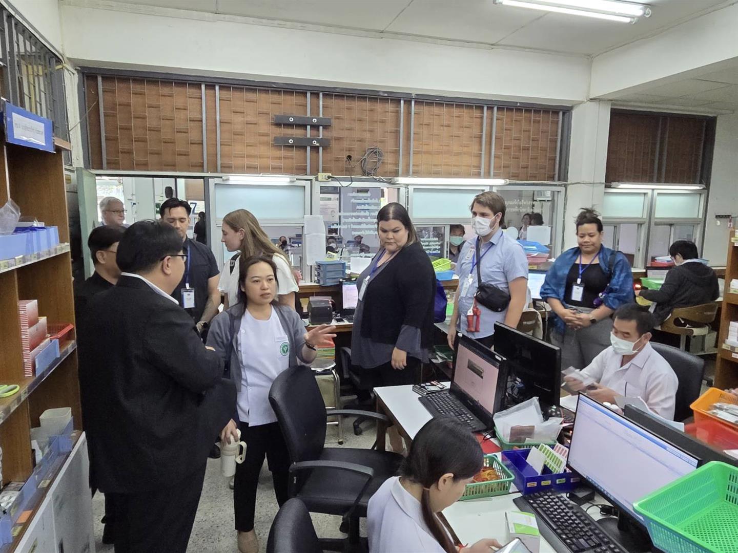 On this occasion, Dr. Surawat Kulsri, Dr. Solas Limpkanakorn, and the executive management team of Dok Khamtai Hospital warmly welcomed the delegation and presented the role of primary care pharmacists and their integration within the district health system of Dok Khamtai. The visit included discussions on primary care pharmacy services at the hospital, collaboration between the hospital and its network of Subdistrict Health Promoting Hospitals, a site visit to Dok Khamtai Subdistrict Health Promoting Hospital, and home visits to patients.