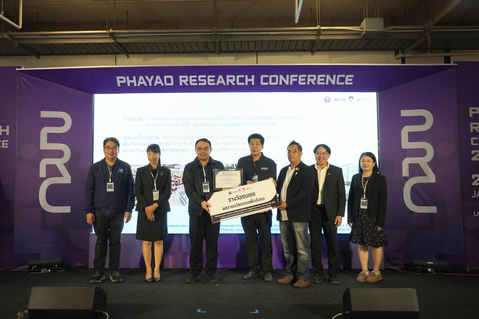 The award was presented at the 15th National Academic Conference “Phayao Research Conference”, held under the theme “SDG Global Connect: Learning from Best Practices,” in recognition of the project’s research and development outcomes that align with the Sustainable Development Goals (SDGs). The conference took place on Tuesday, 27 January 2026, at Room UB002, the 99th Anniversary Building of Phra Ubali Khunupamachan (Puang Thammappañño), University of Phayao, and was organized by the Division of Research Administration.