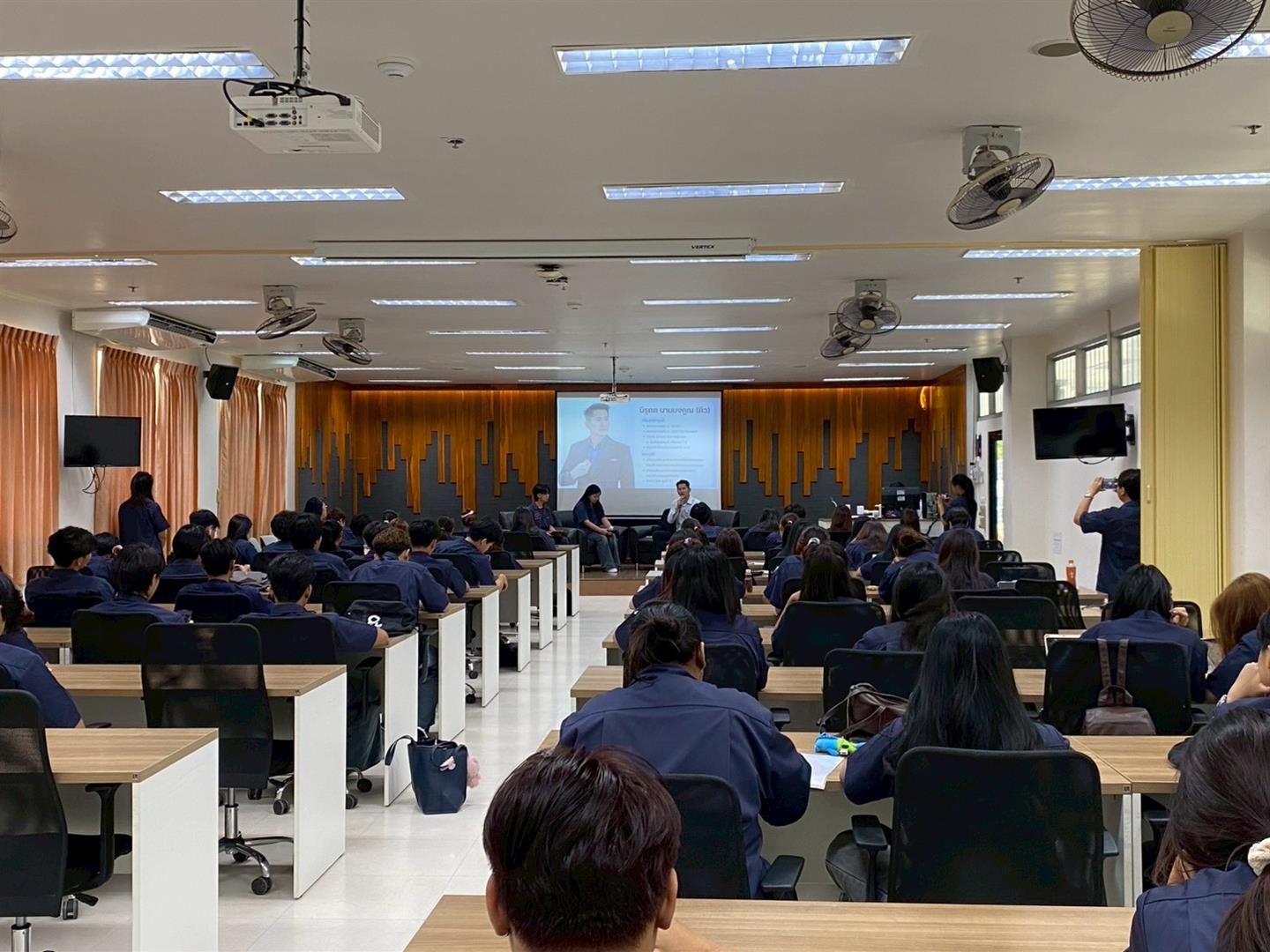 The project aimed to integrate core knowledge in industrial management in order to equip students with a comprehensive understanding of contemporary entrepreneurship. It sought to cultivate the competencies required of next-generation entrepreneurs, particularly in strategic business management, opportunity recognition, and sustainable value creation. On this occasion, Mr. Nirut Nammongkhun, a successful entrepreneur, was invited as a distinguished guest speaker to share his professional experiences and practical insights, thereby bridging theoretical knowledge with real-world application.