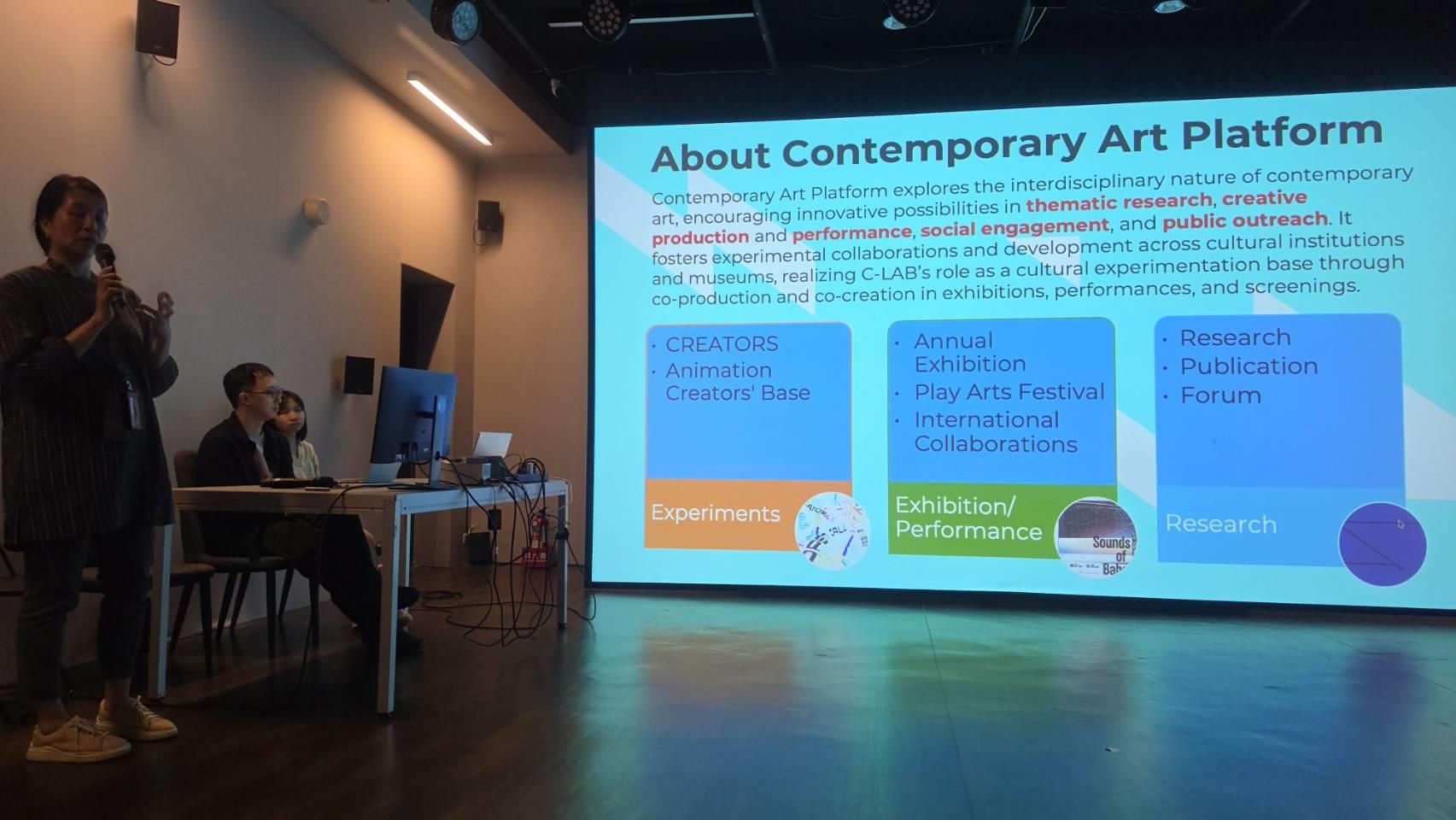 在此次交流中,我們亦有幸聆聽以下專業分享:Cindy Lin 女士(當代藝術平台專員), Warrick Tsai 先生(科技媒體平台未來視覺實驗室主任暨研發企劃部主管)以及 Hsiao-Ting Huang 女士(科技媒體平台臺灣聲音實驗室專員)