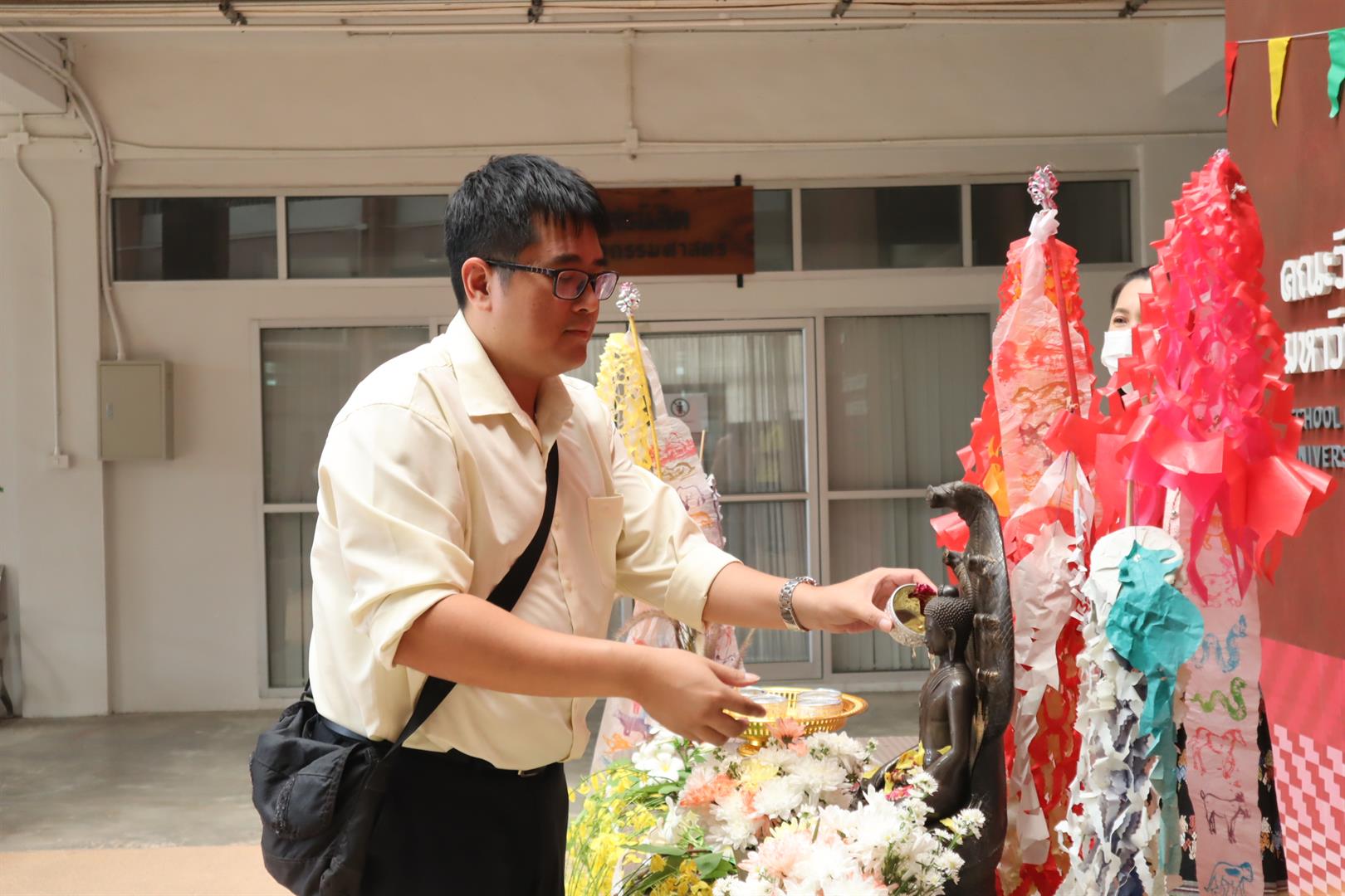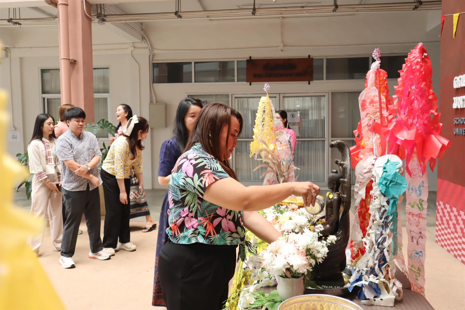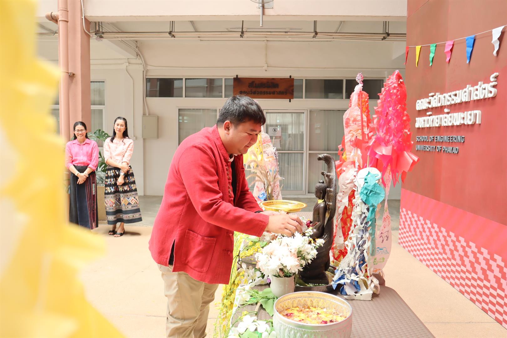 On 20 April 2026, School of Engineering, University of Phayao, organized a ceremonial water-pouring ritual over Buddha images to invoke auspiciousness, as part of the continuation of the “Paa Wiang Pi Mai Mueang” (Lanna New Year Tradition) of the School. The activity was held for School members and staff at the EN 1–2 activity area.